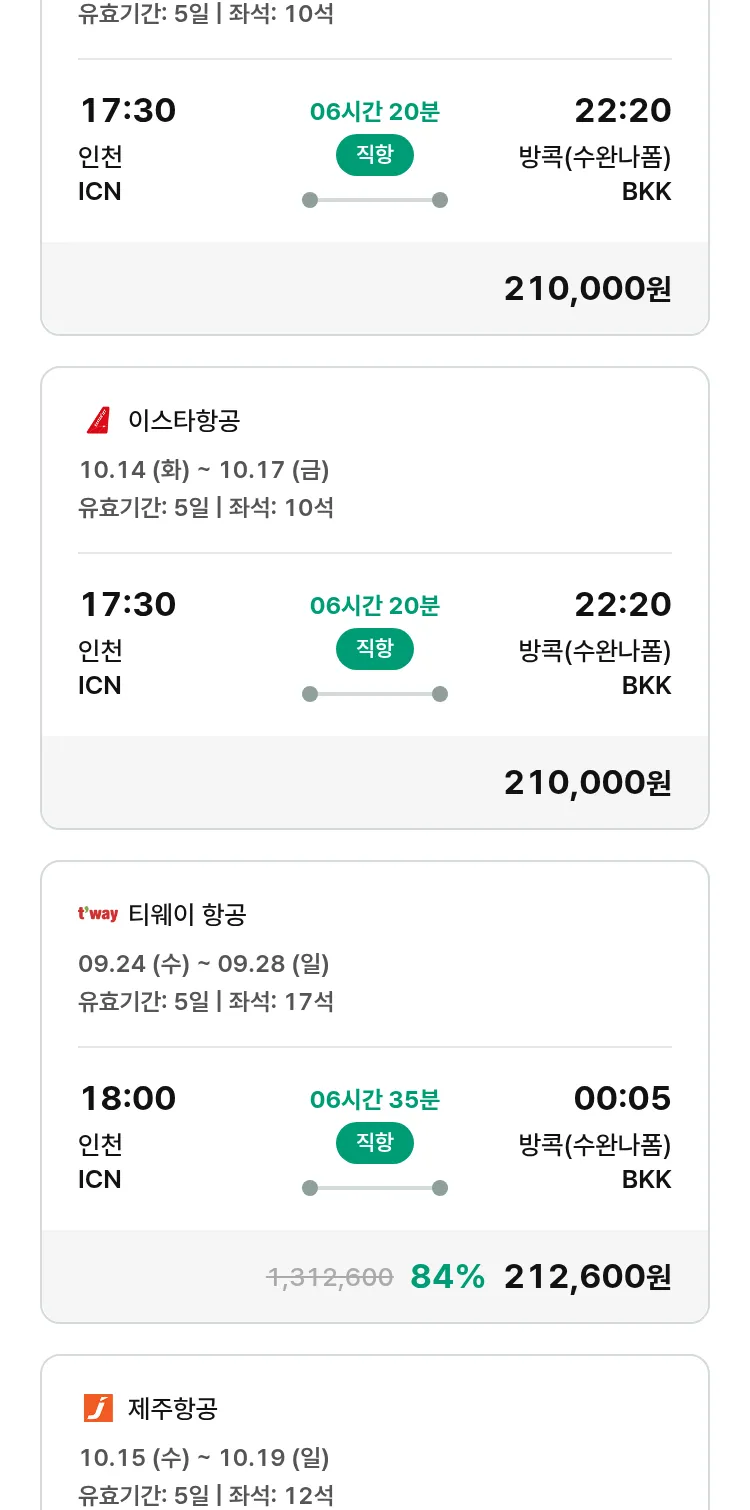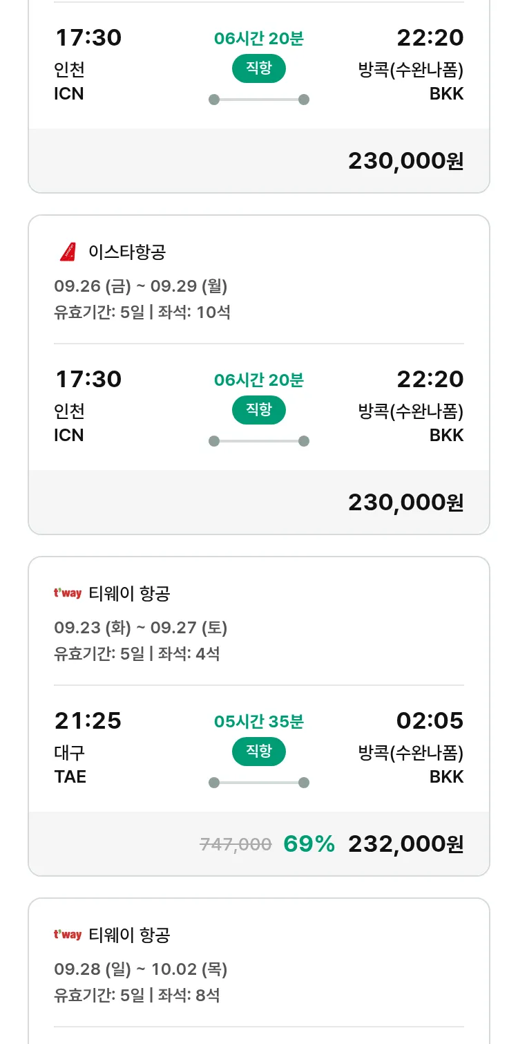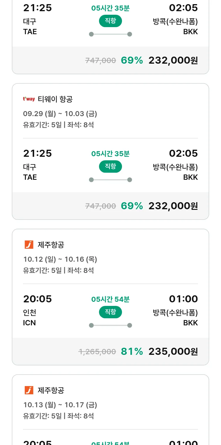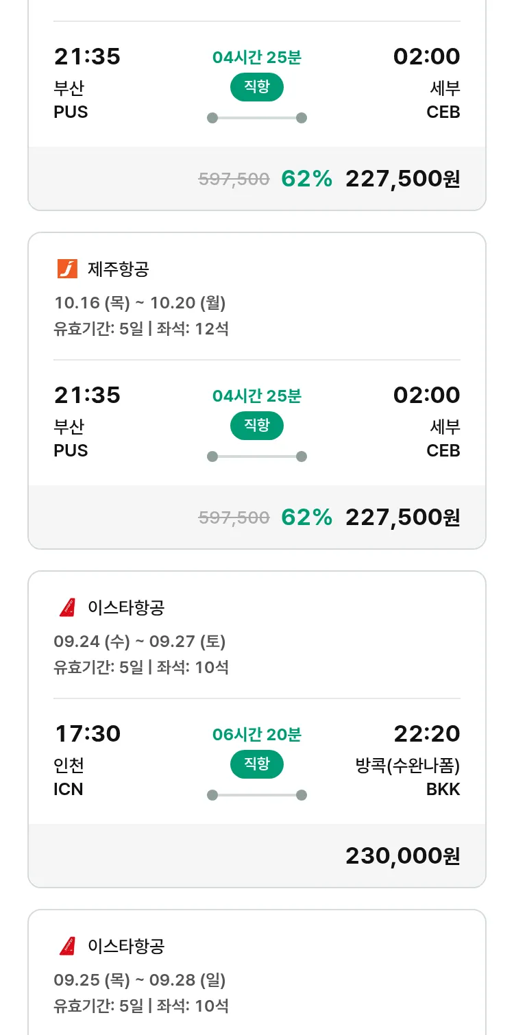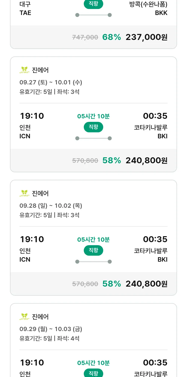 (9월 15일(월)) 땡처리 특가 항공권