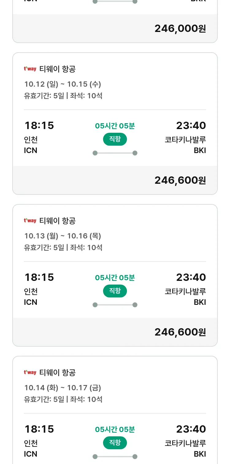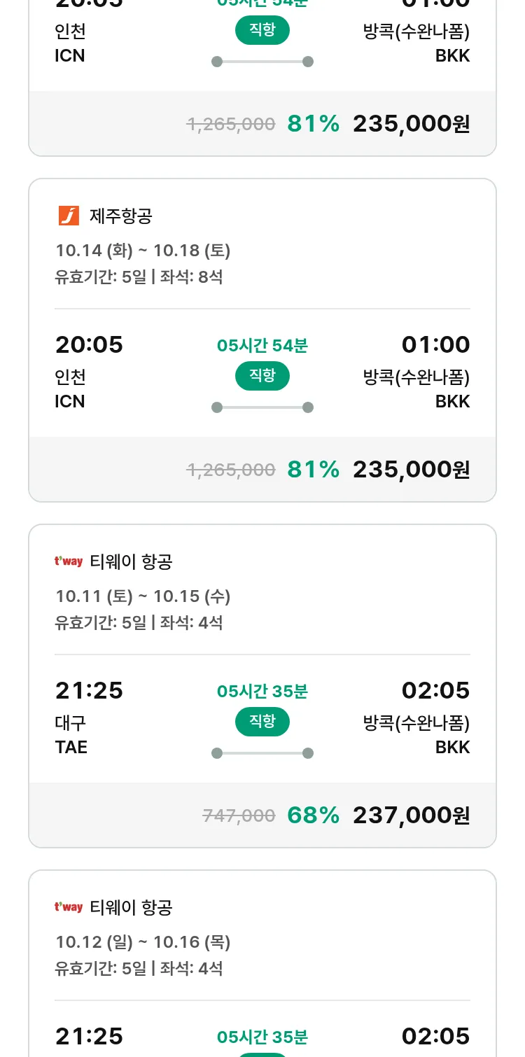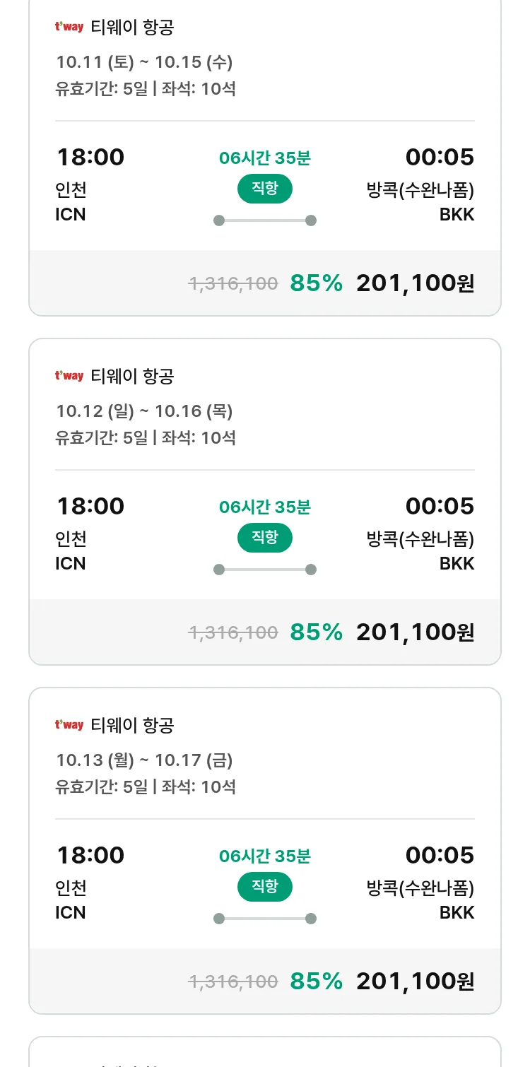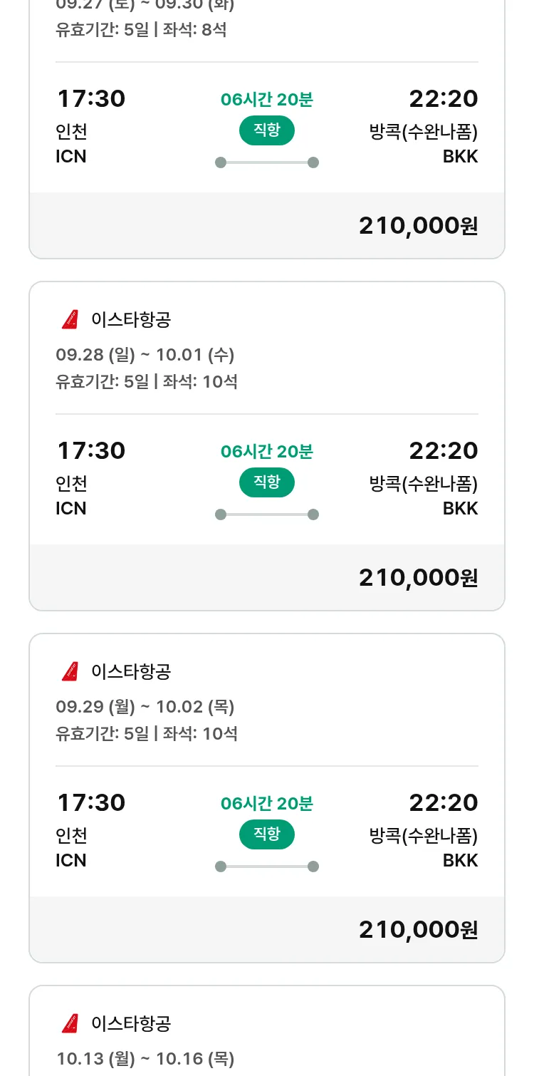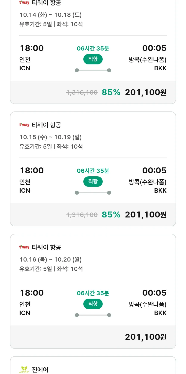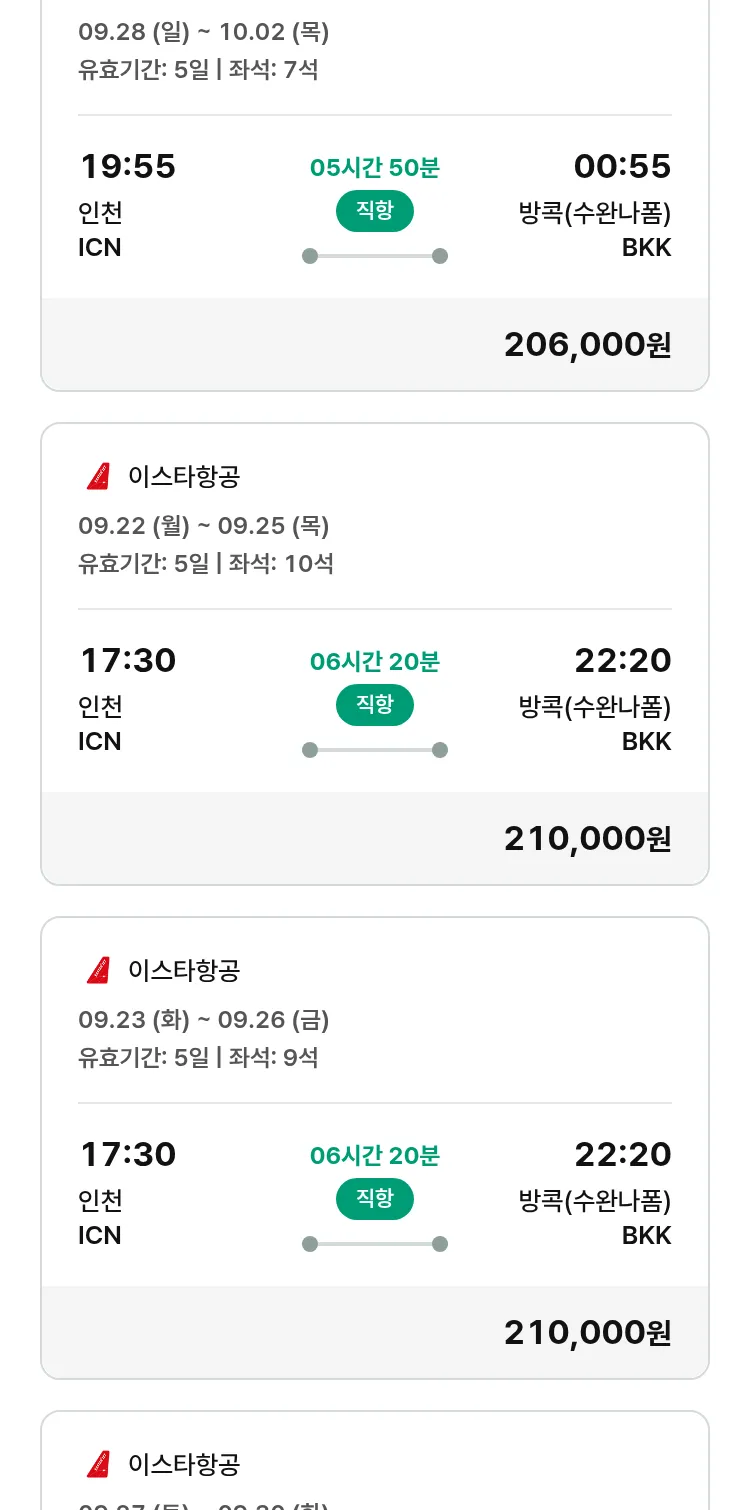 (9월 15일(월)) 땡처리 특가 항공권