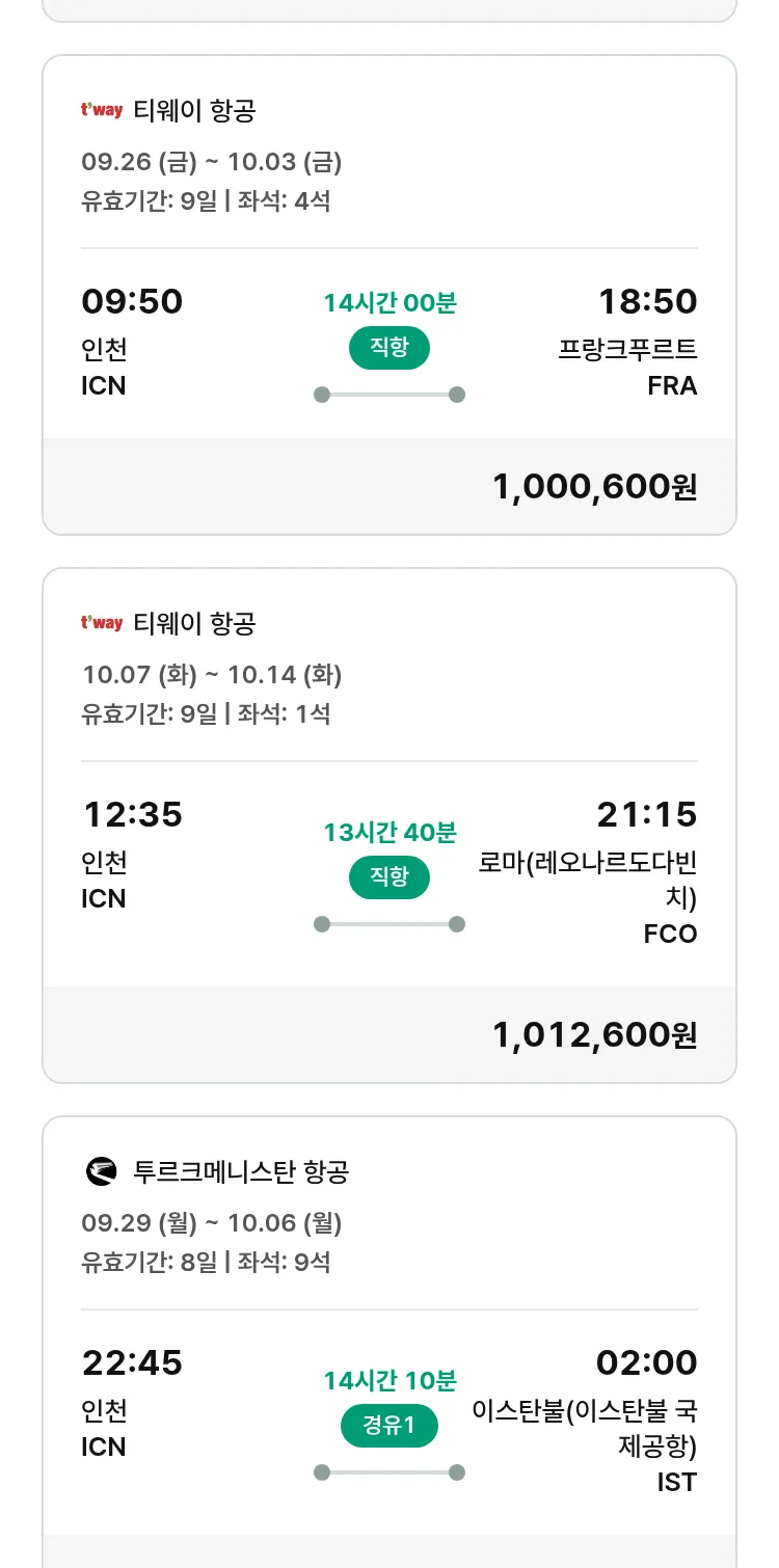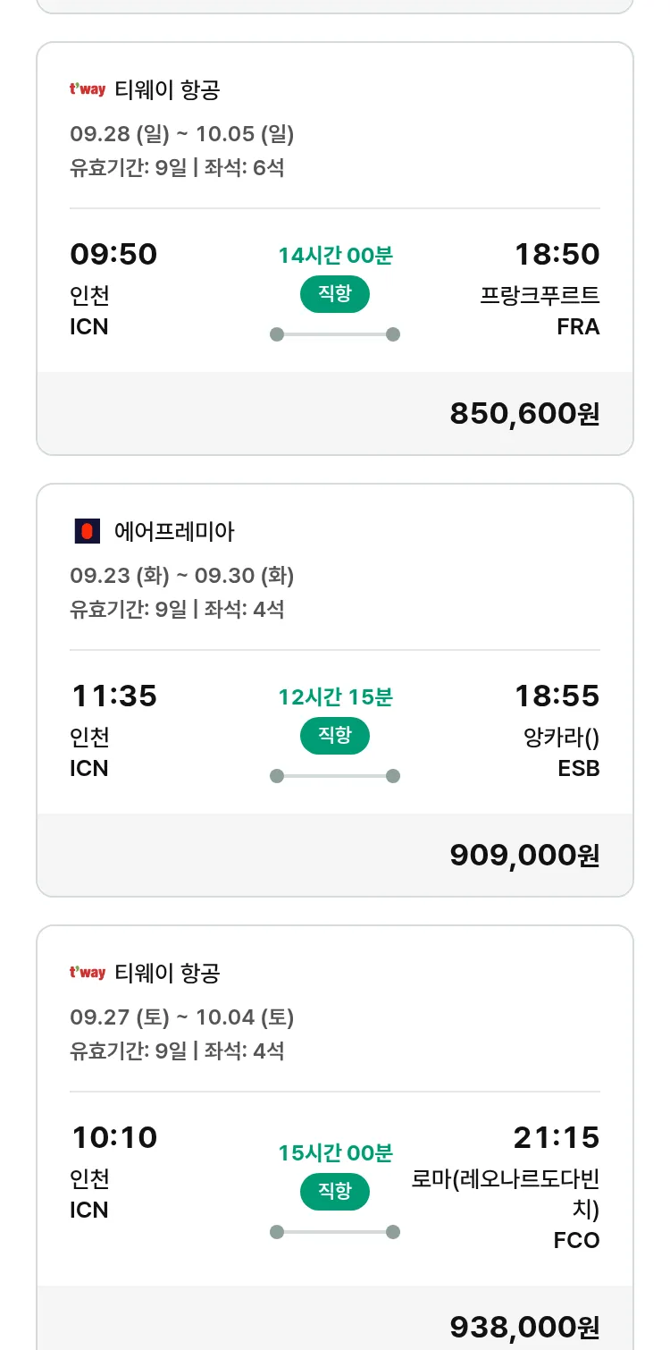(9월 14일(일)) 땡처리 유럽 긴급 패키지