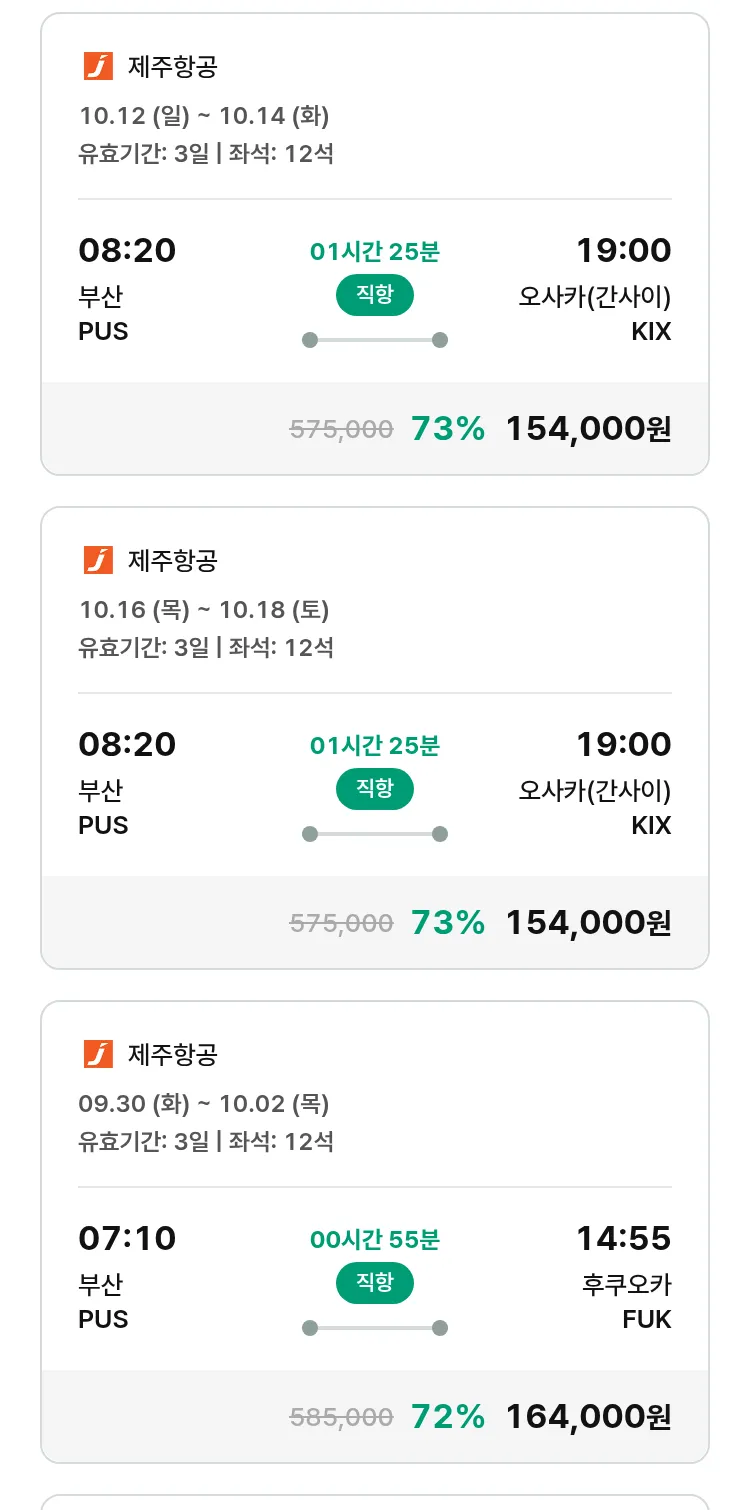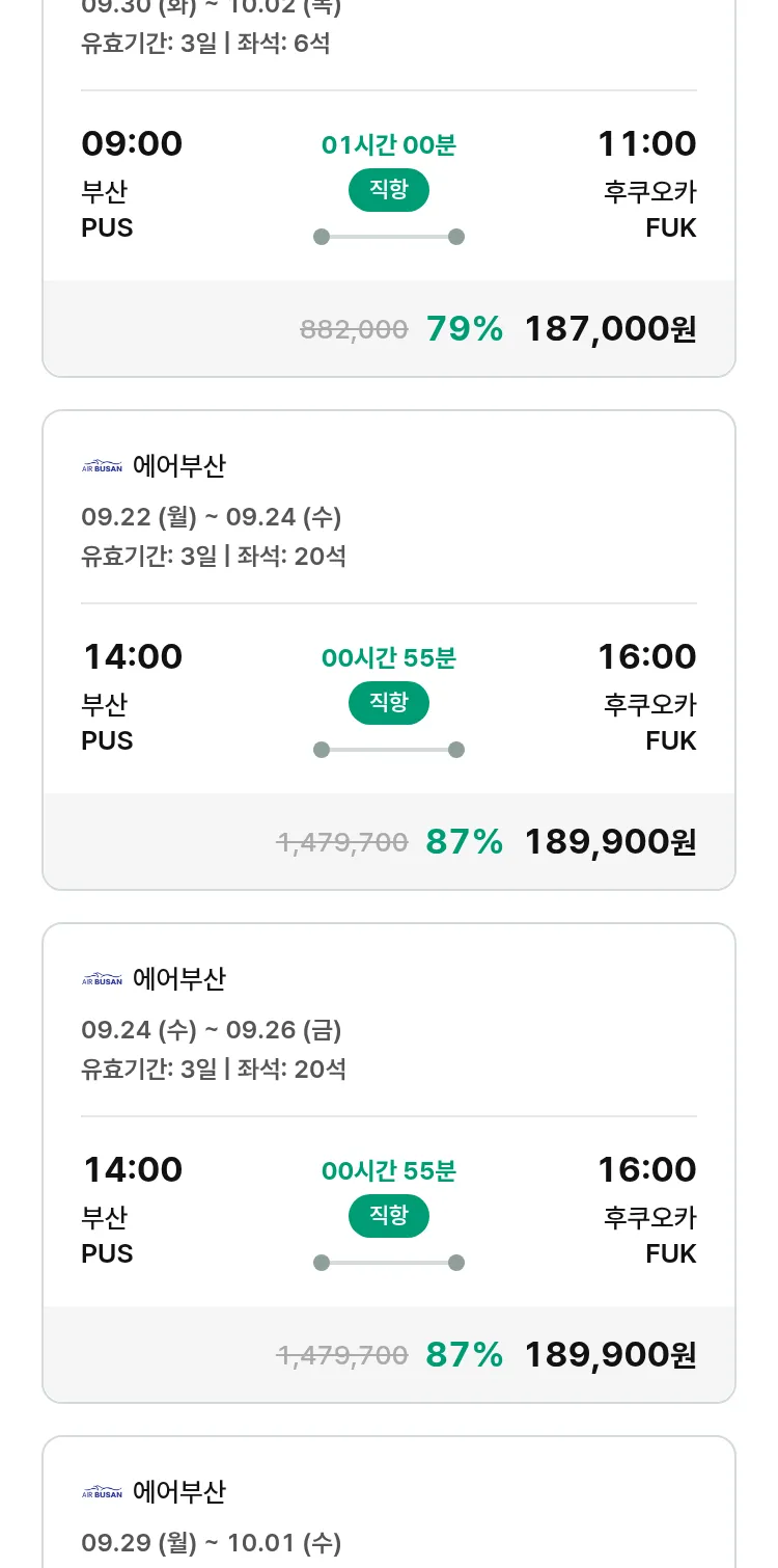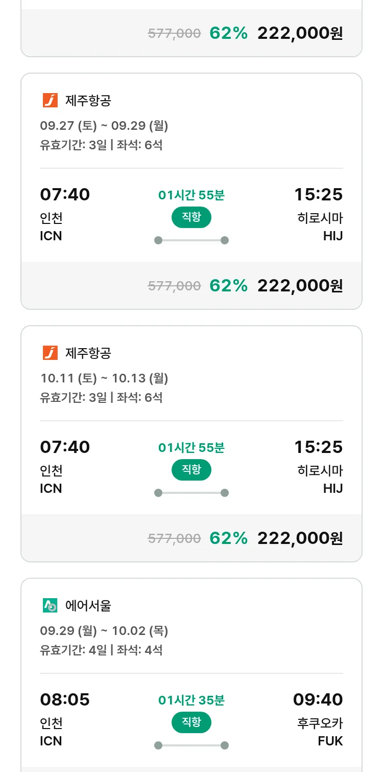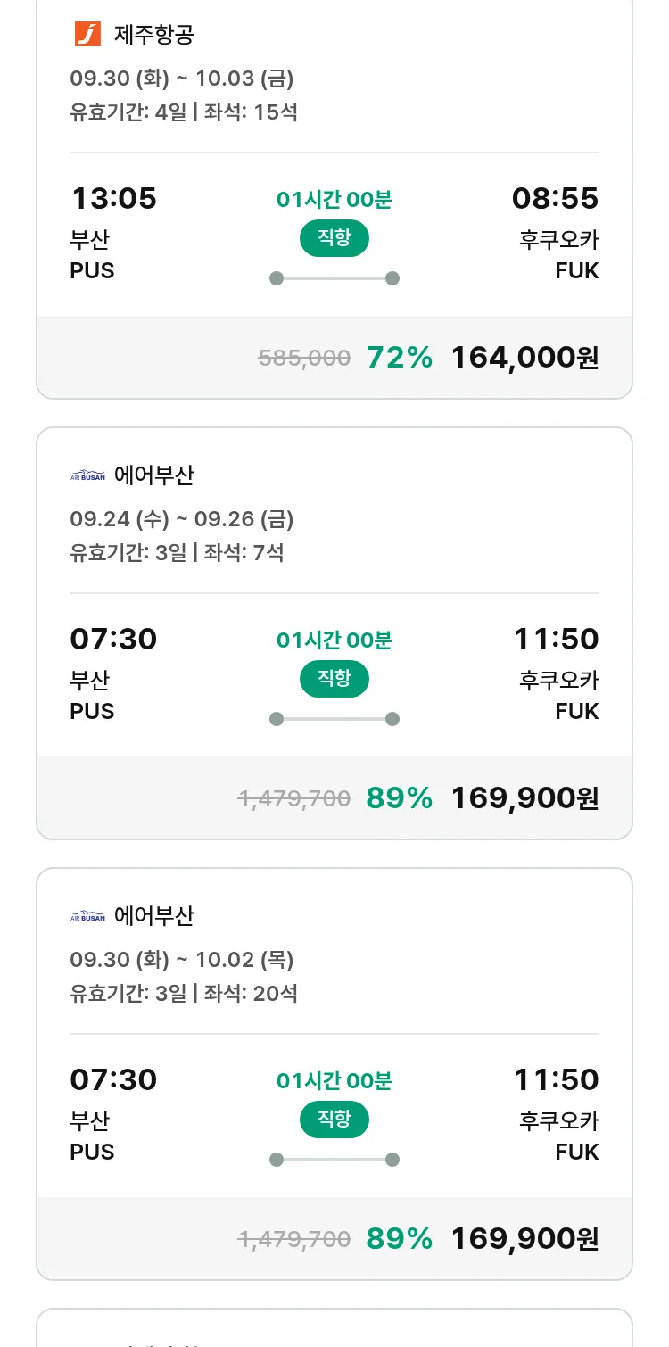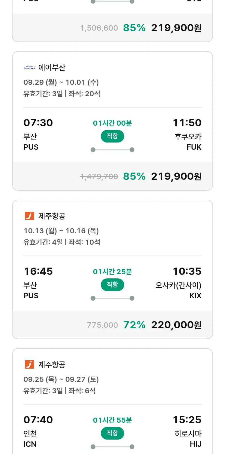 (9월 15일(월)) 땡처리 특가 항공권