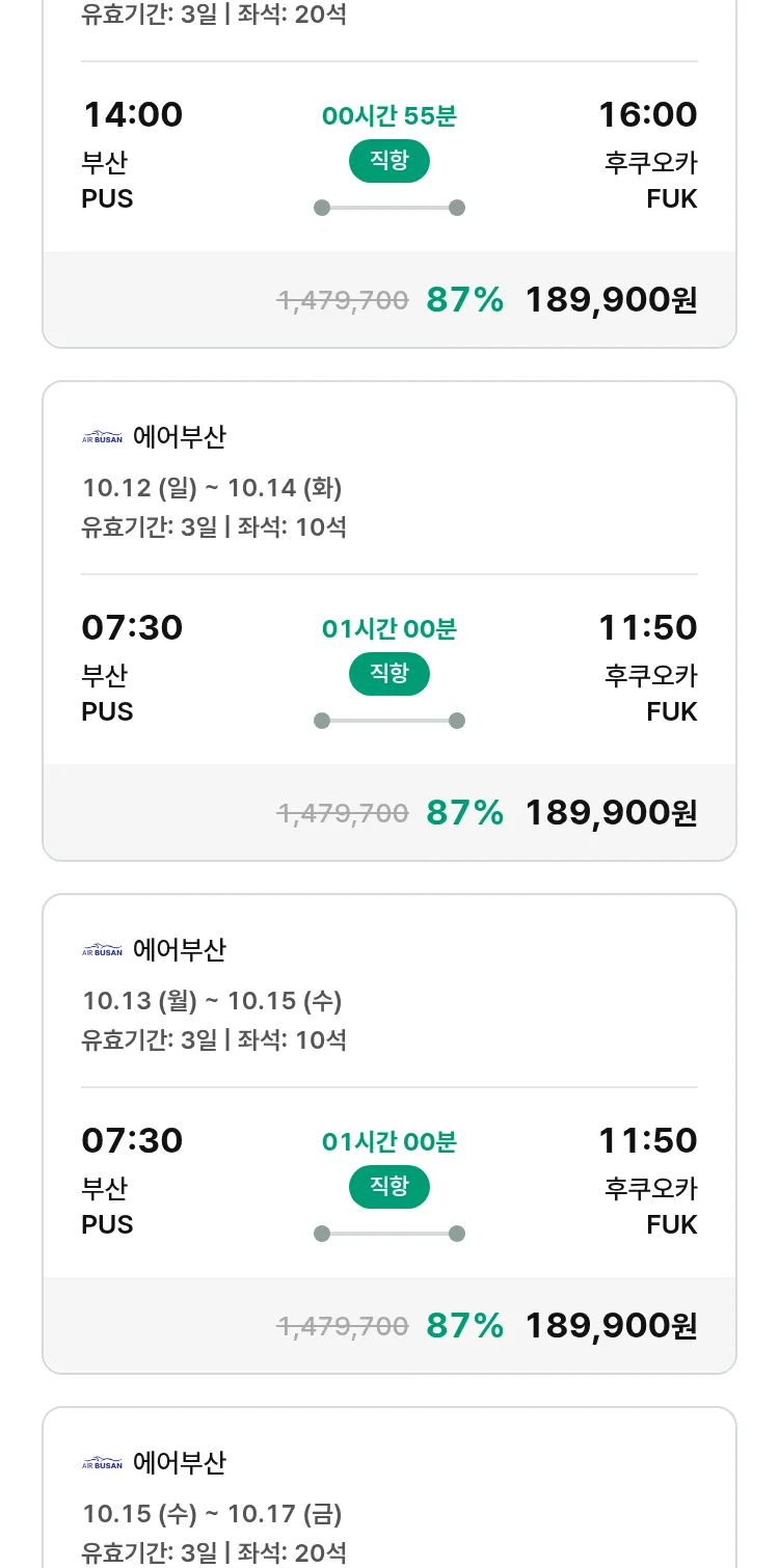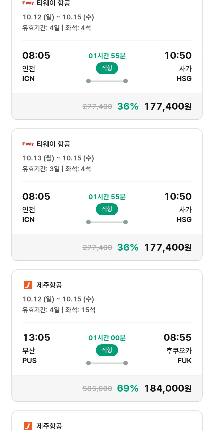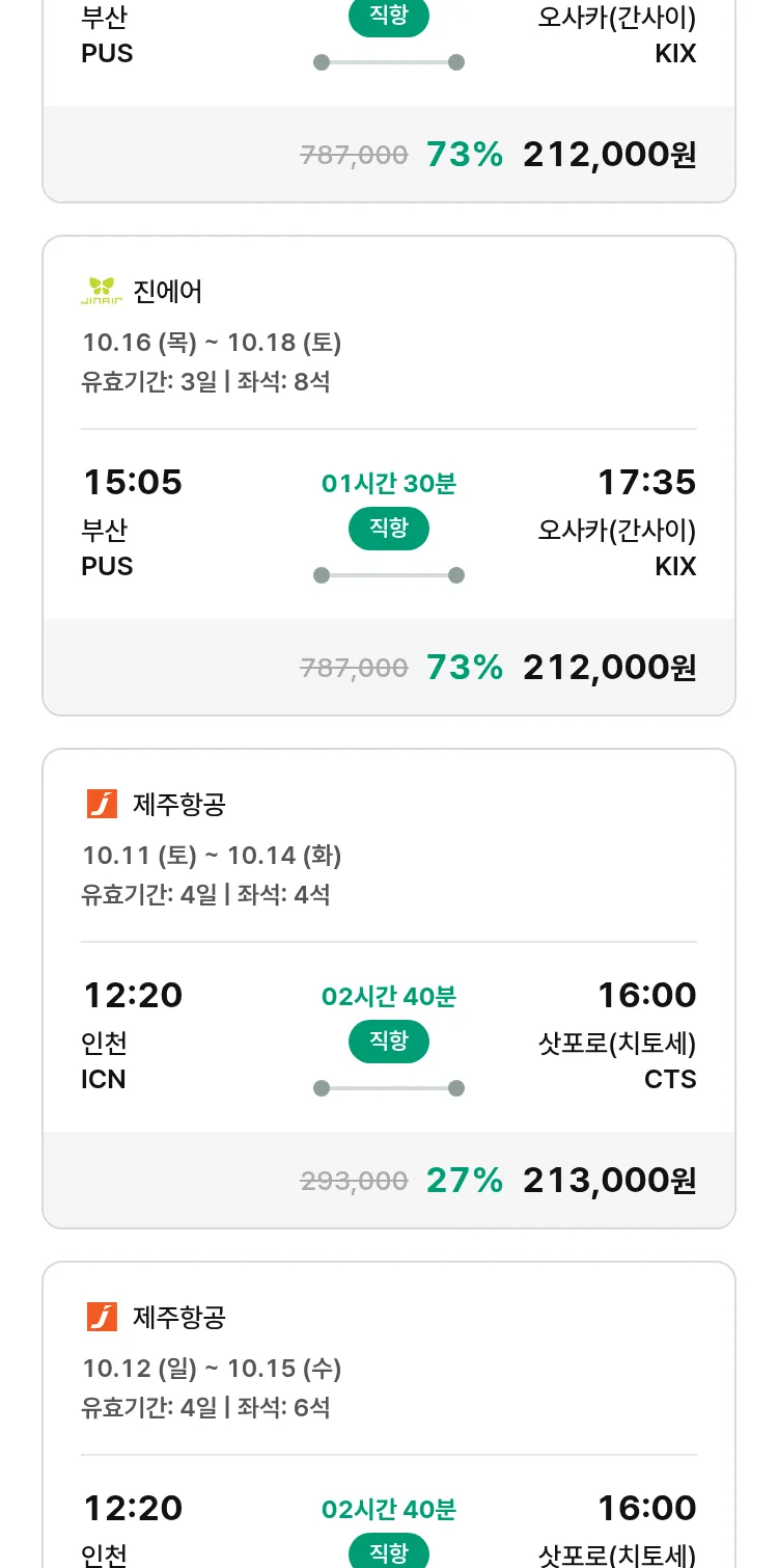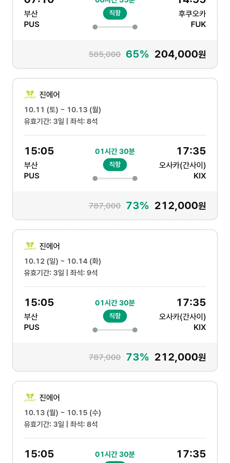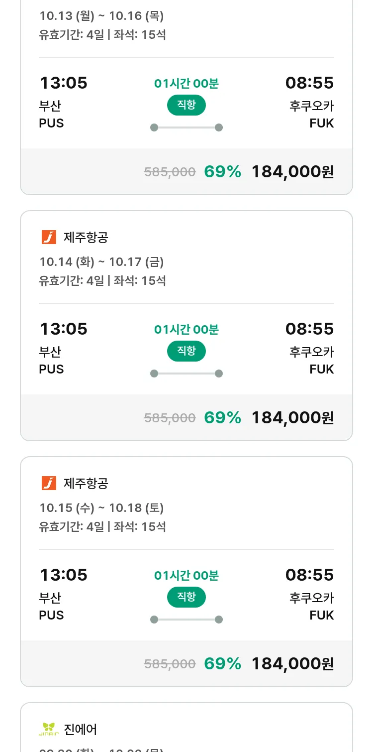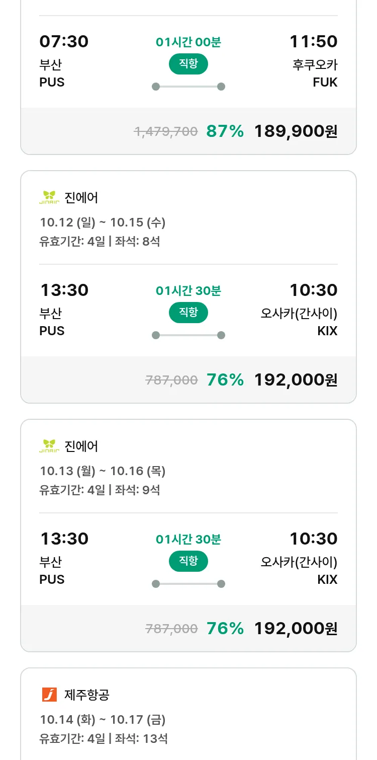 (9월 15일(월)) 땡처리 특가 항공권