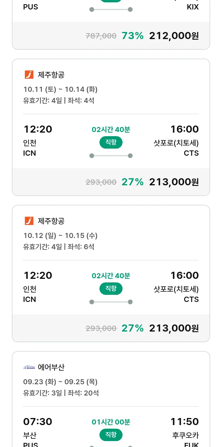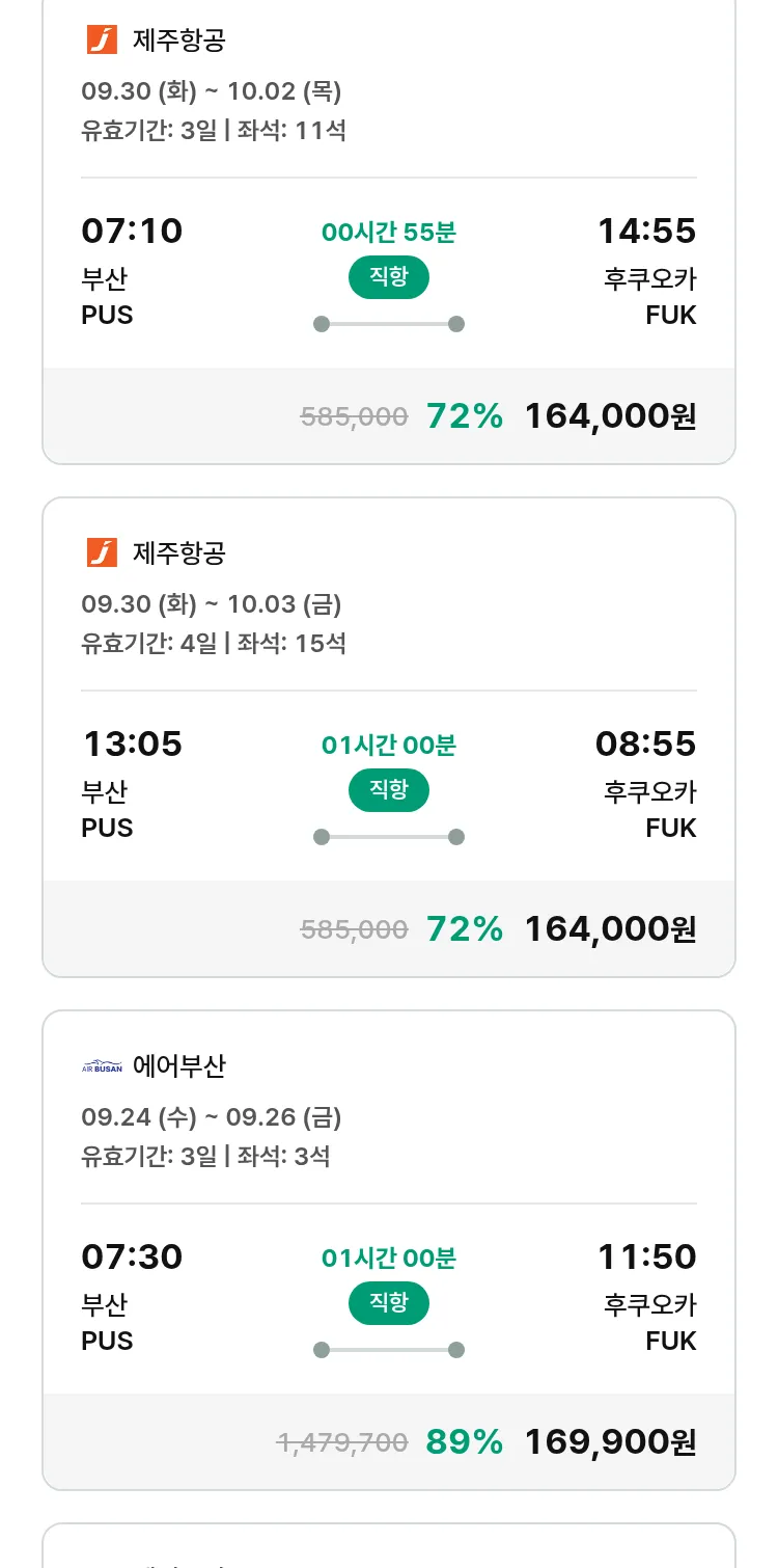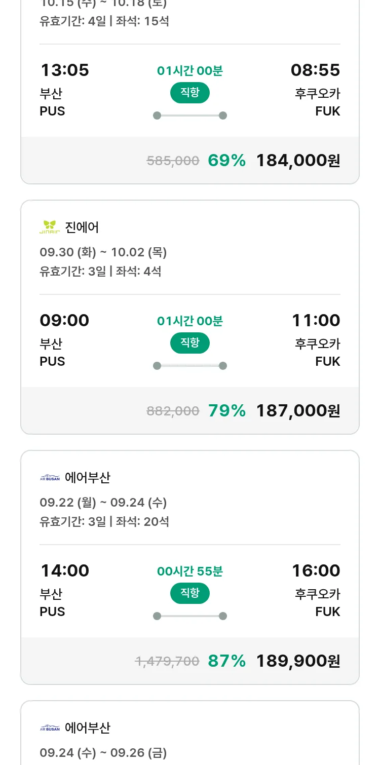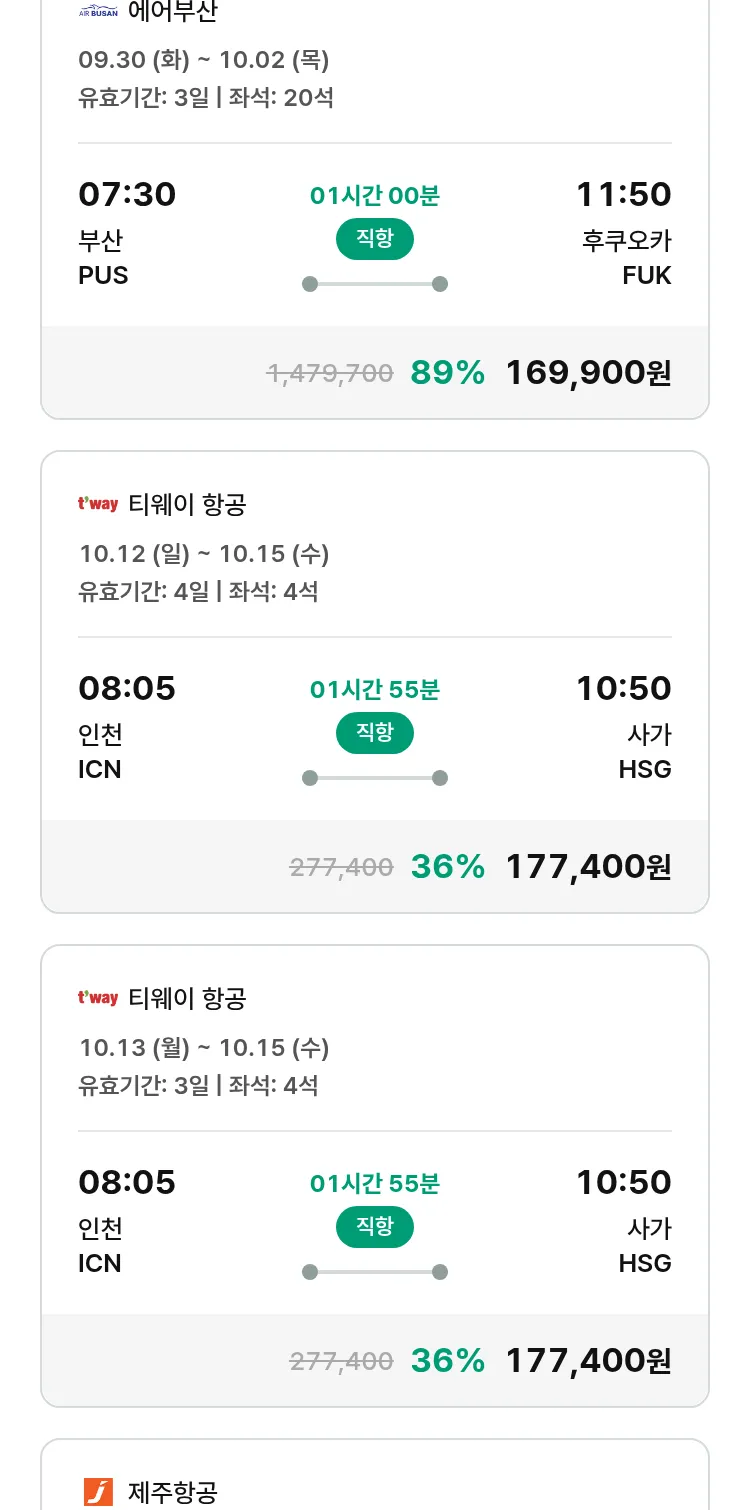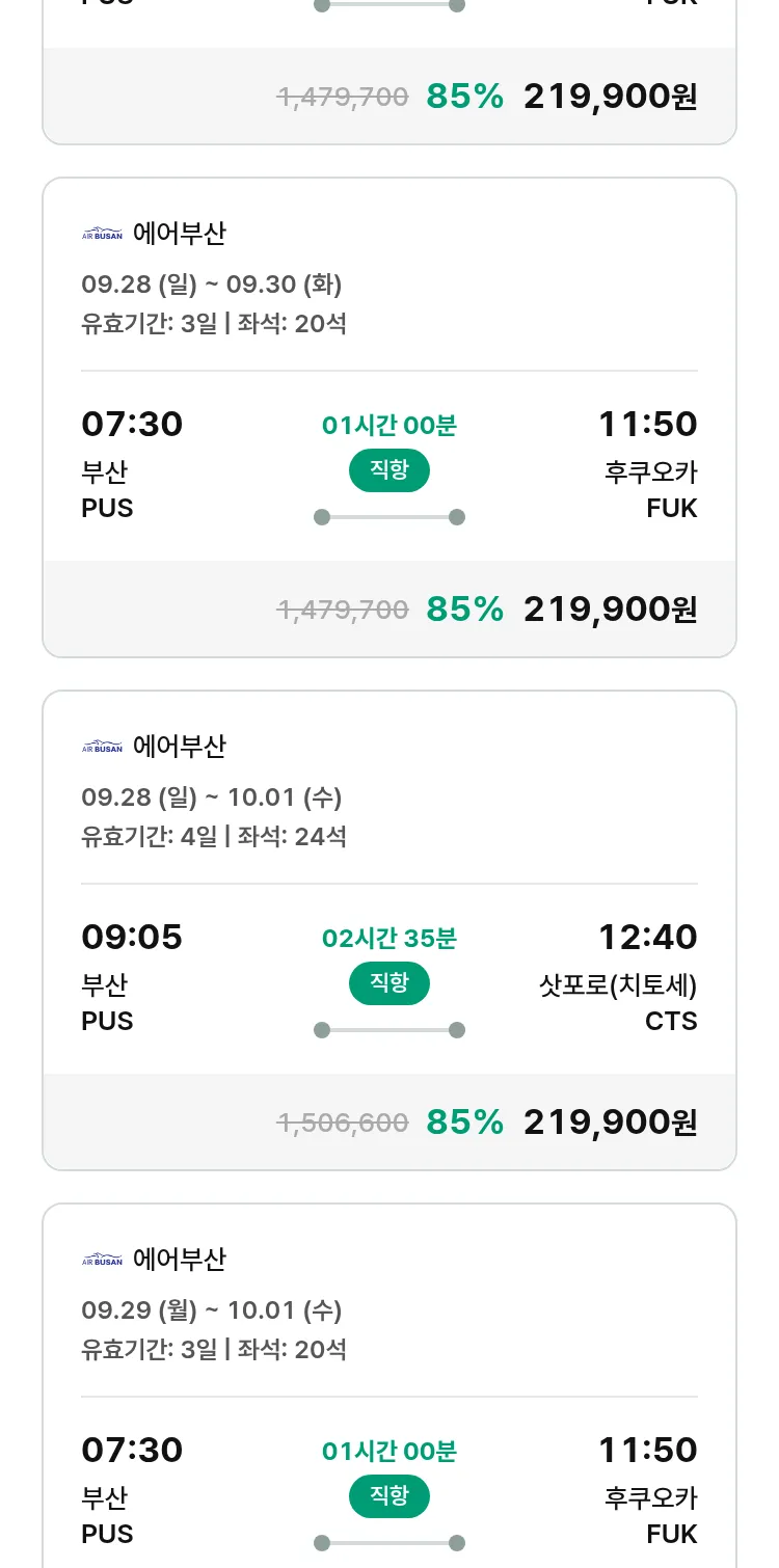 (9월 17일(수)) 땡처리 특가 항공권