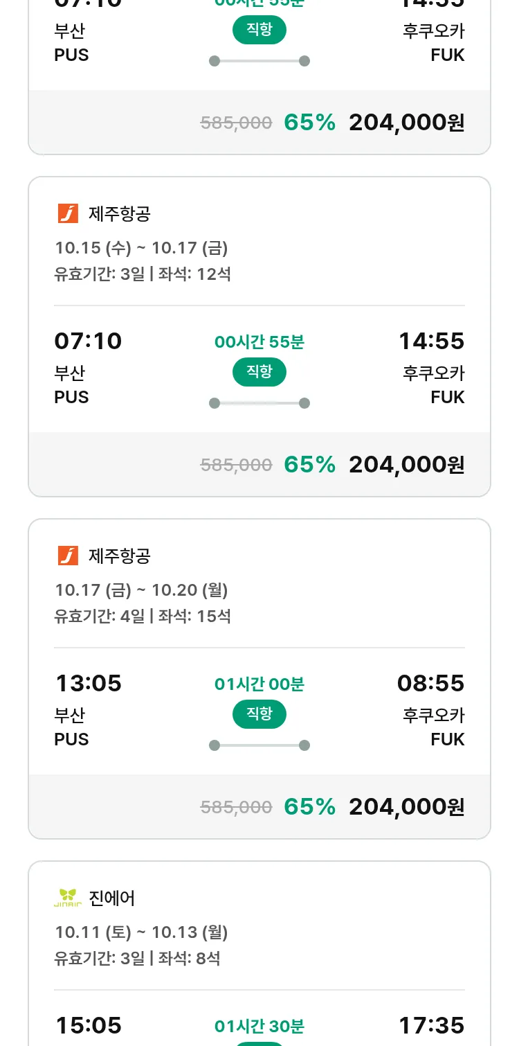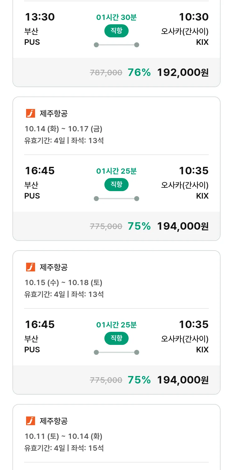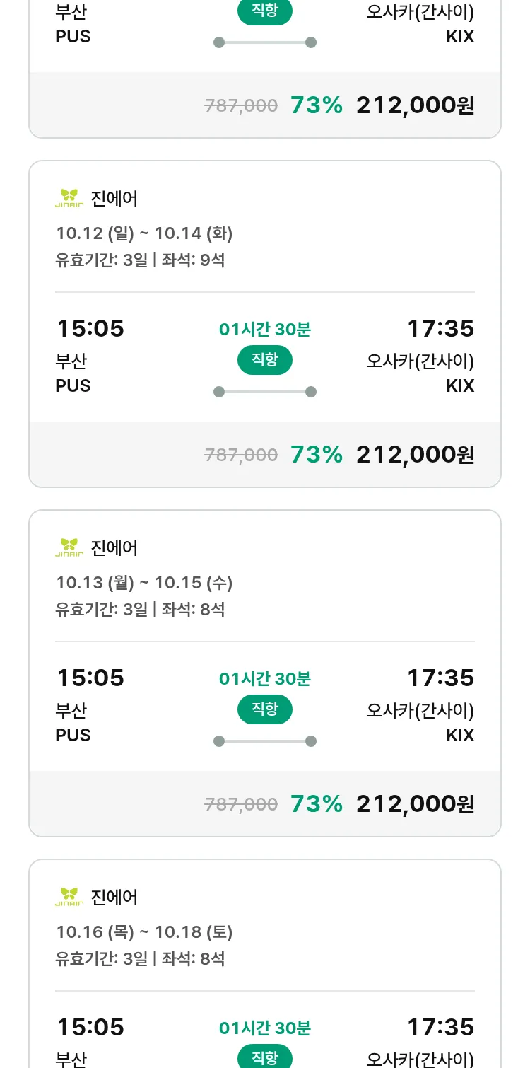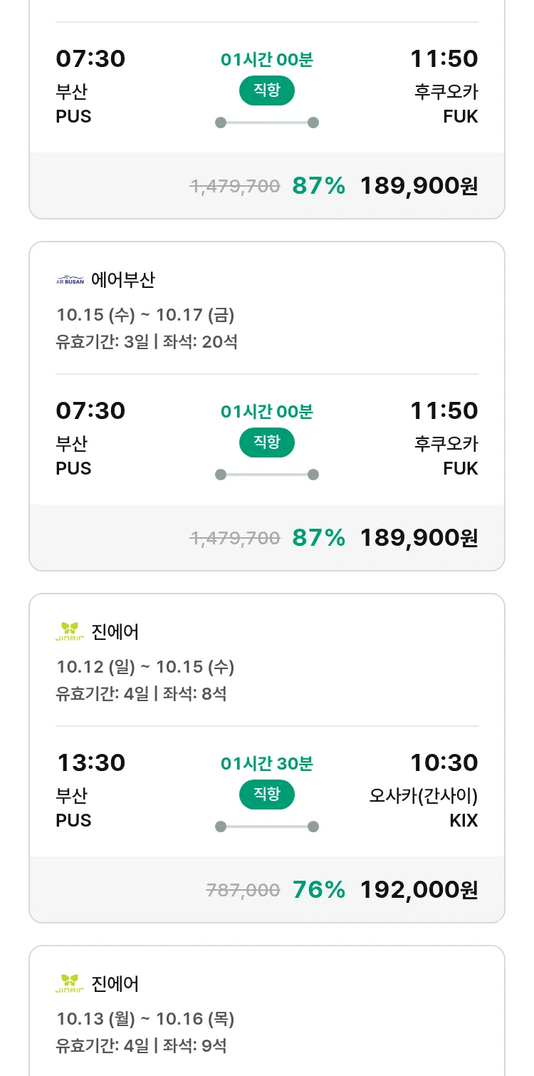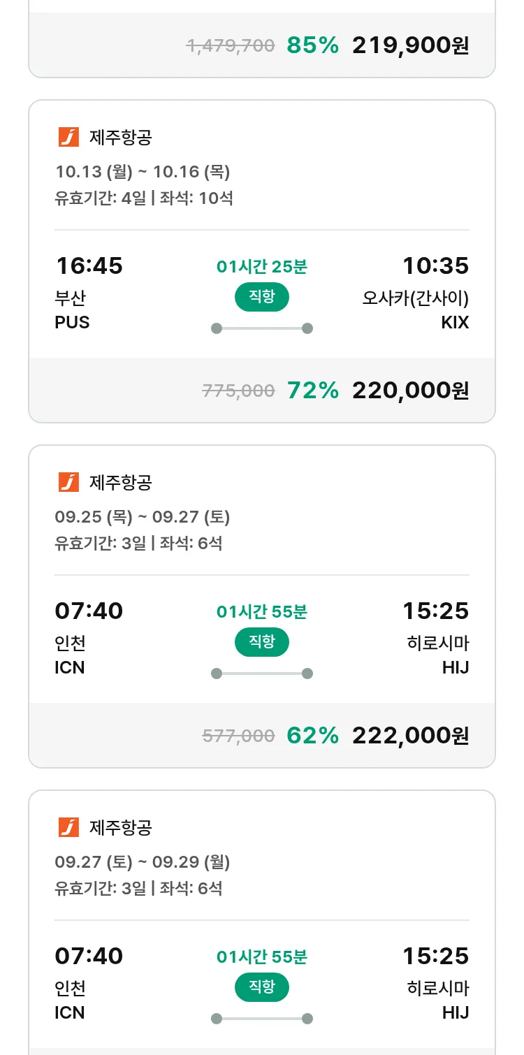 (9월 17일(수)) 땡처리 특가 항공권
