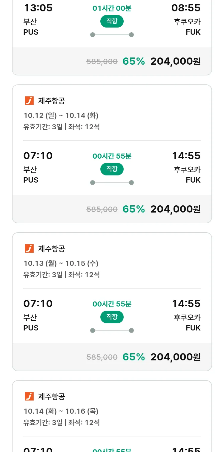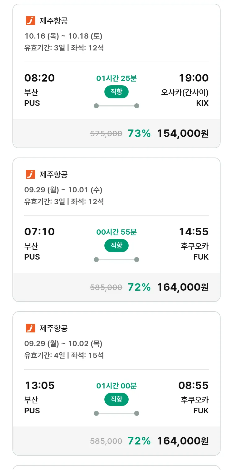 (9월 16일(화)) 땡처리 특가 항공권