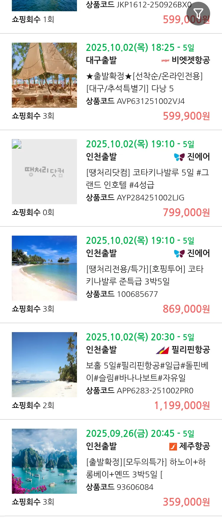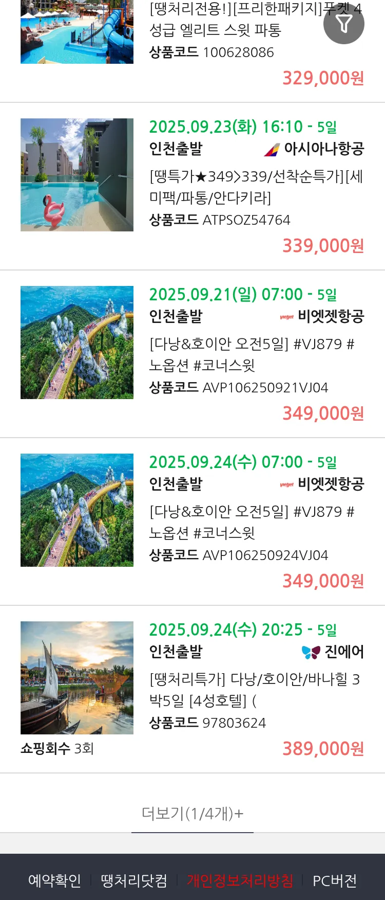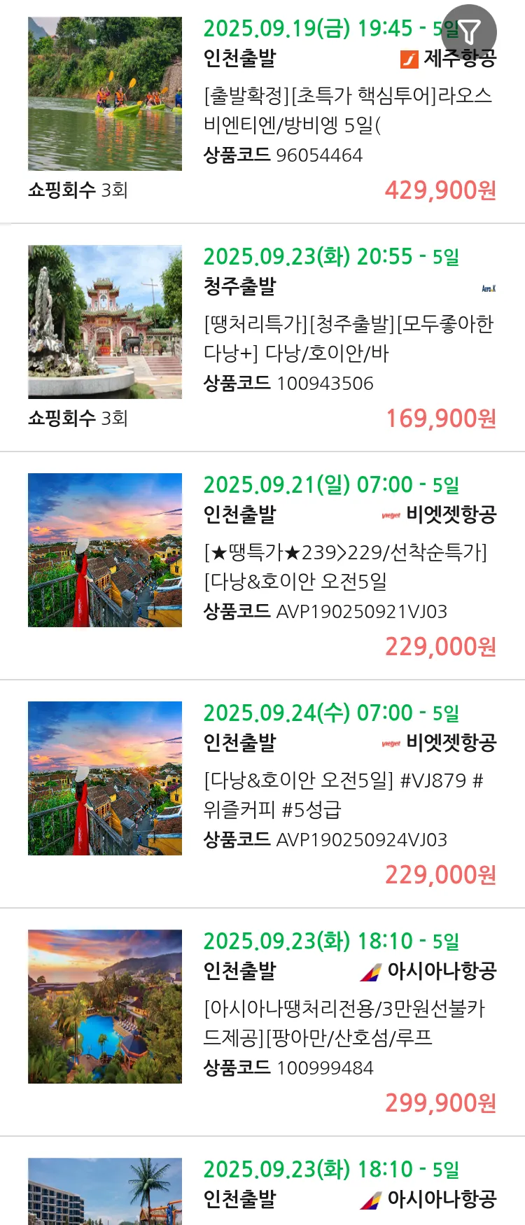 (9월 17일(수)) 땡처리 99.9% 확정 패키지