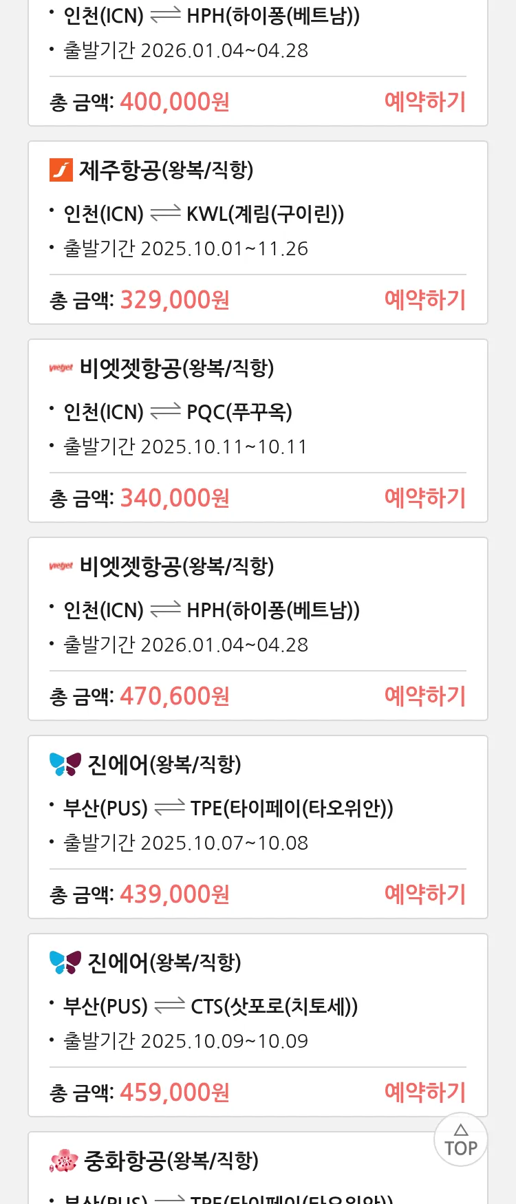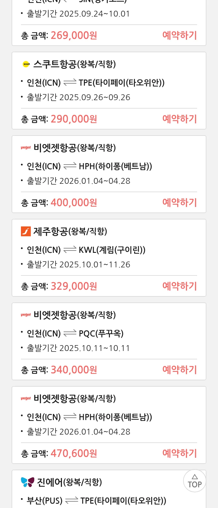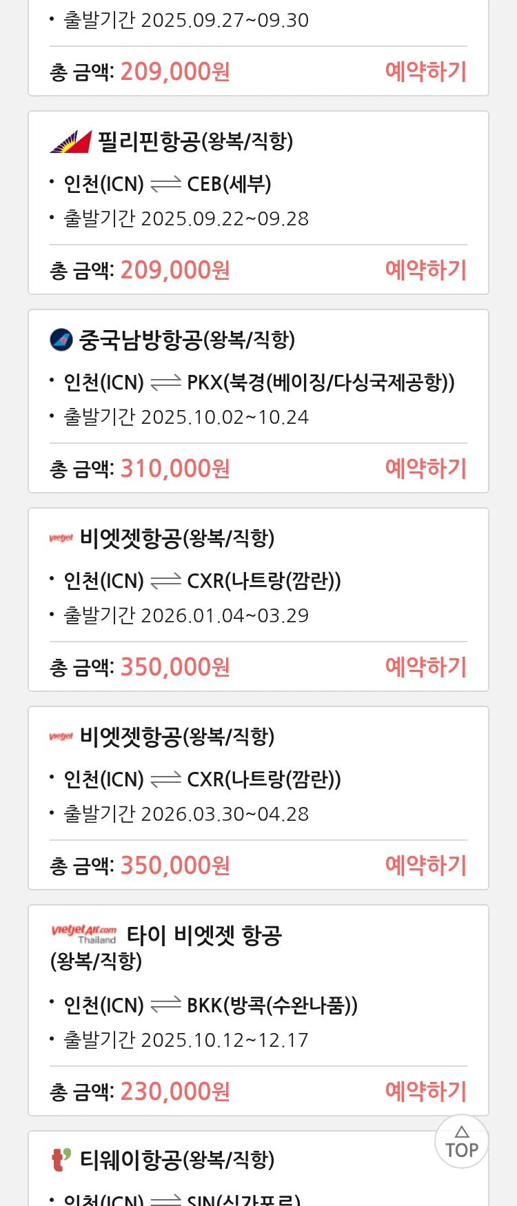 (9월 17일(수)) 모두투어 동남아 특가 항공권