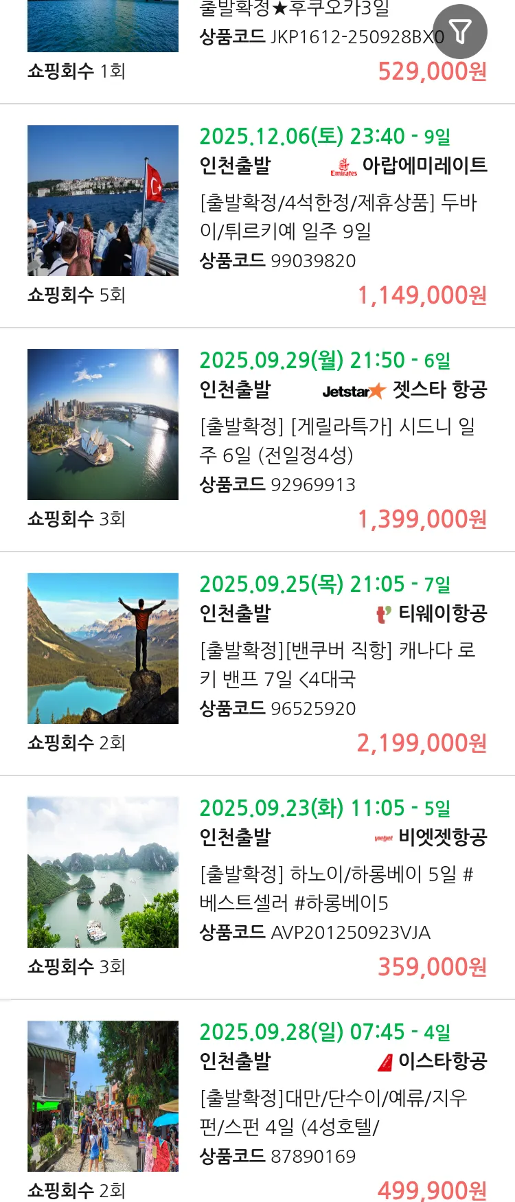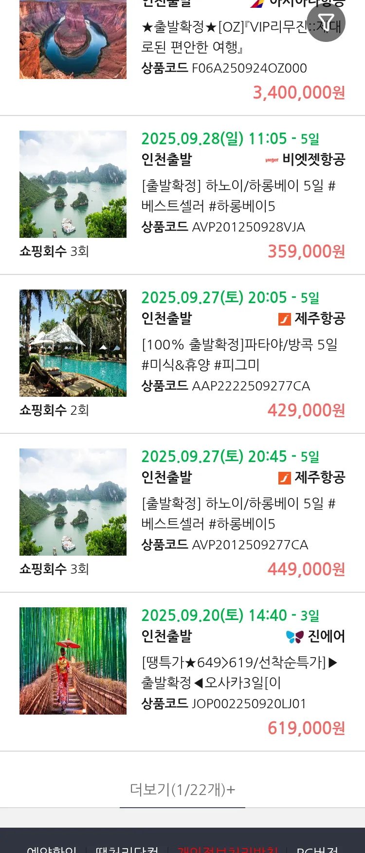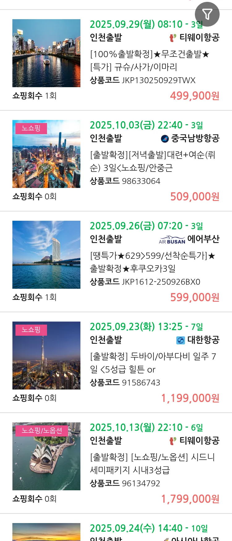 (9월 17일(수)) 땡처리 99.9% 확정 패키지