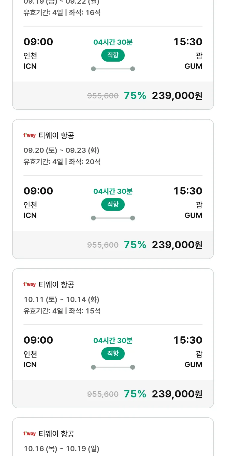 (9월 18일(목)) 땡처리 99.9% 확정 패키지