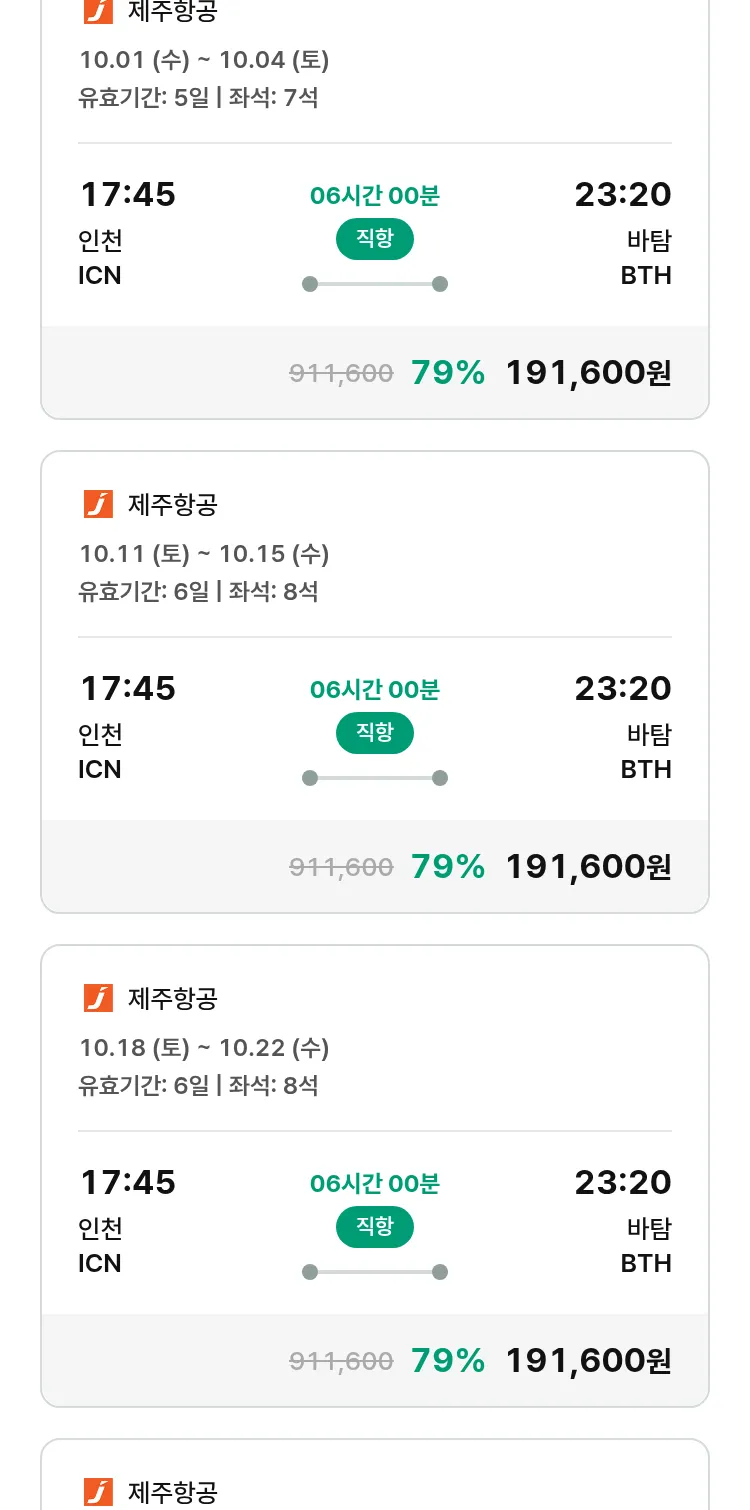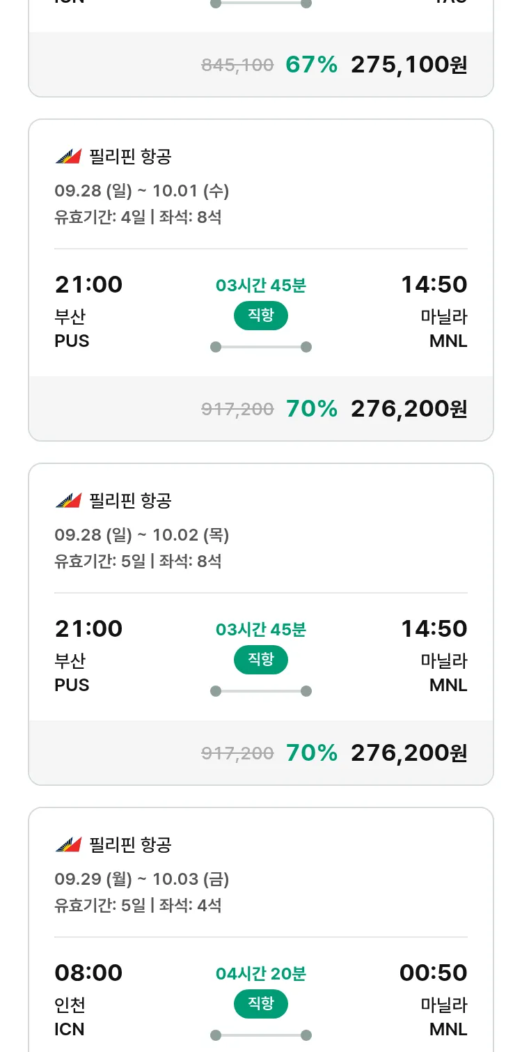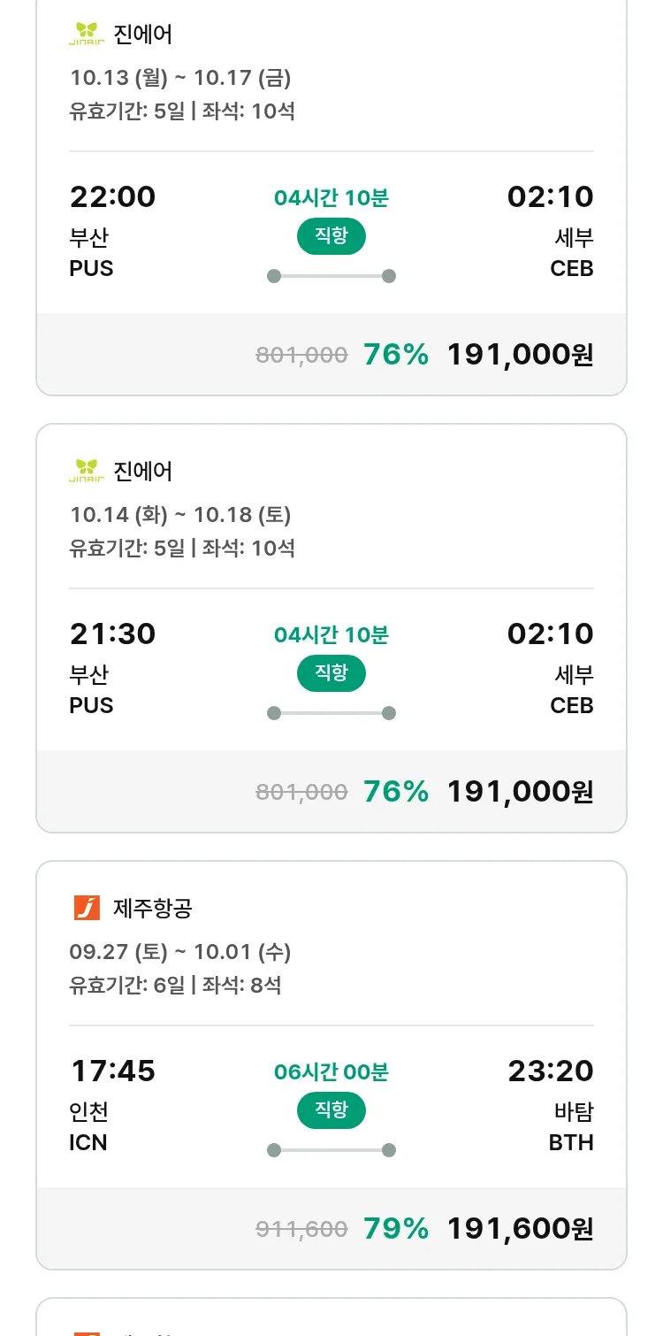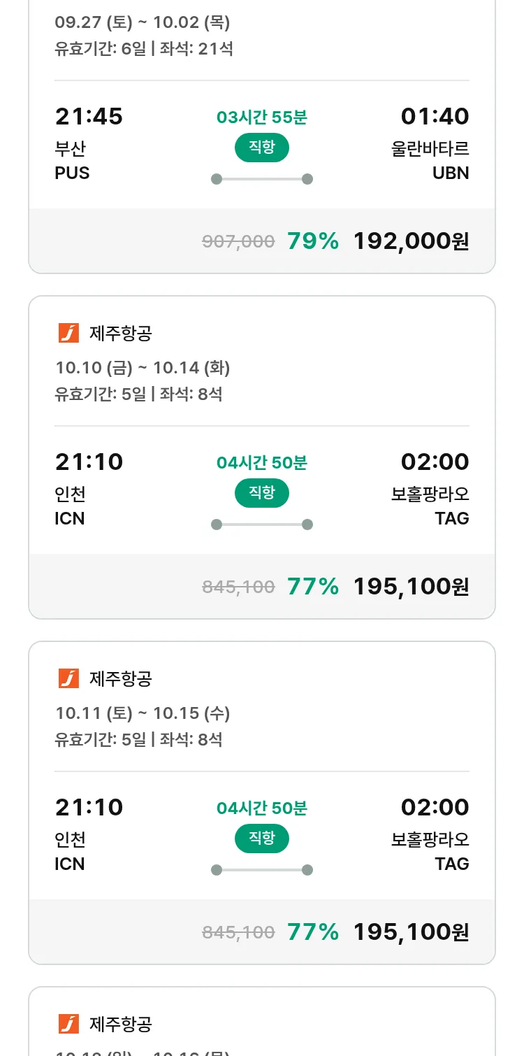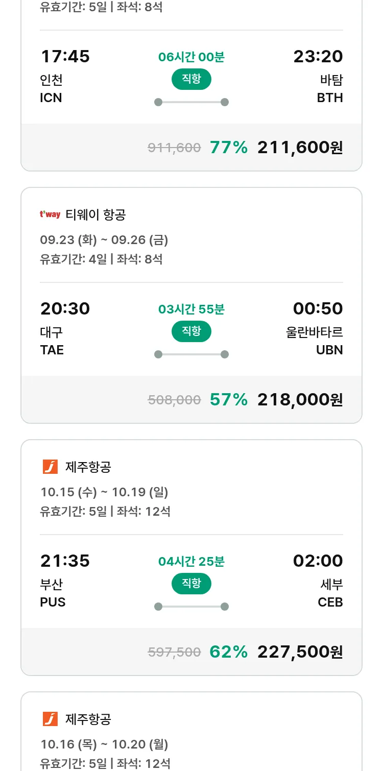 (9월 17일(수)) 땡처리 특가 항공권