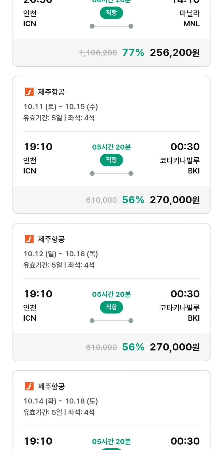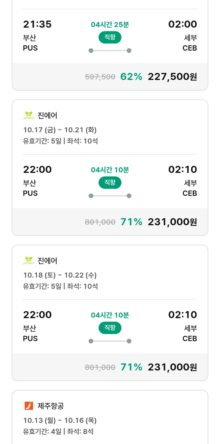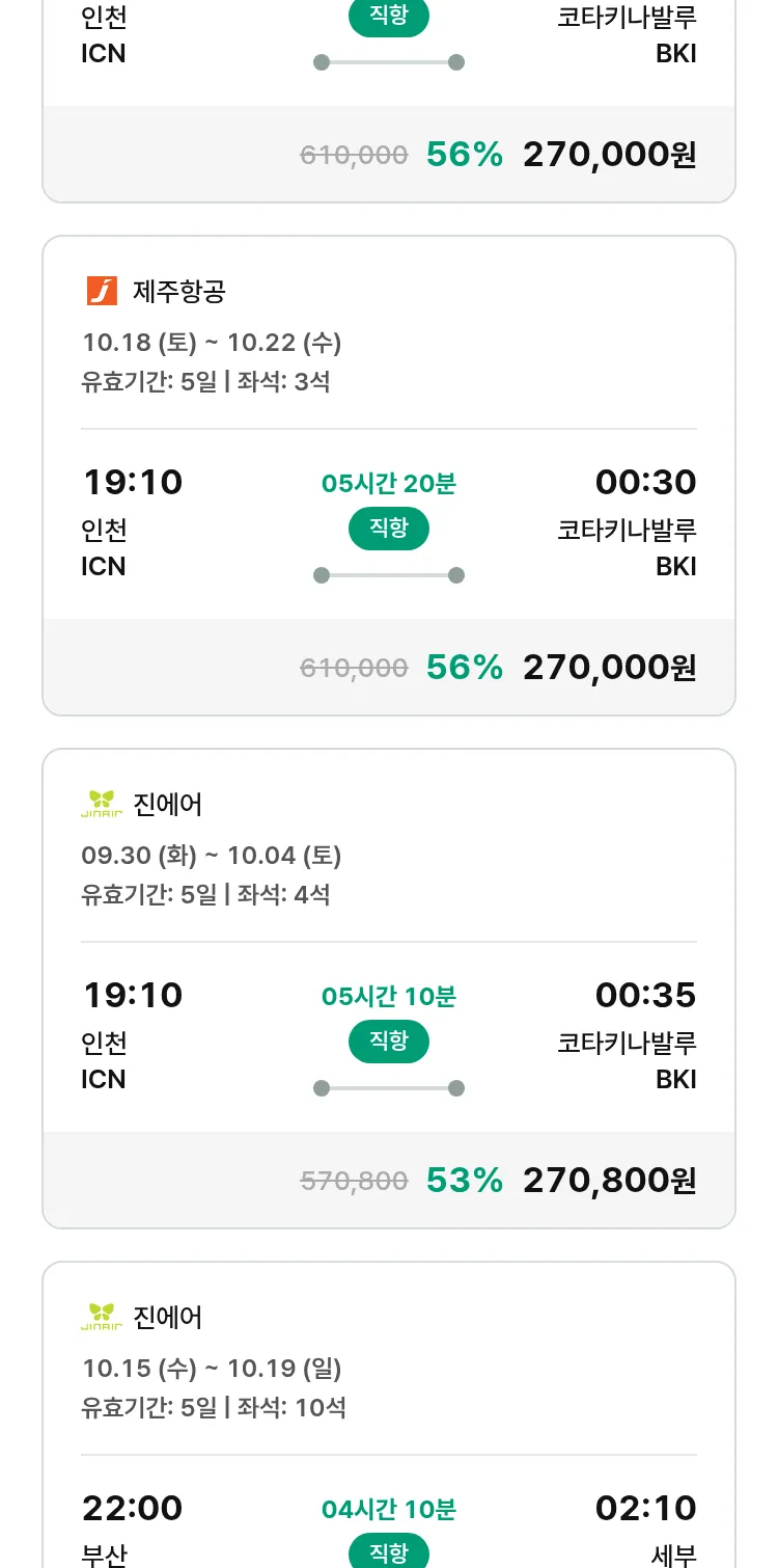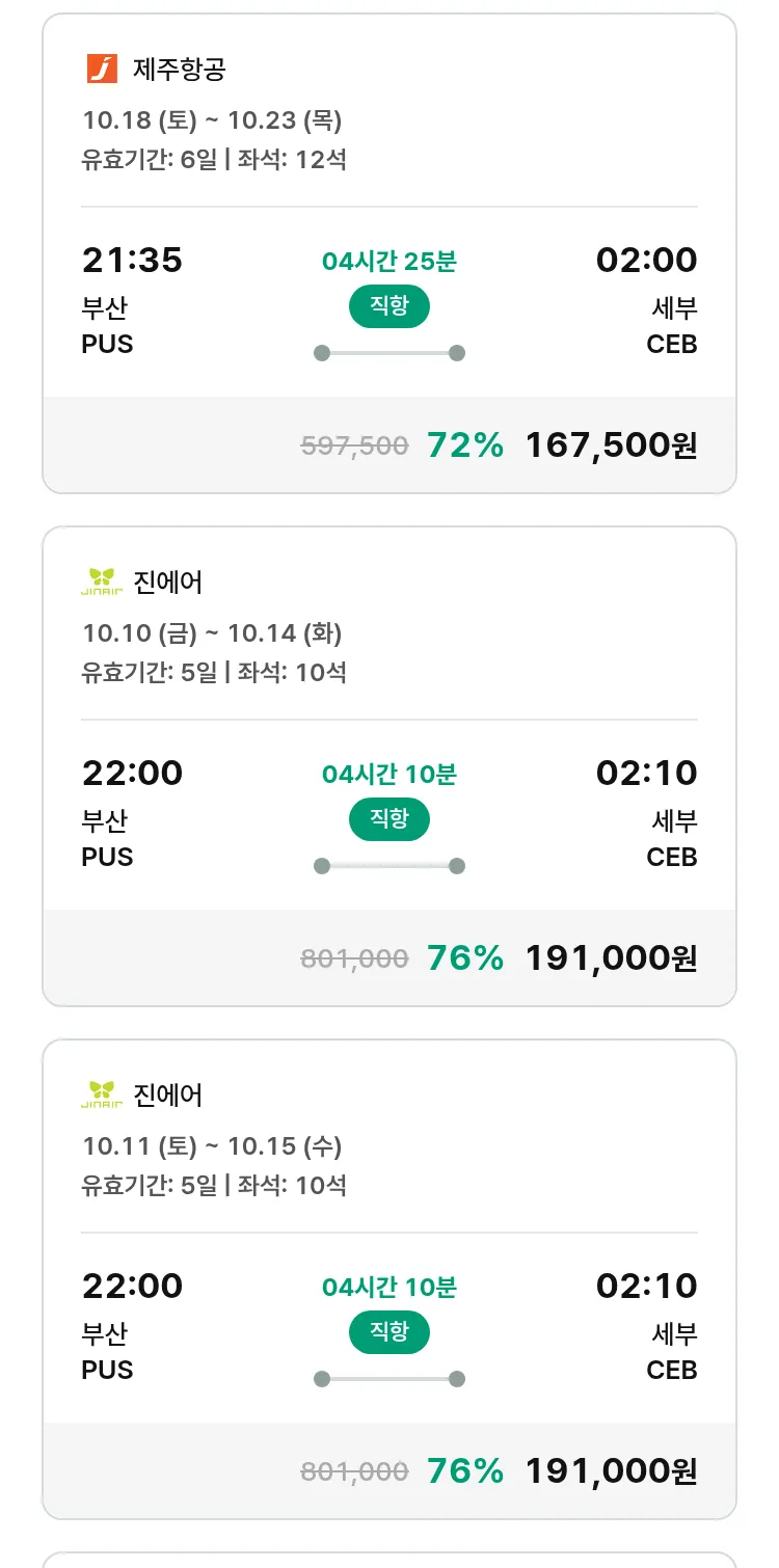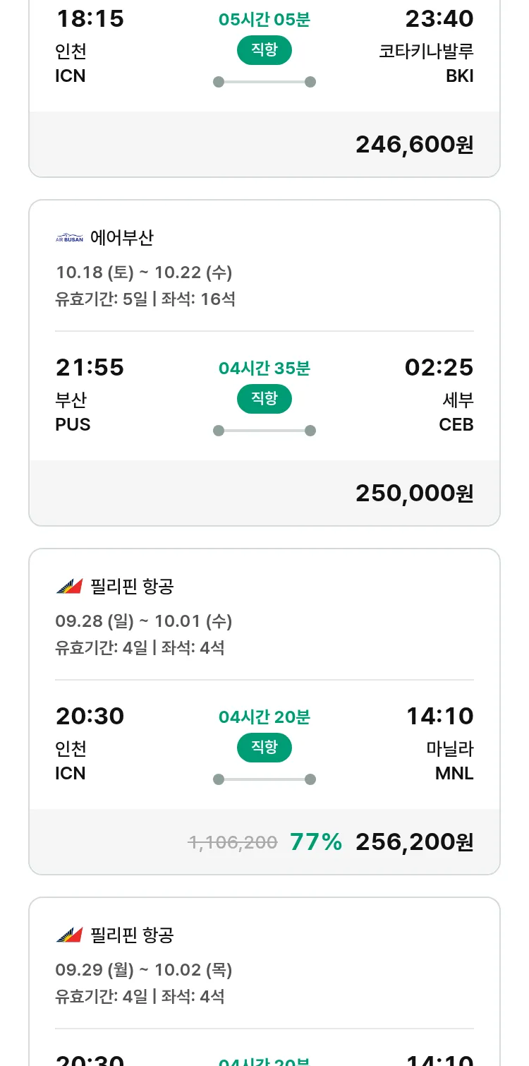 (9월 17일(수)) 땡처리 특가 항공권