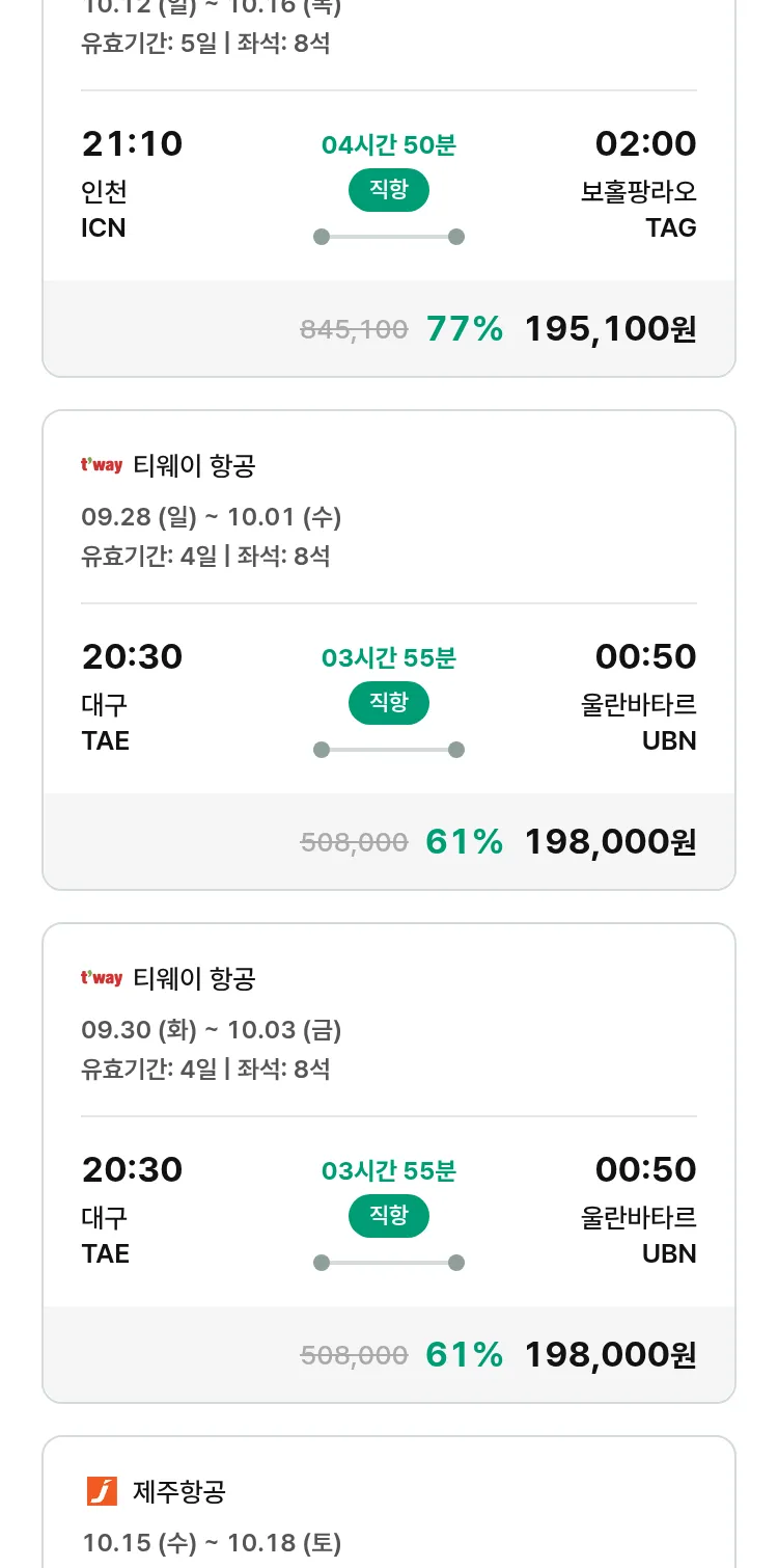 (9월 16일(화)) 땡처리 특가 항공권