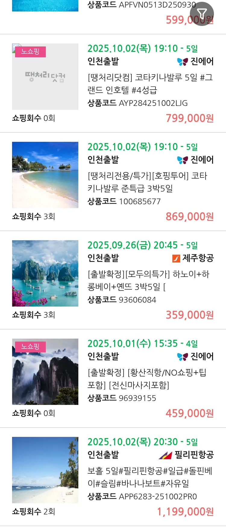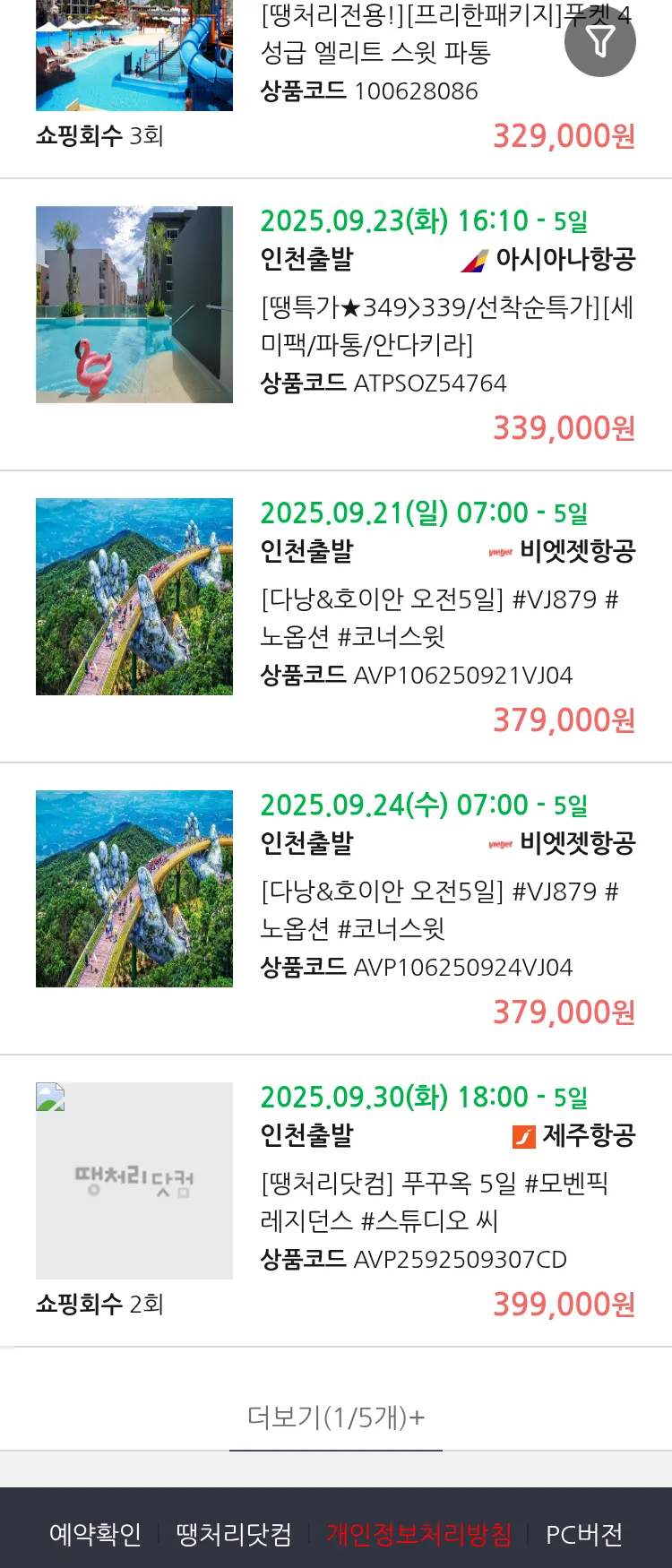(9월 18일(목)) 땡처리 99.9% 확정 패키지