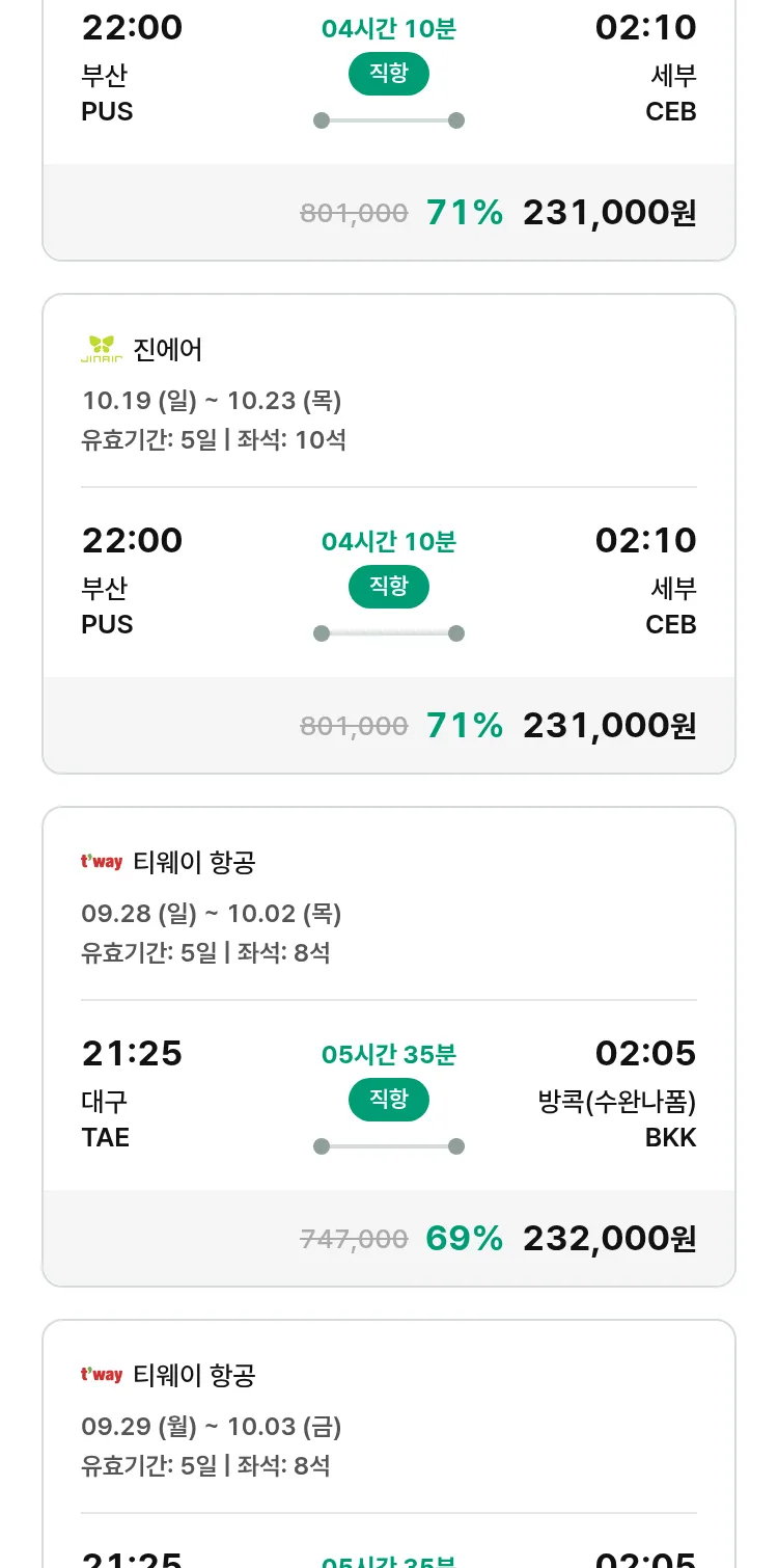 (9월 18일(목)) 땡처리 99.9% 확정 패키지