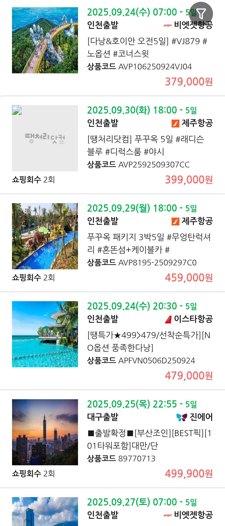 (9월 19일(금)) 땡처리 99.9% 확정 패키지