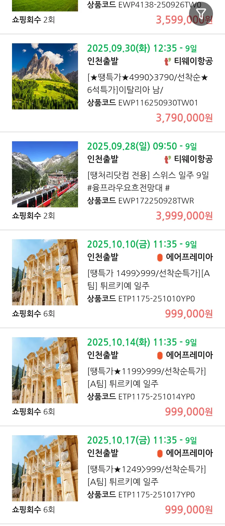 (9월 19일(금)) 땡처리 유럽 긴급 패키지