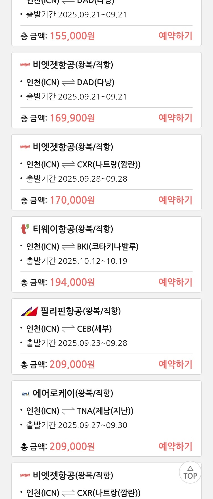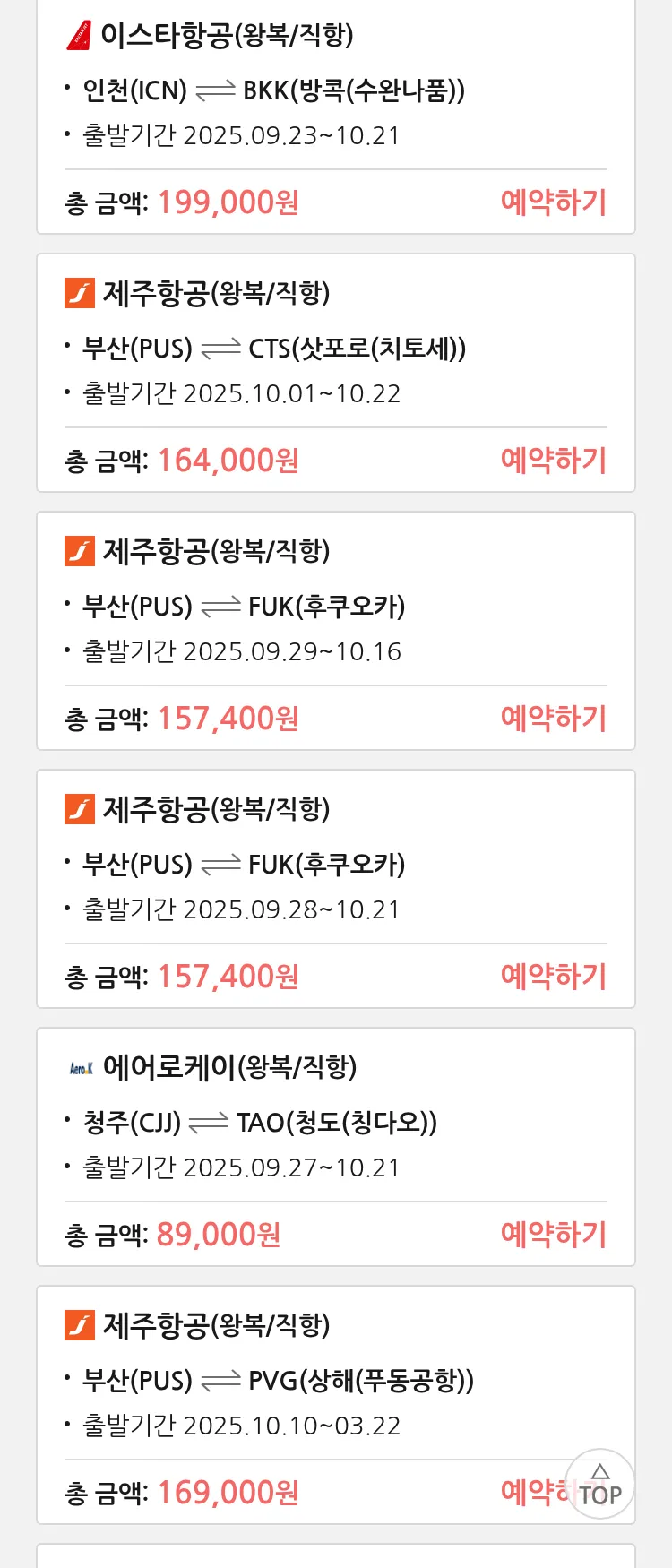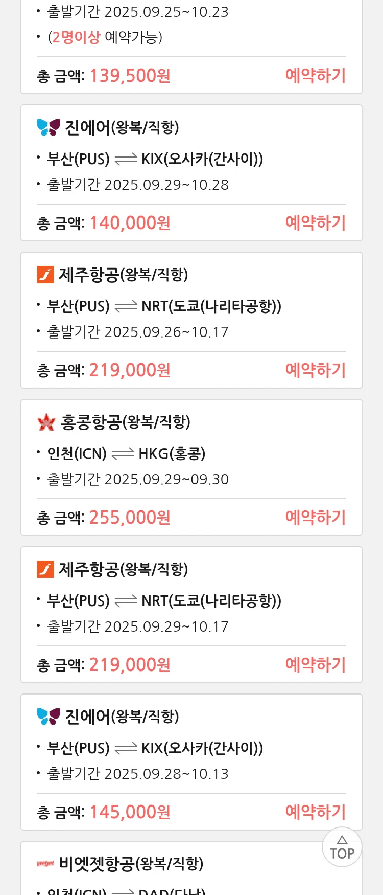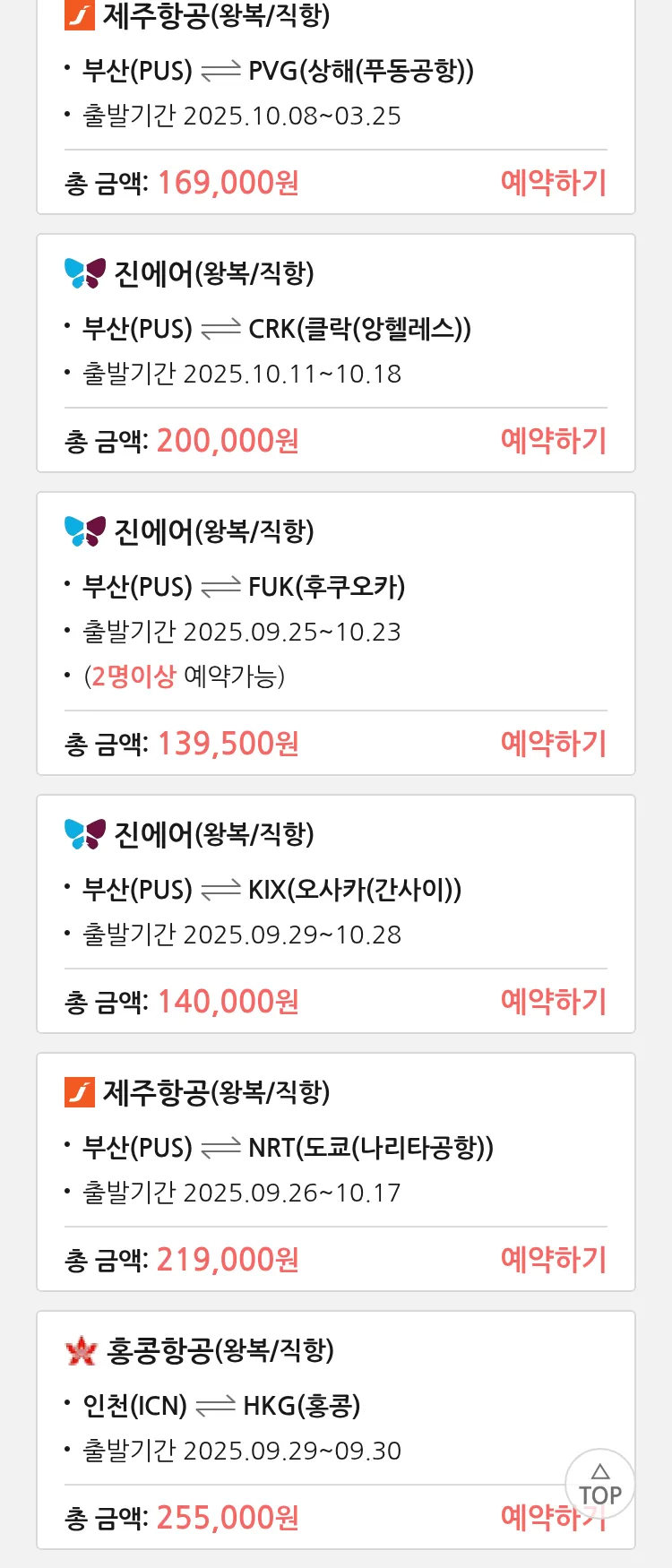 (9월 19일(금)) 땡처리 특가 항공권