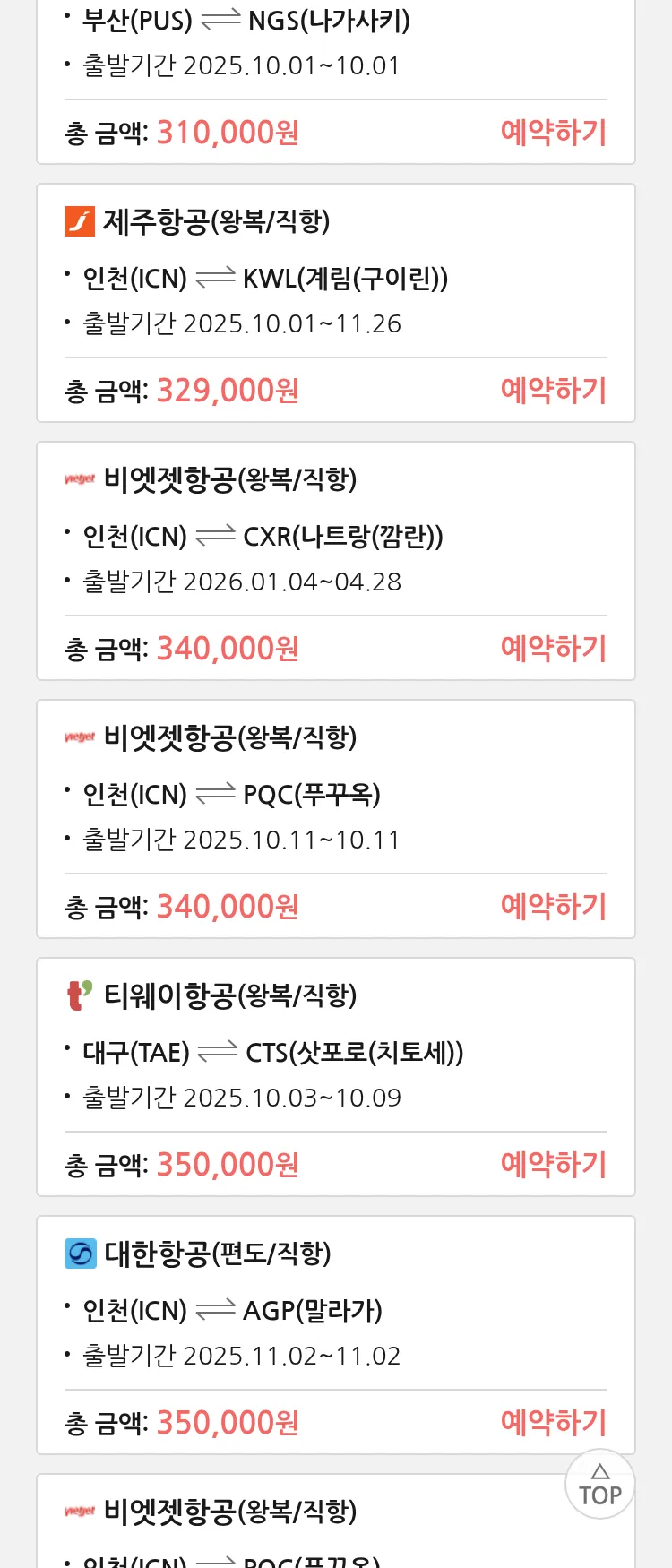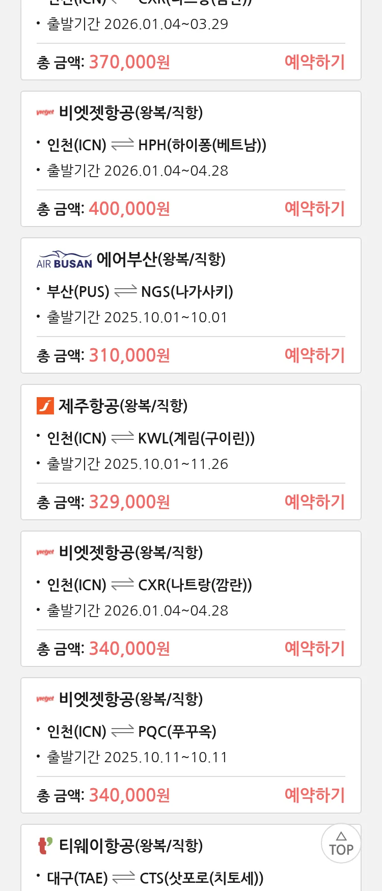 (9월 20일(토)) 땡처리 특가 항공권