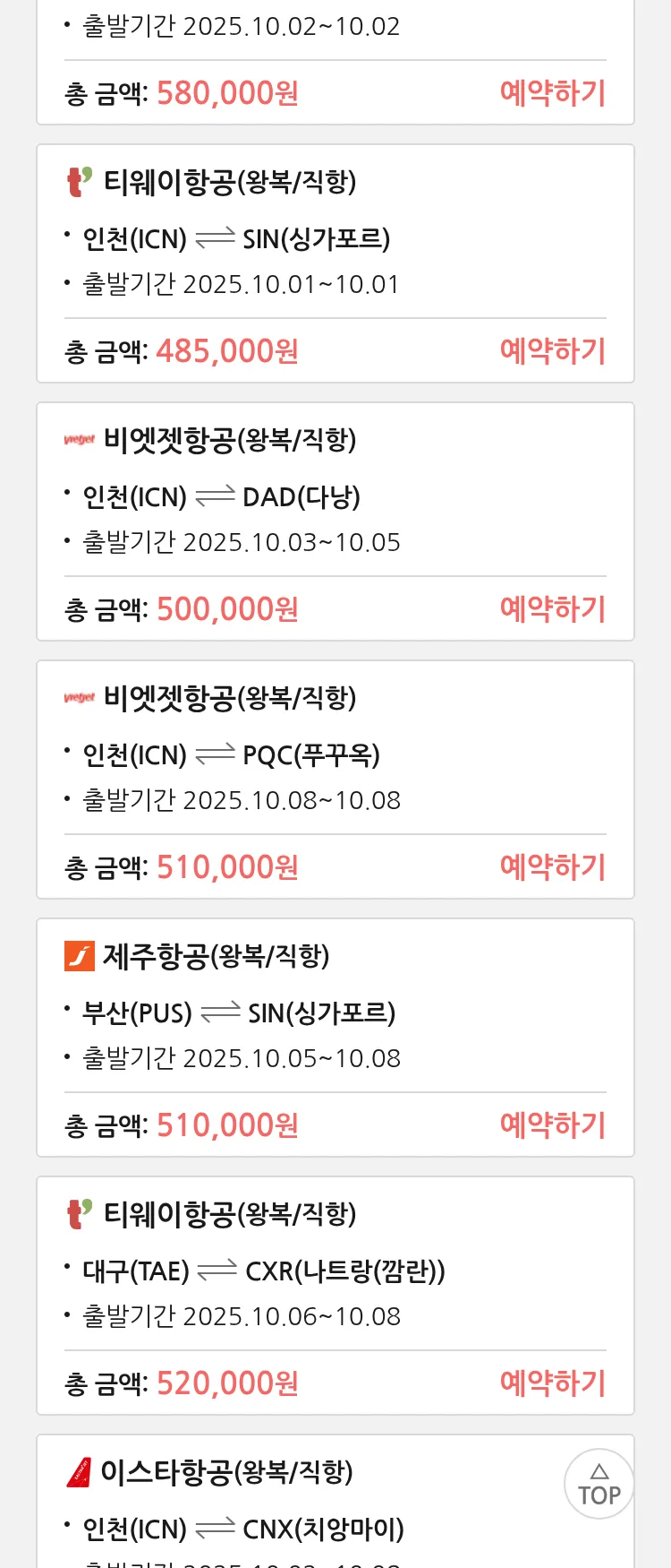 (9월 19일(금)) 모두투어 동남아 특가 항공권