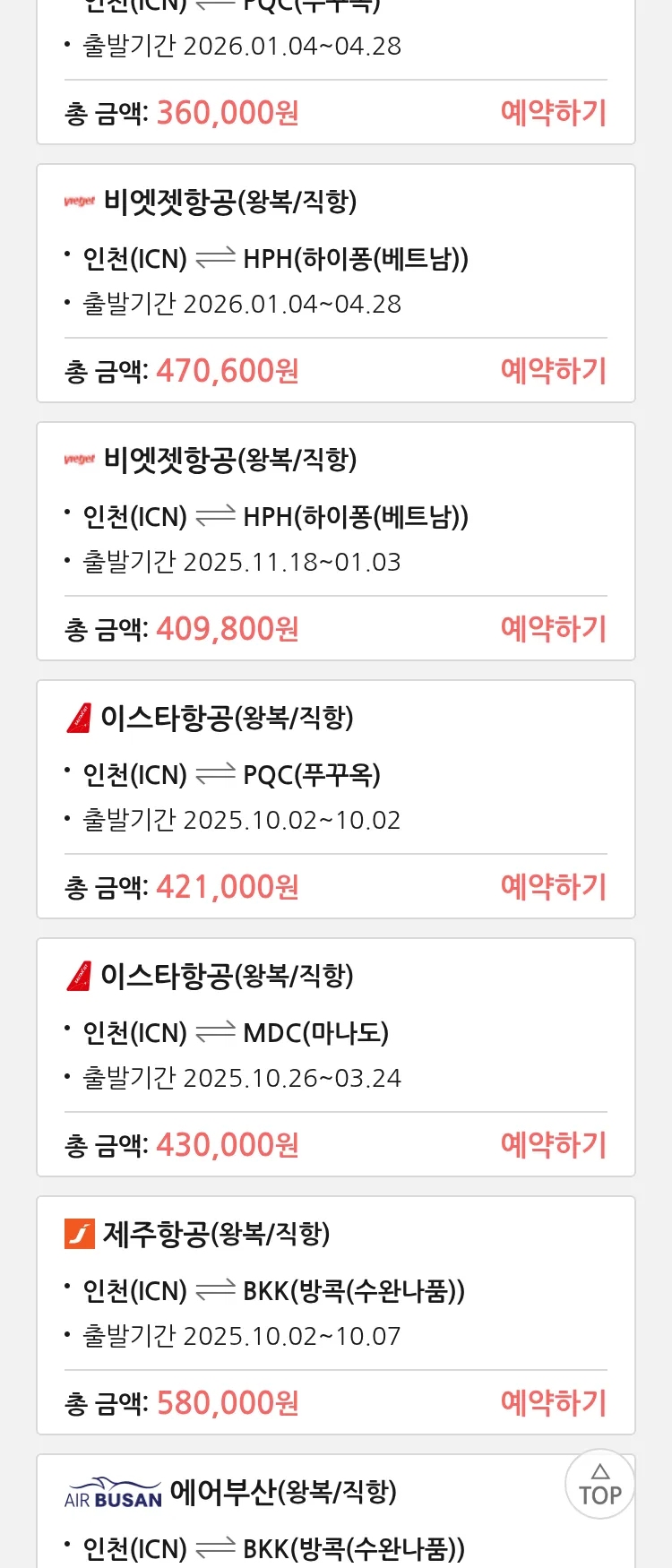 특가 항공권/패키지