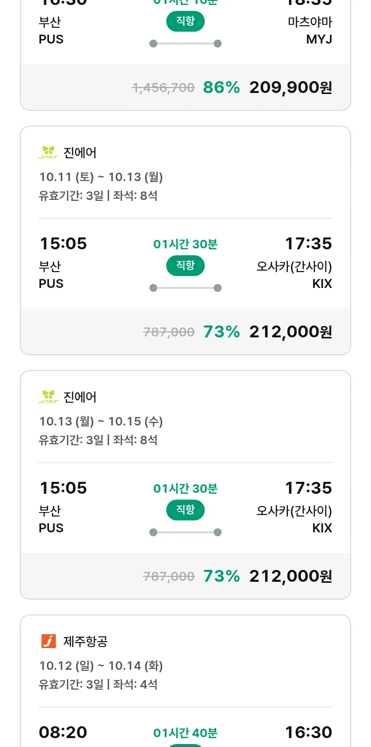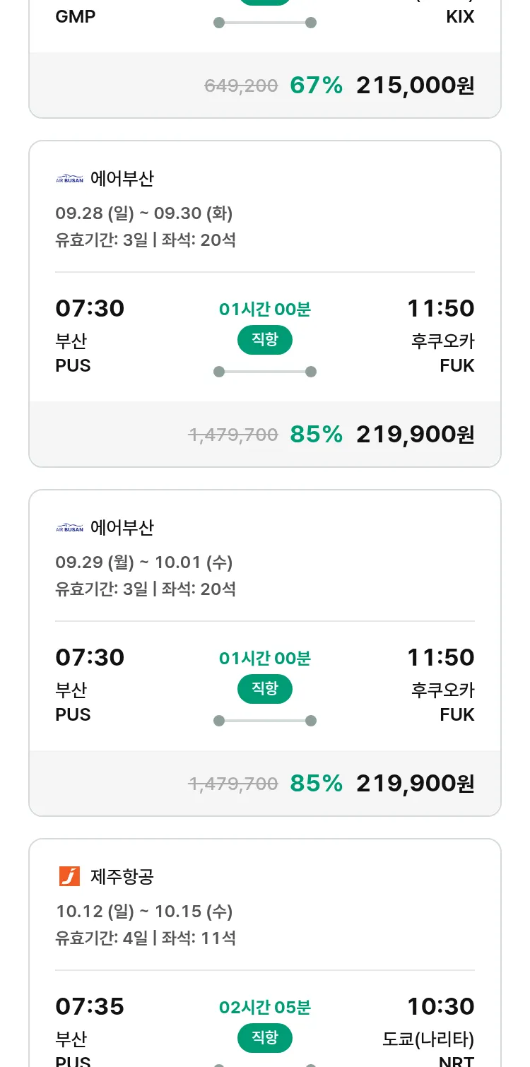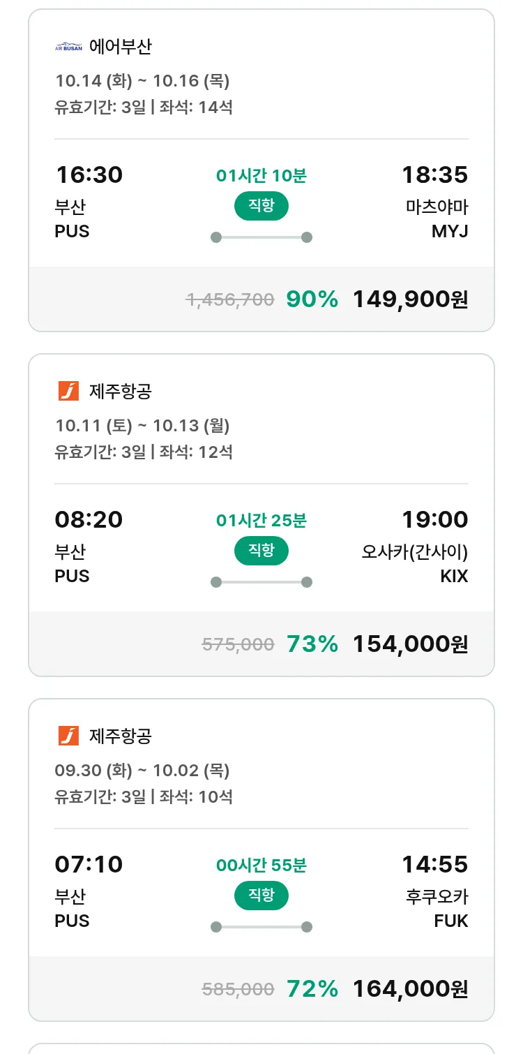 (9월 20일(토)) 땡처리 특가 항공권