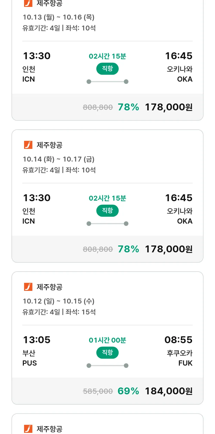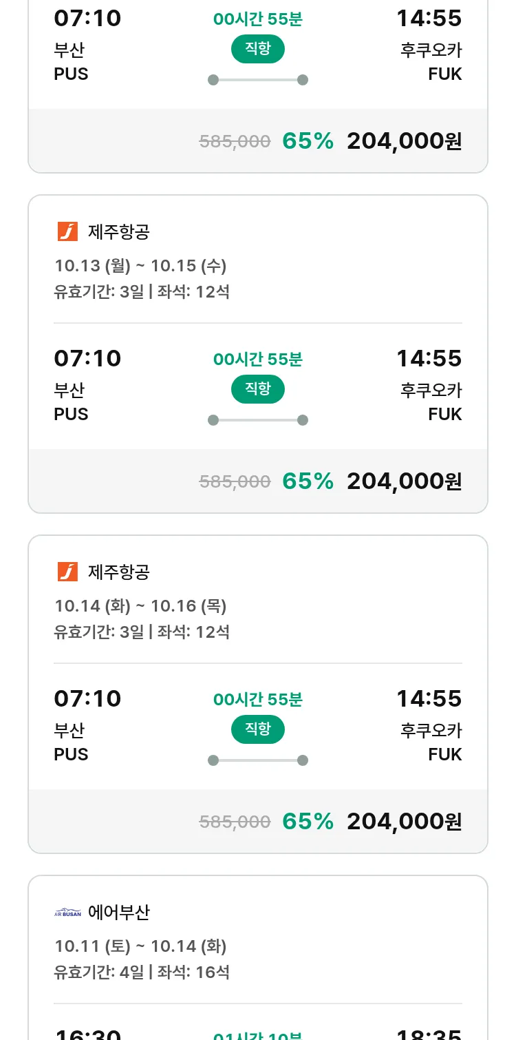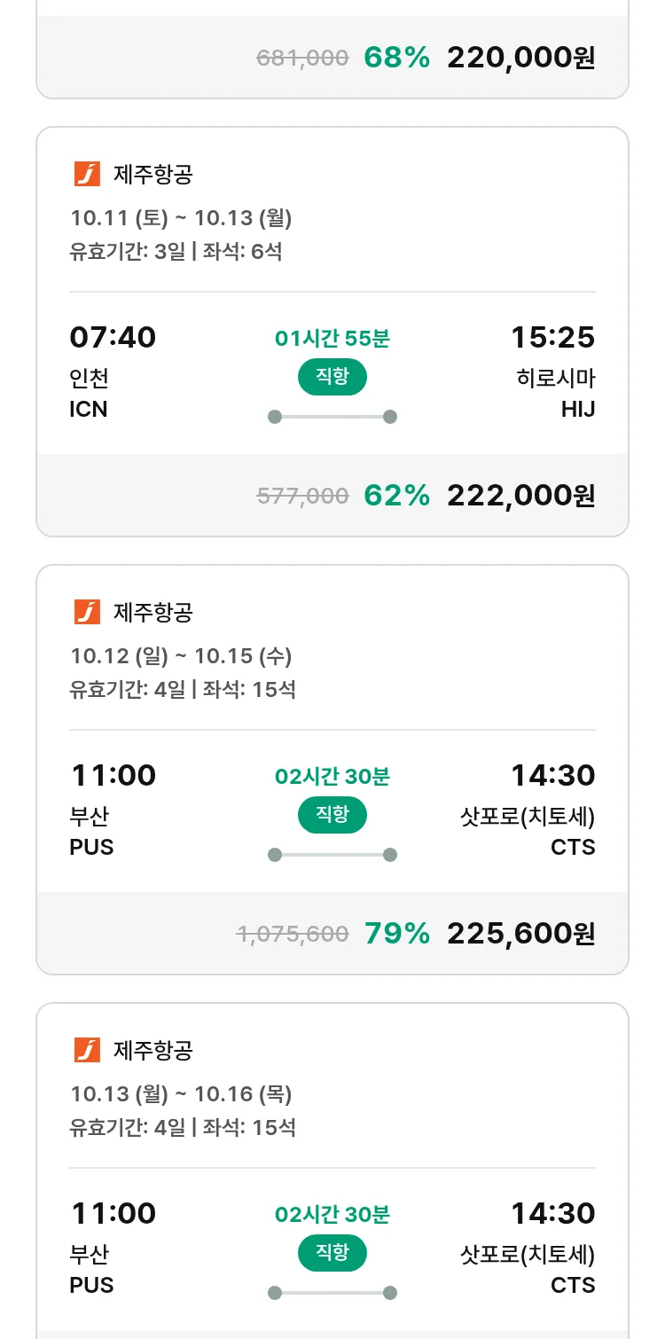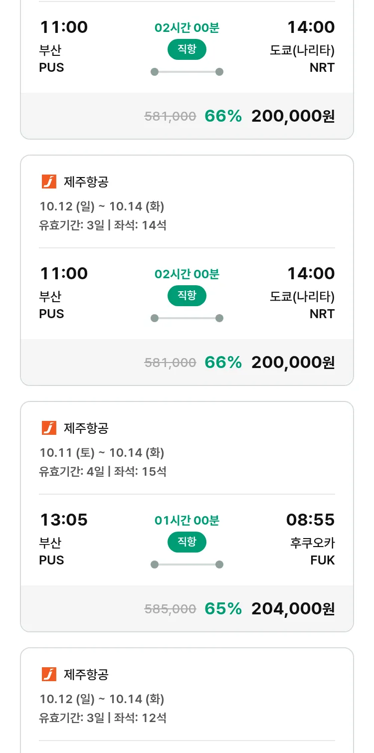(9월 20일(토)) 땡처리 특가 항공권