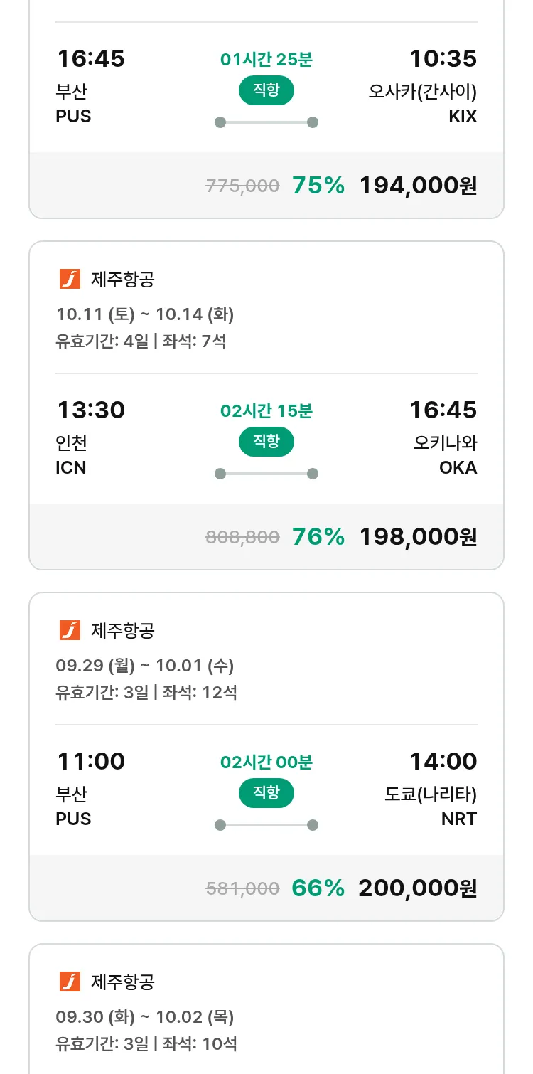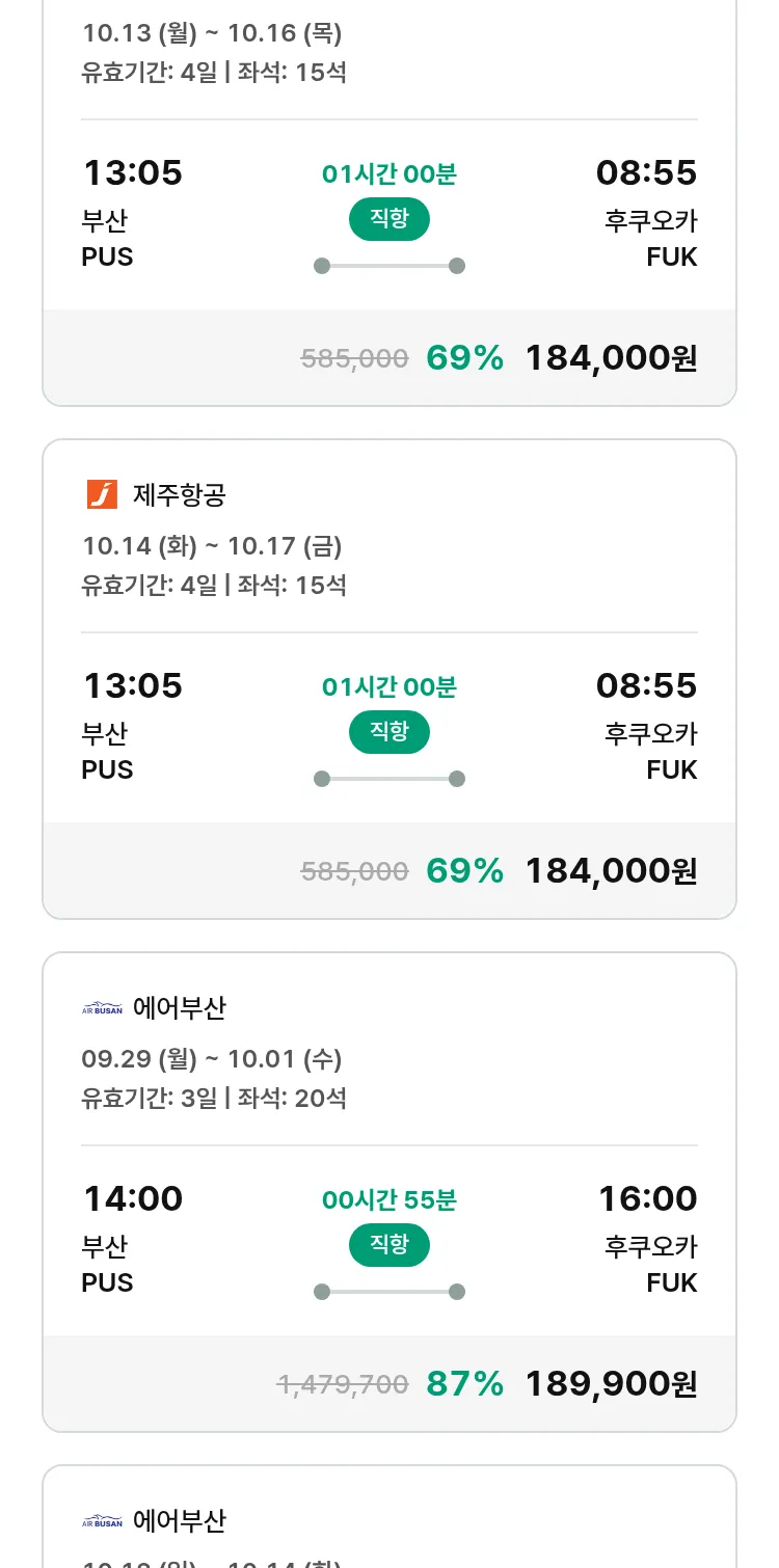 (9월 19일(금)) 땡처리 특가 항공권