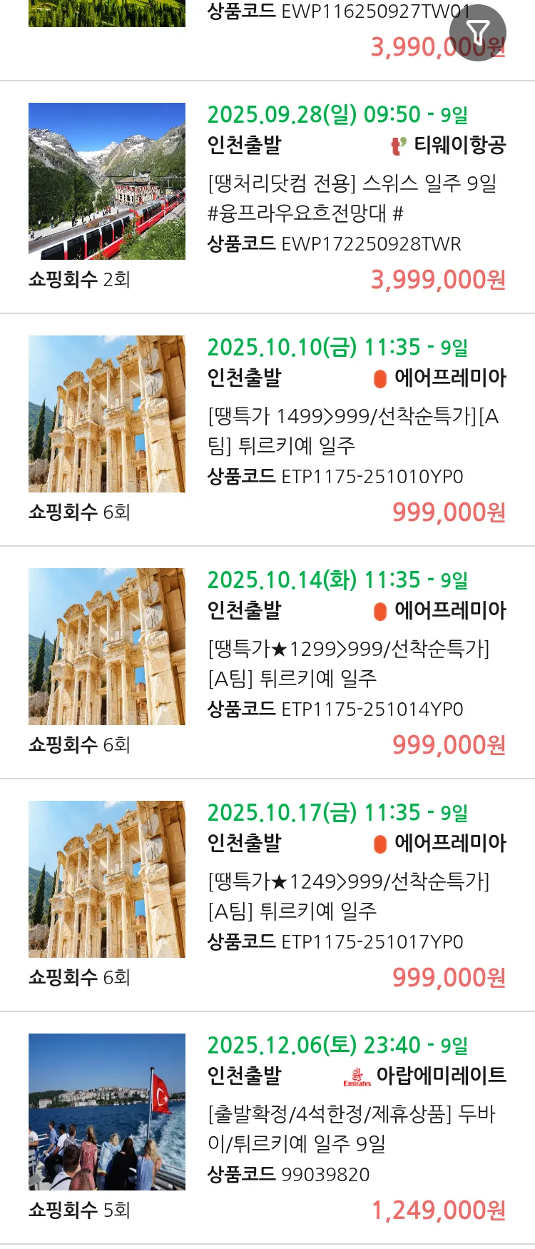 (9월 20일(토)) 땡처리 유럽 긴급 패키지