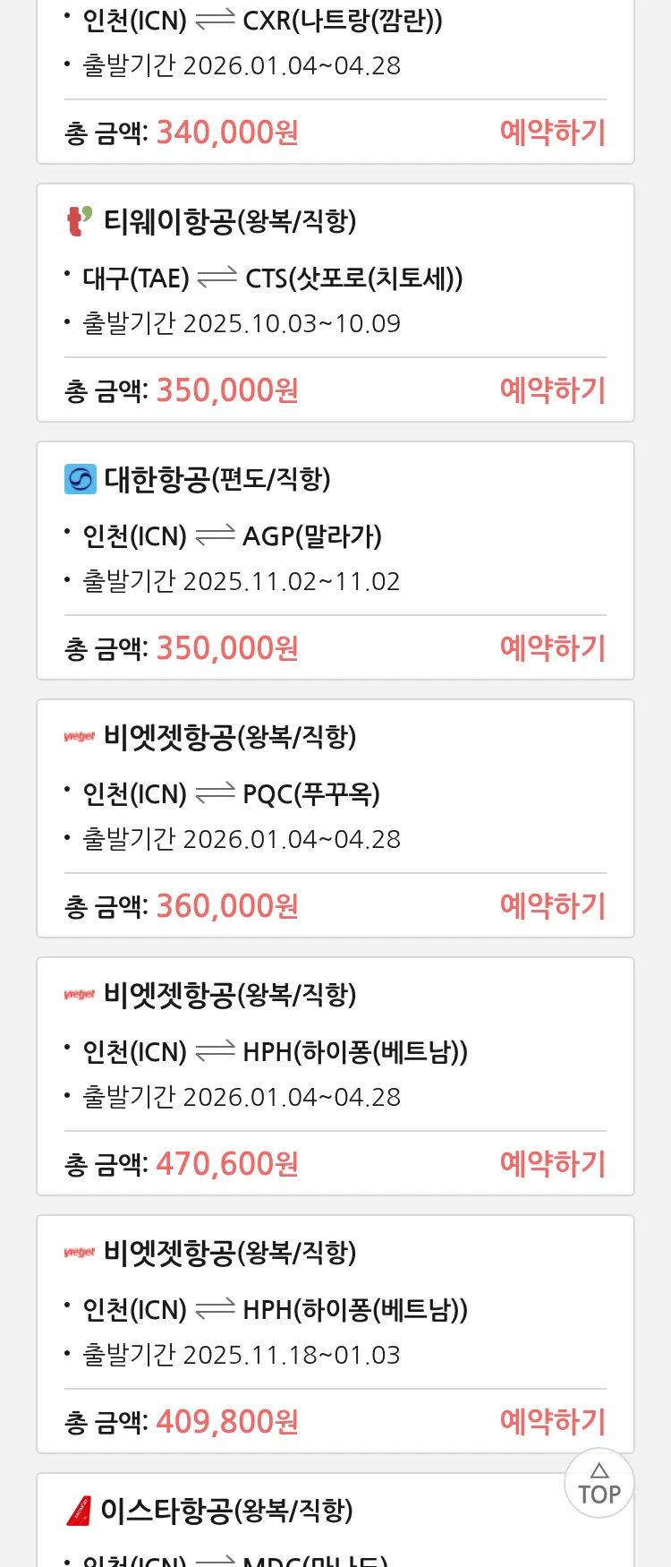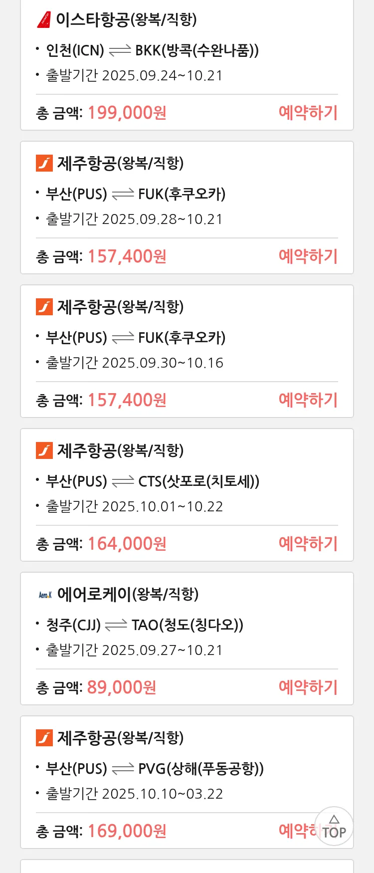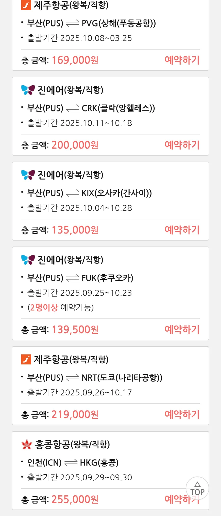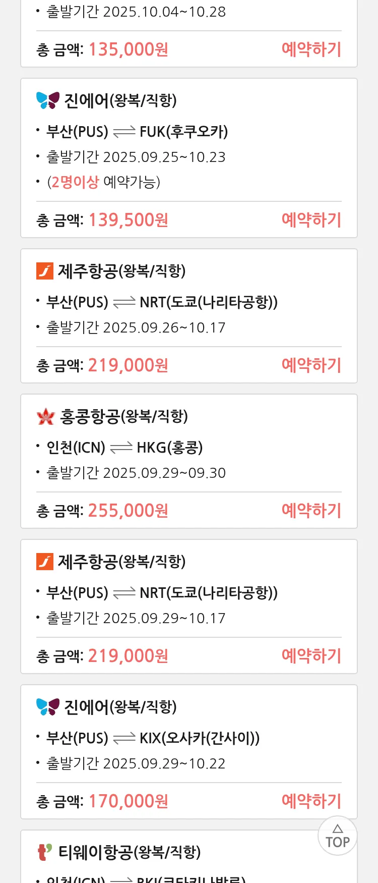 (9월 19일(금)) 땡처리 특가 항공권