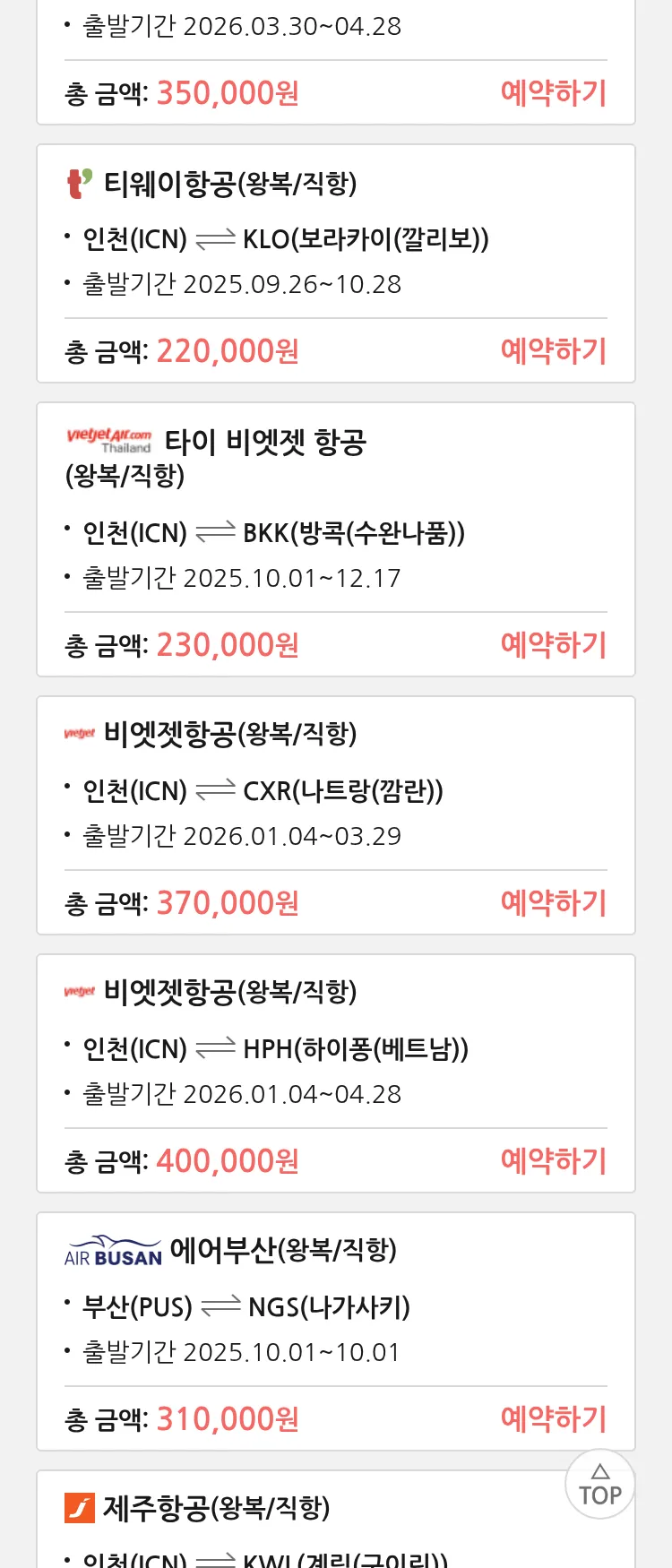 (9월 20일(토)) 땡처리 특가 항공권