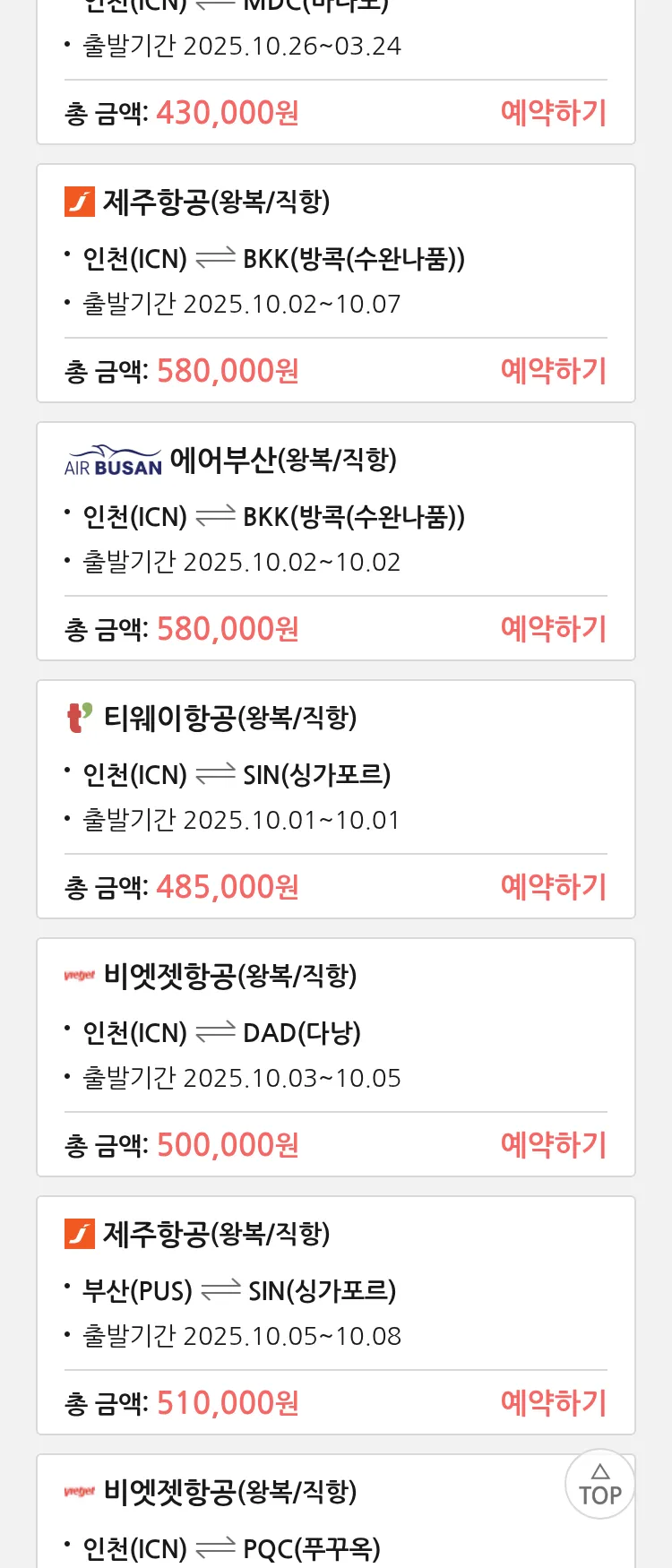 (9월 19일(금)) 모두투어 동남아 특가 항공권