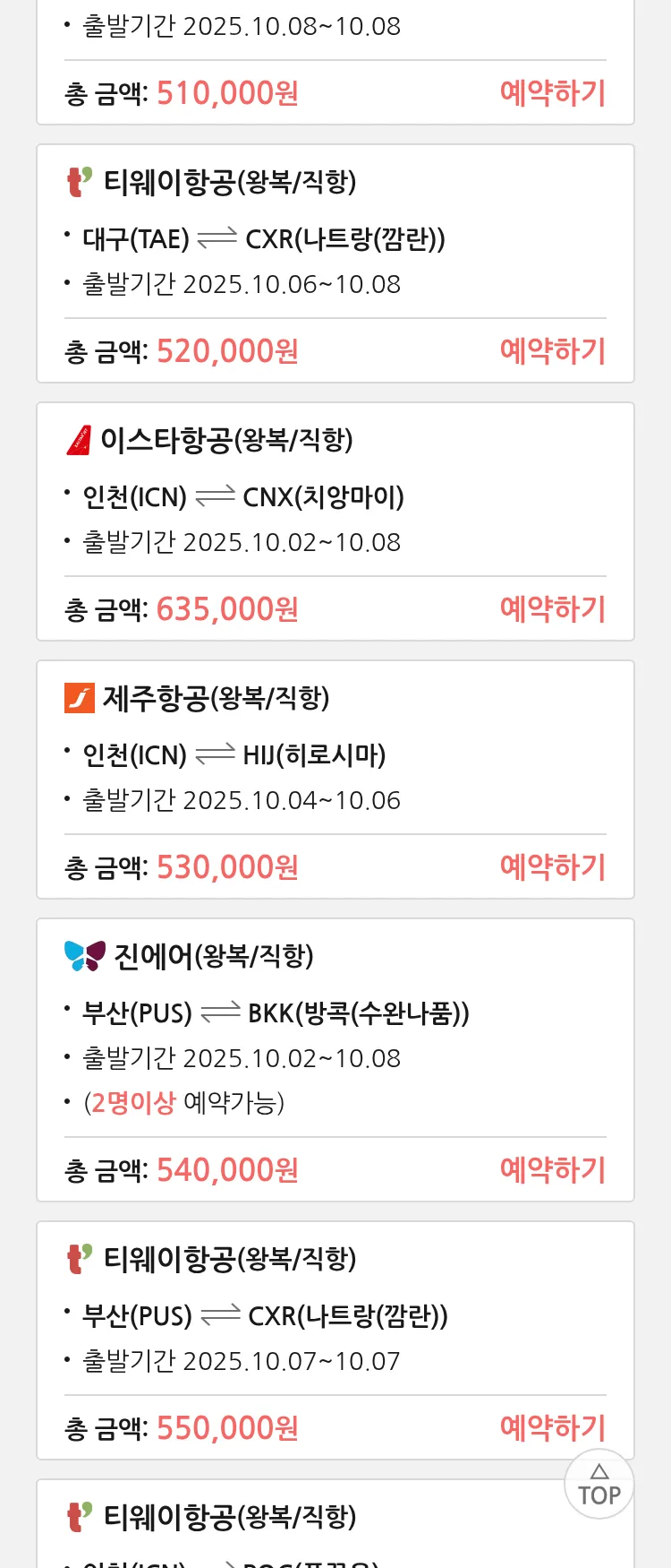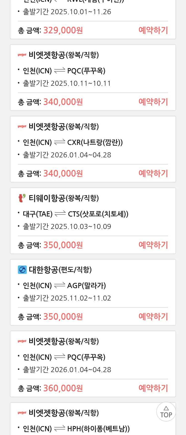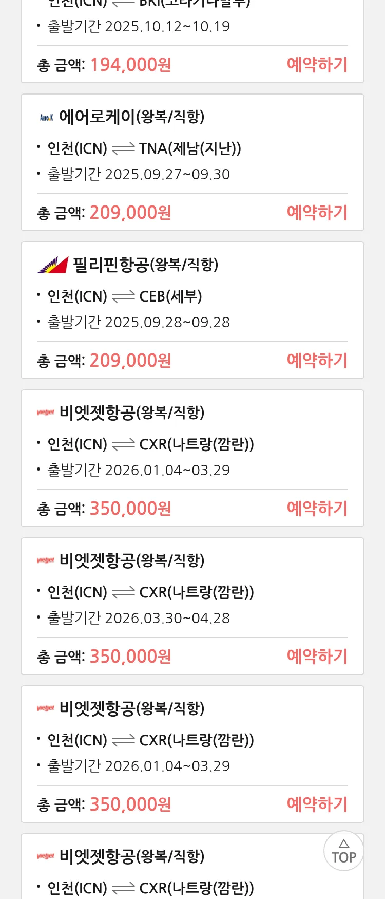 (9월 21일(일)) 땡처리 특가 항공권
