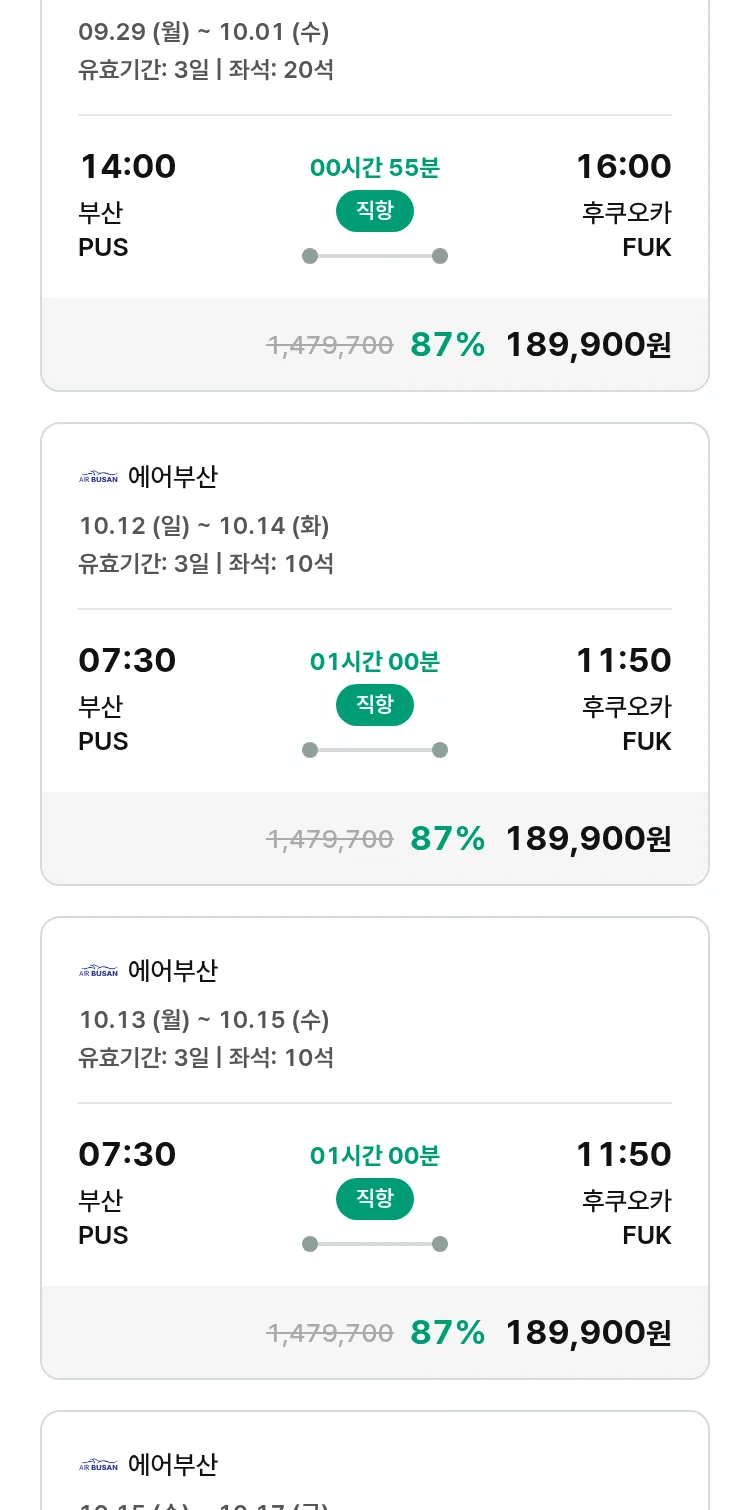(9월 20일(토)) 땡처리 99.9% 확정 패키지