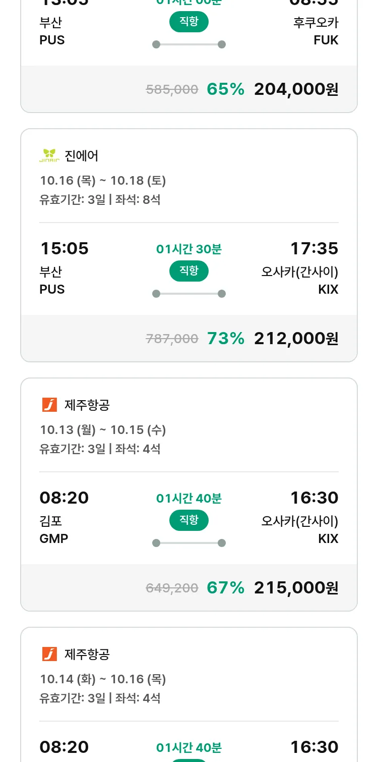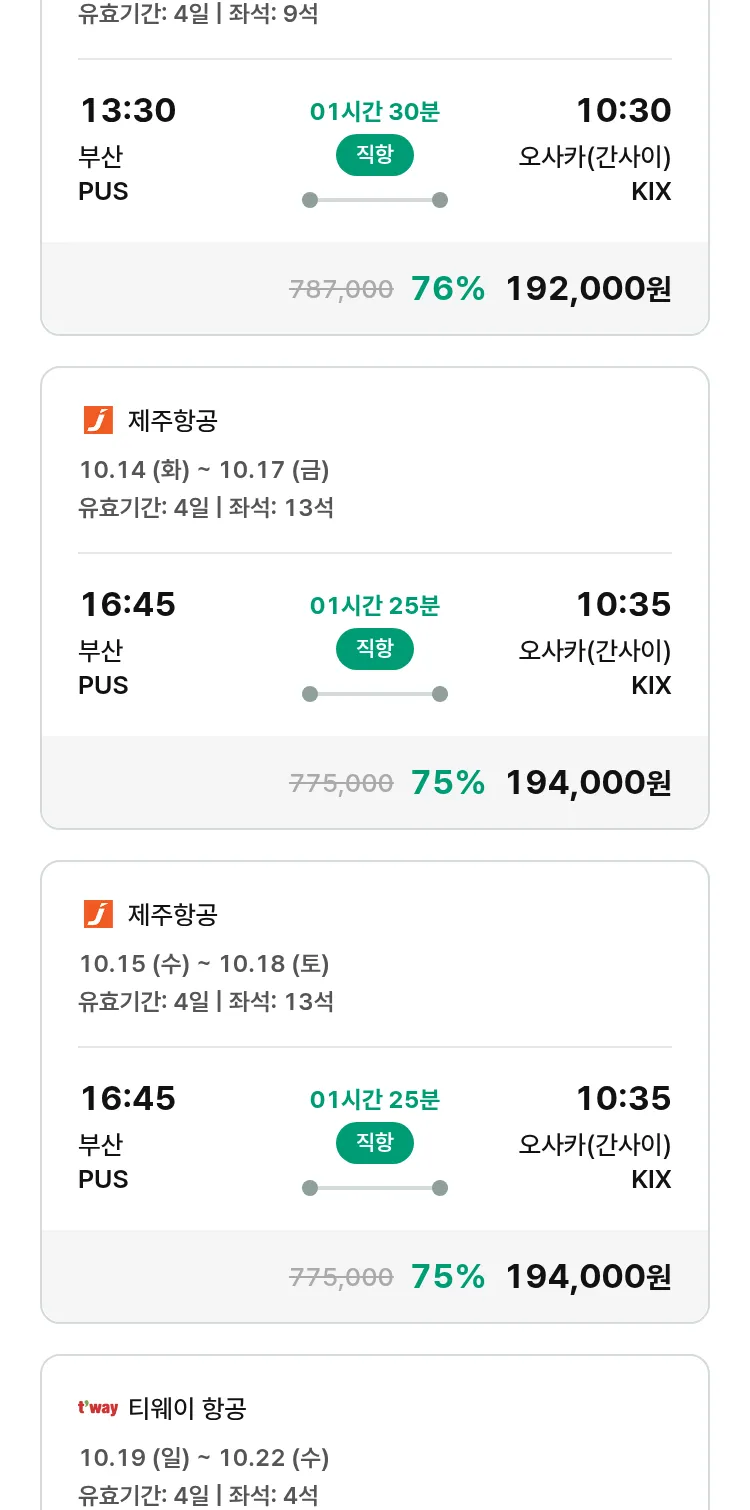 (9월 19일(금)) 모두투어 일본 특가 항공권
