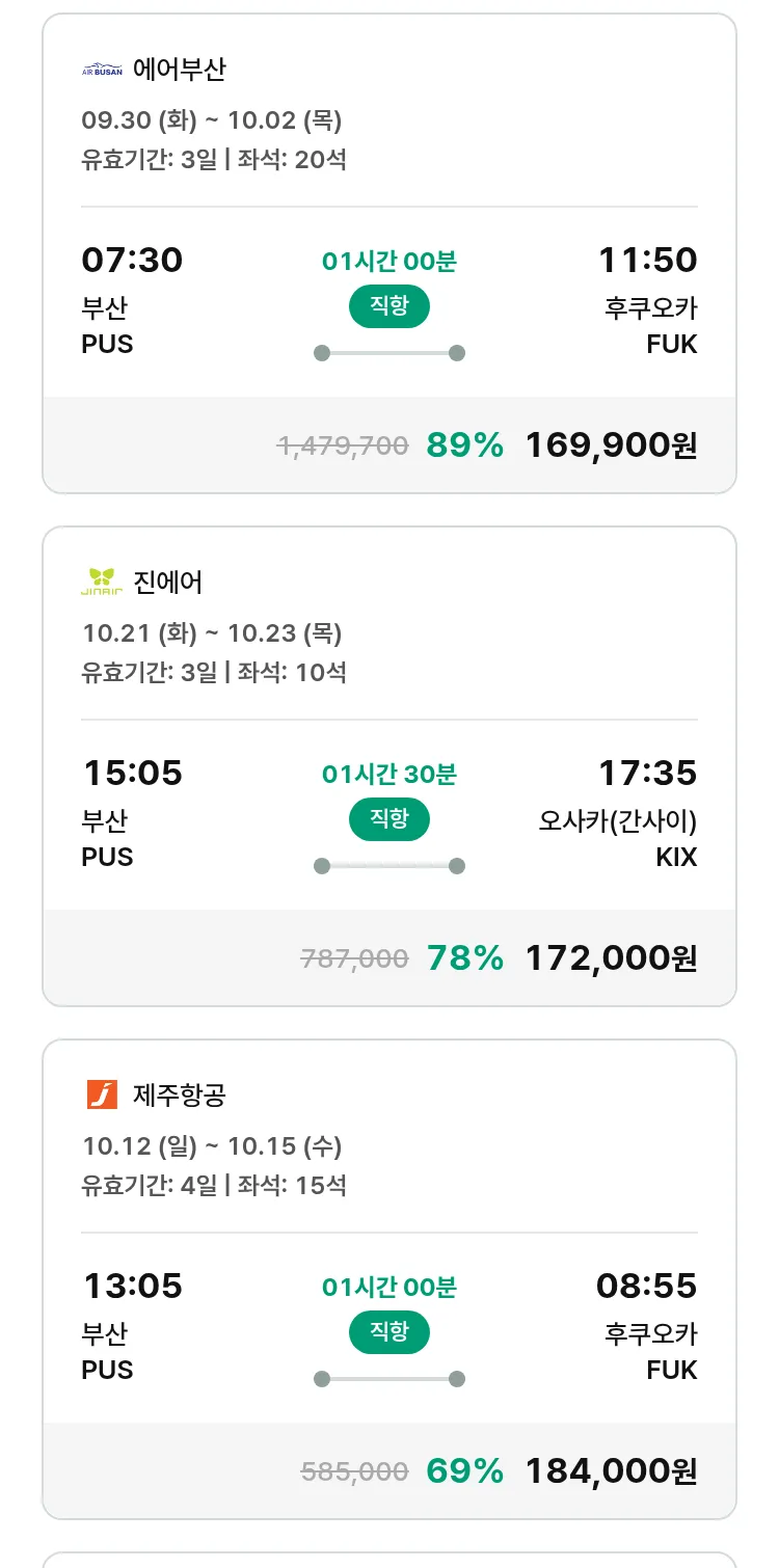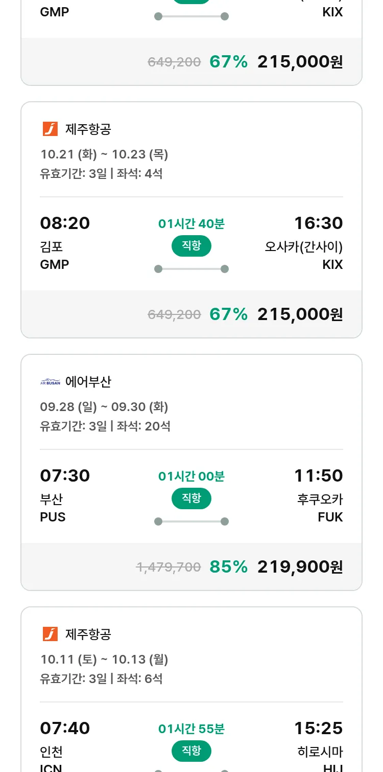 (9월 20일(토)) 모두투어 일본 특가 항공권