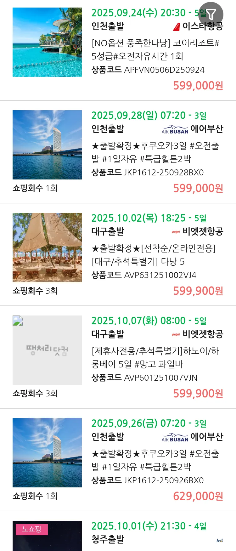 (9월 21일(일)) 땡처리 99.9% 확정 패키지