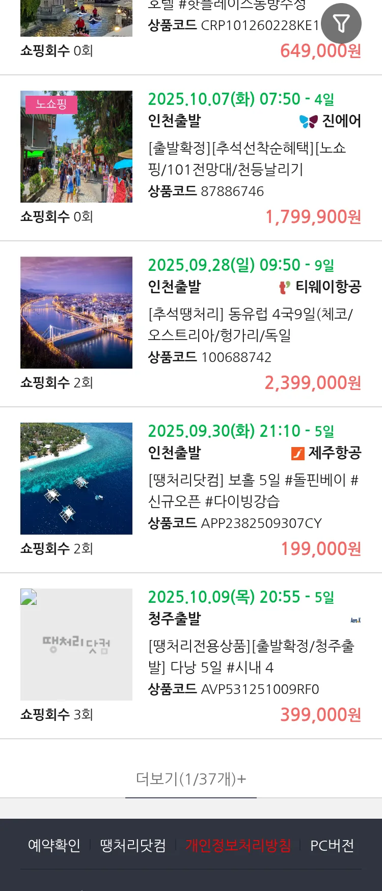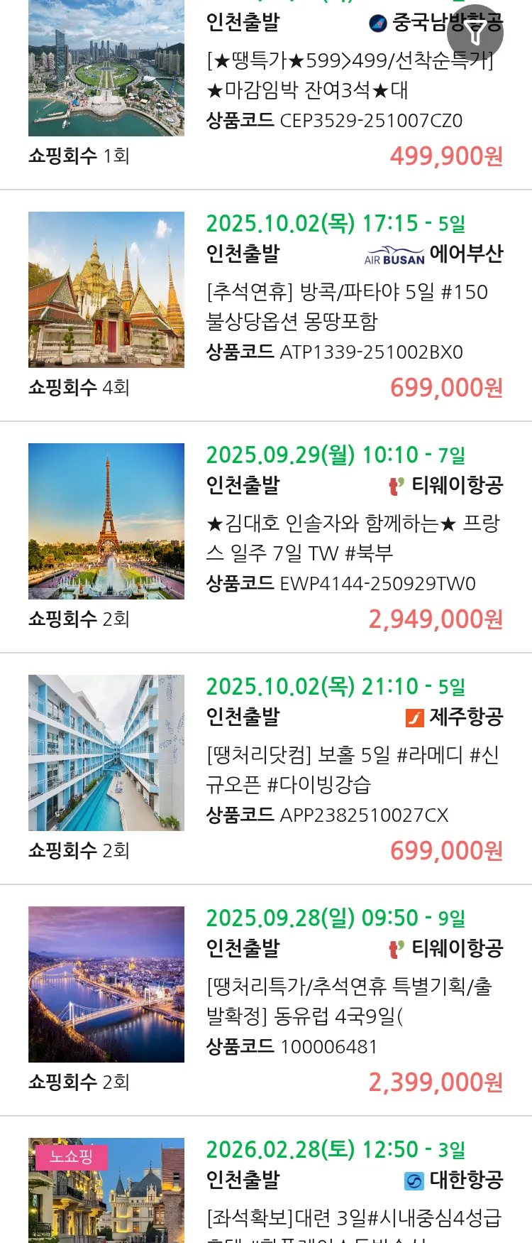 (9월 21일(일)) 땡처리 연휴 패키지 패키지