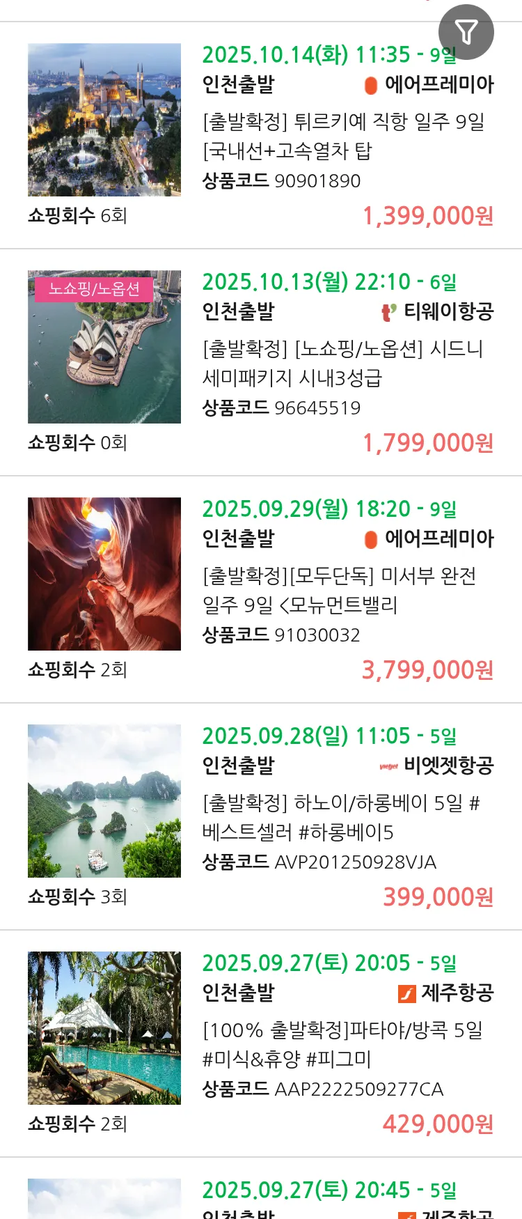 (9월 21일(일)) 땡처리 99.9% 확정 패키지