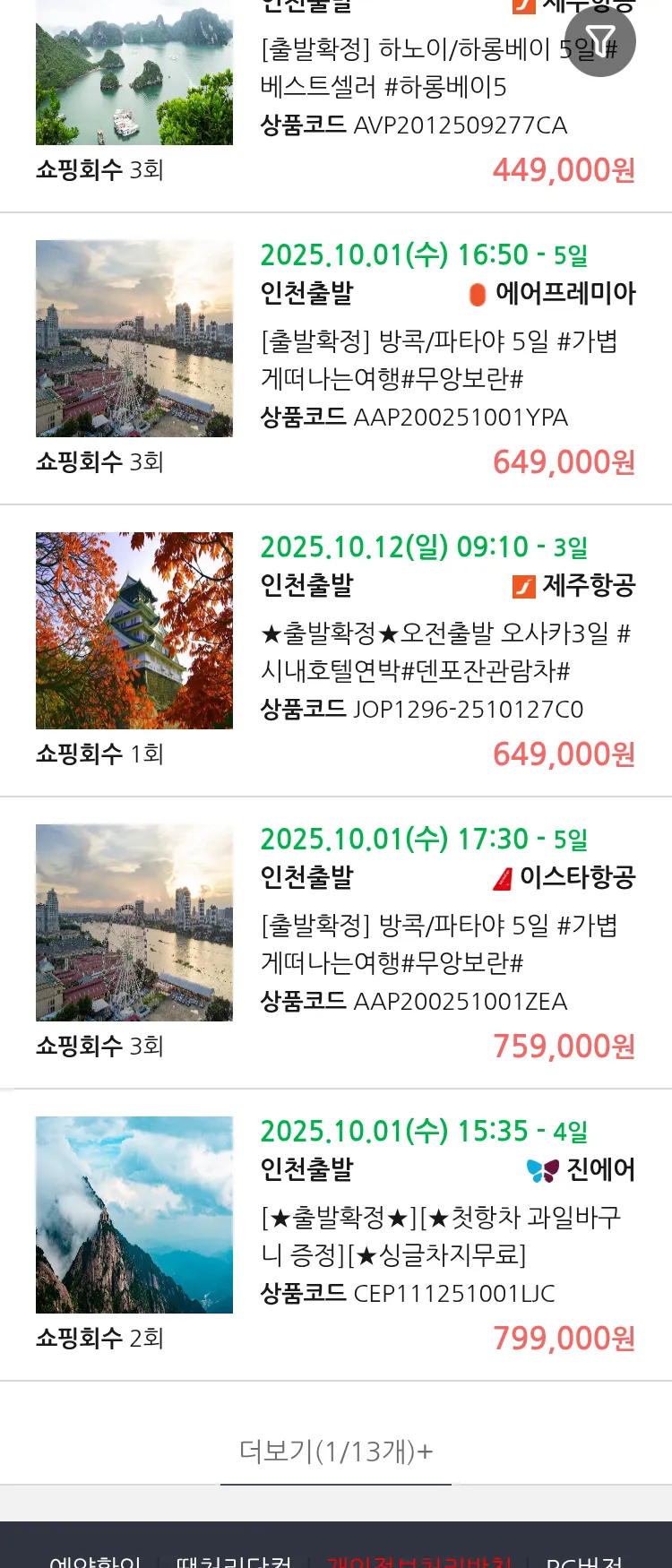 (9월 20일(토)) 땡처리 연휴 패키지 패키지