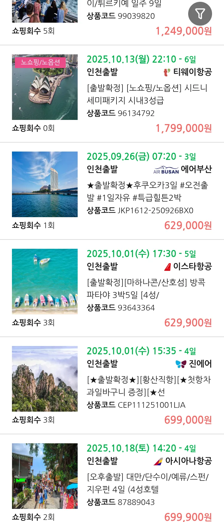 (9월 21일(일)) 땡처리 연휴 패키지 패키지
