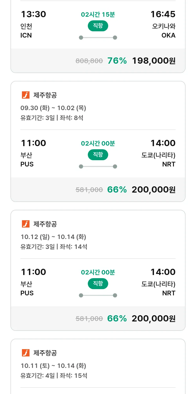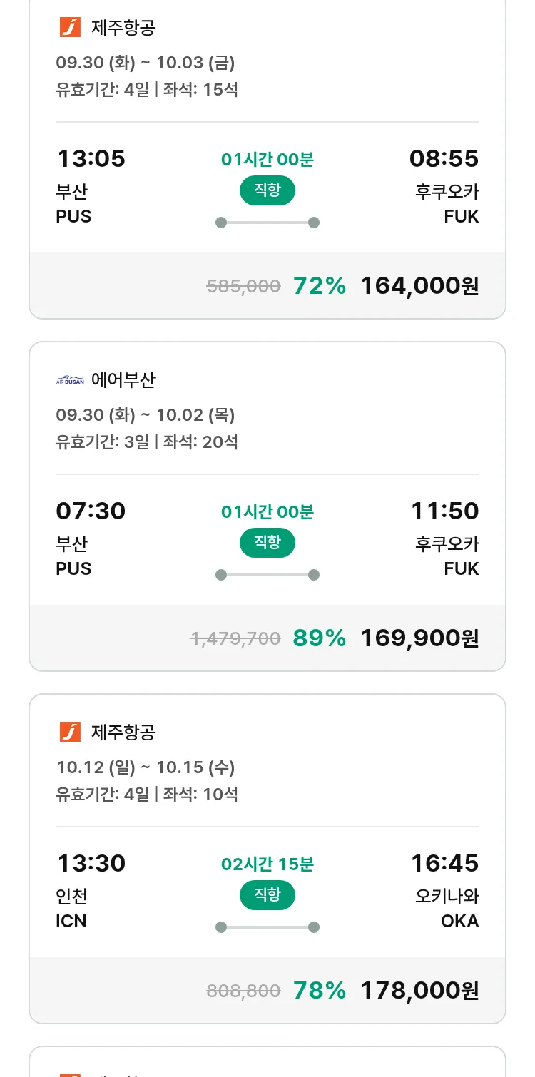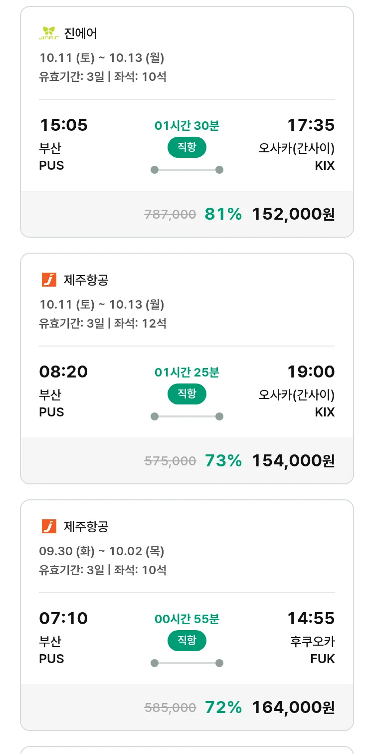 (9월 21일(일)) 모두투어 일본 특가 항공권