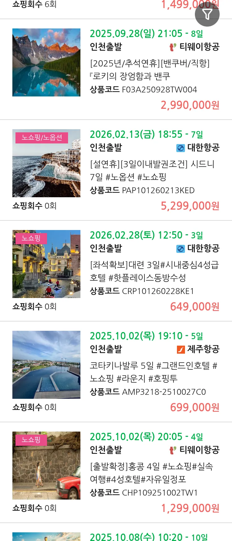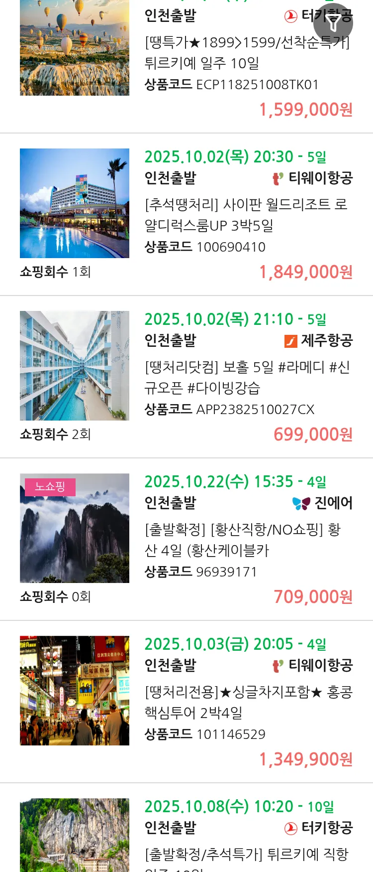 (9월 22일(월)) 땡처리 99.9% 확정 패키지