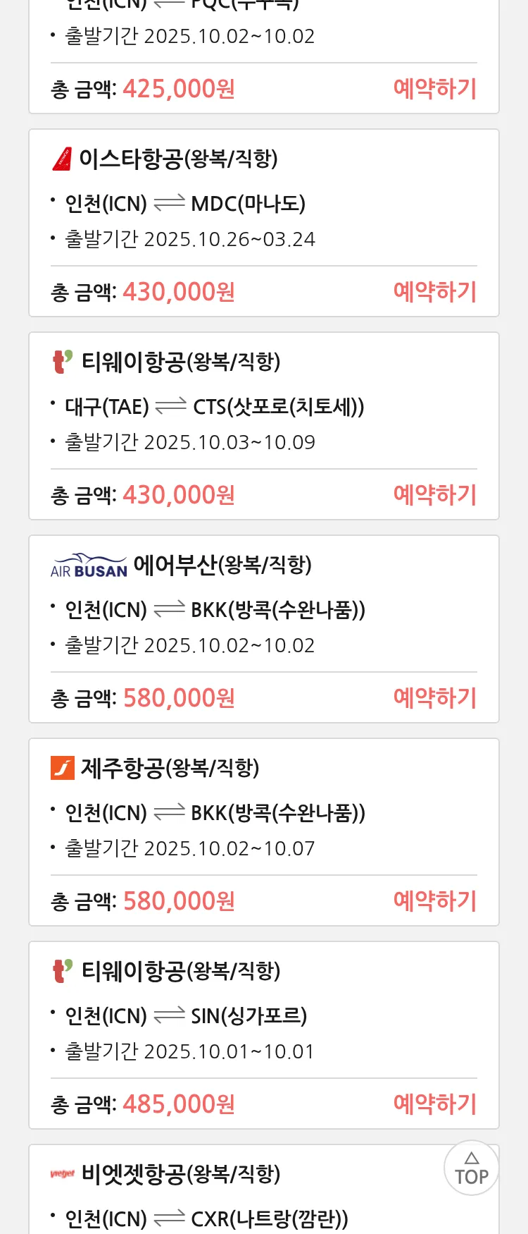 (9월 22일(월)) 모두투어 동남아 특가 항공권