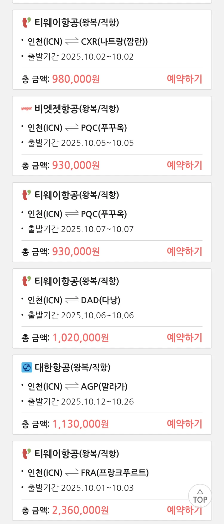 (9월 23일(화)) 모두투어 동남아 특가 항공권