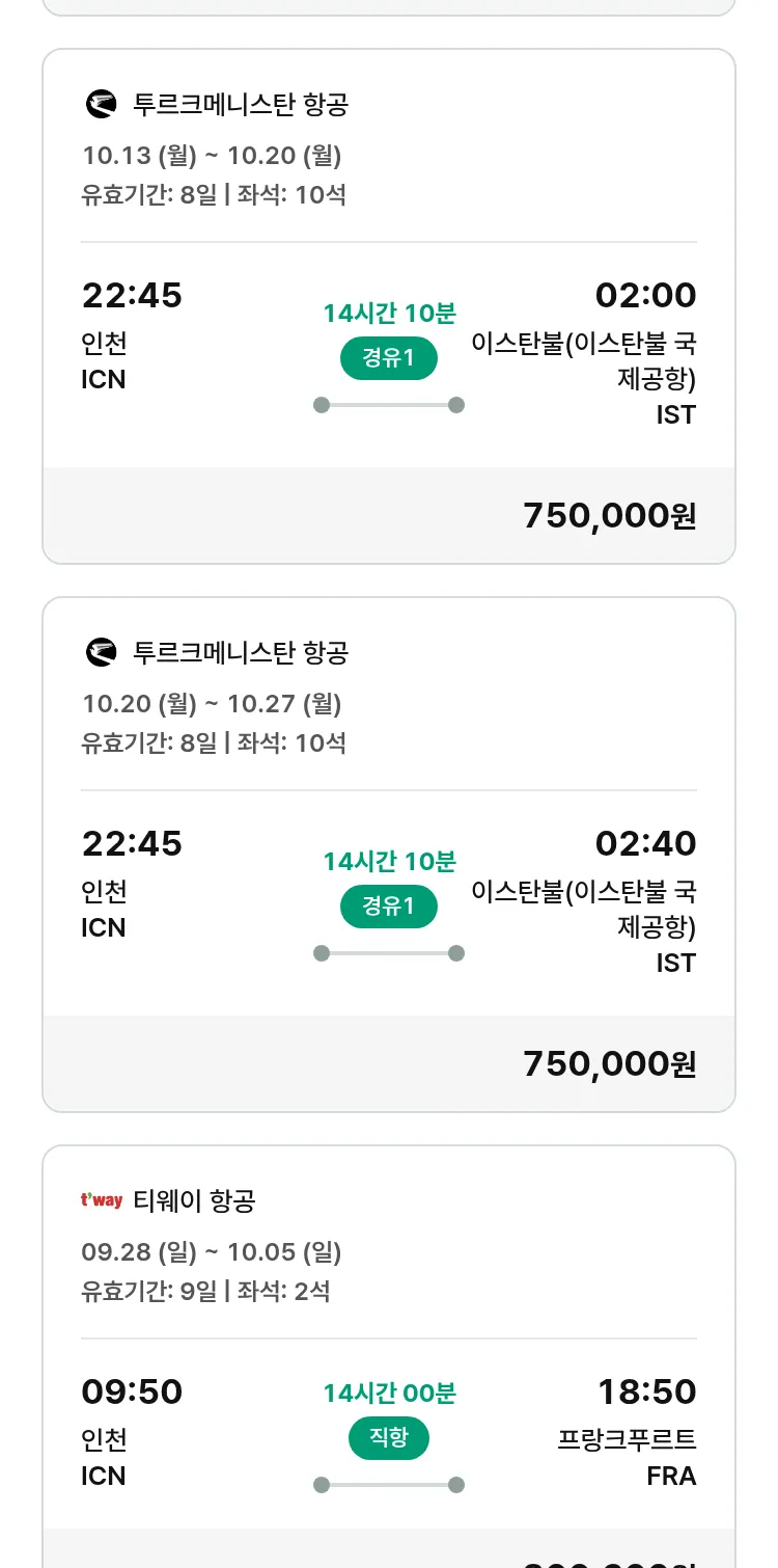 (9월 22일(월)) 모두투어 유럽 특가 항공권