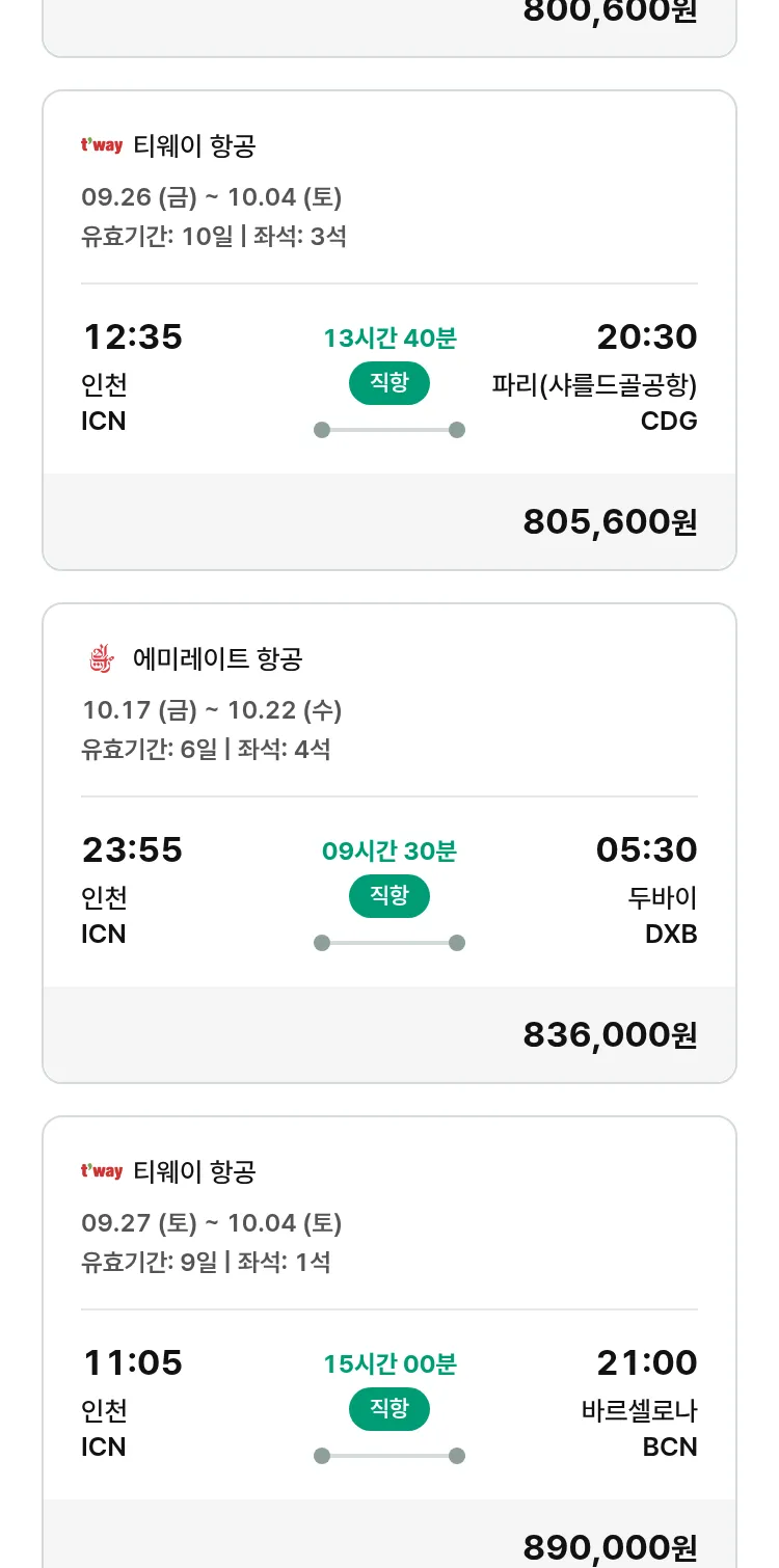(9월 22일(월)) 땡처리 유럽 긴급 패키지