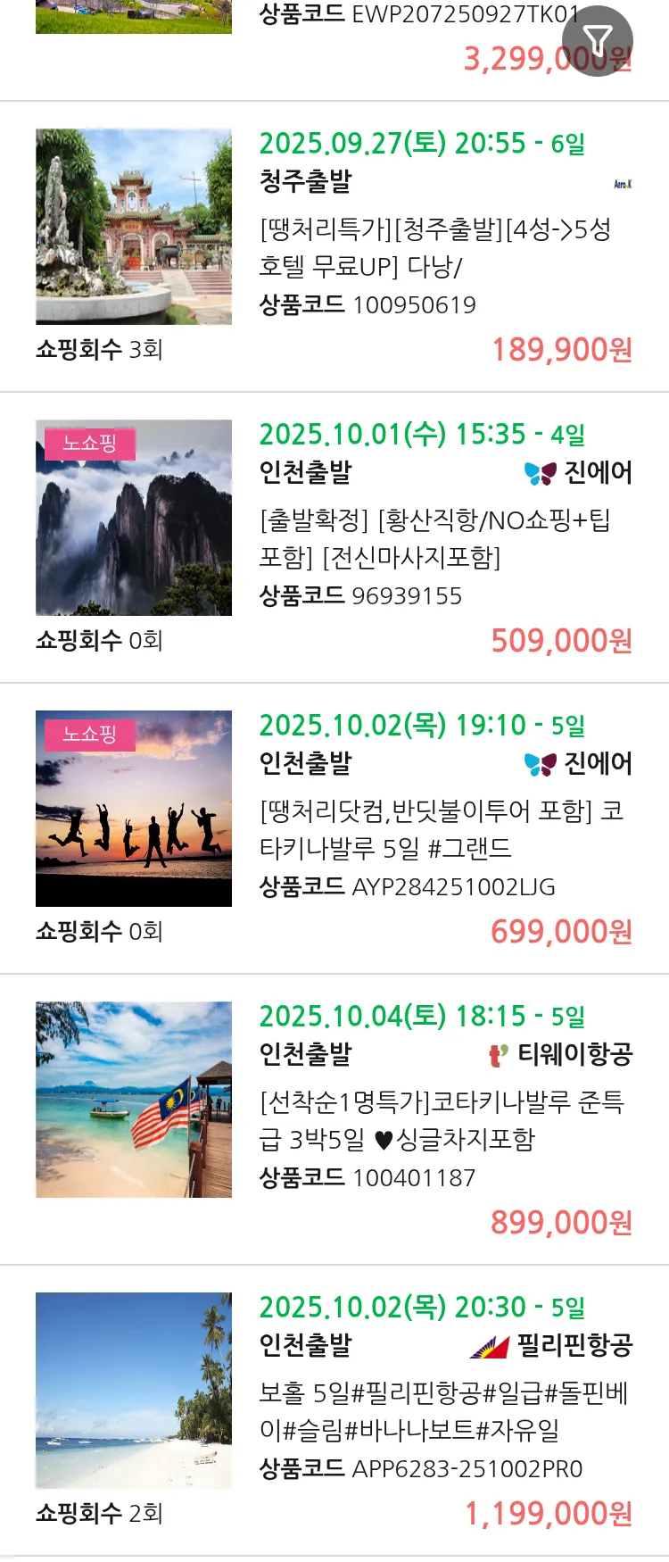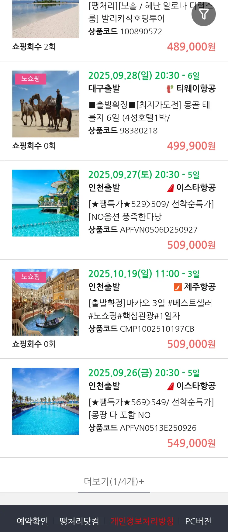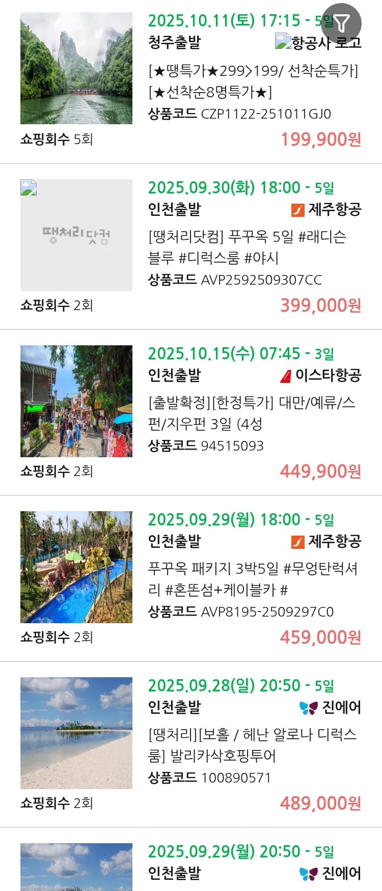 (9월 22일(월)) 땡처리 99.9% 확정 패키지