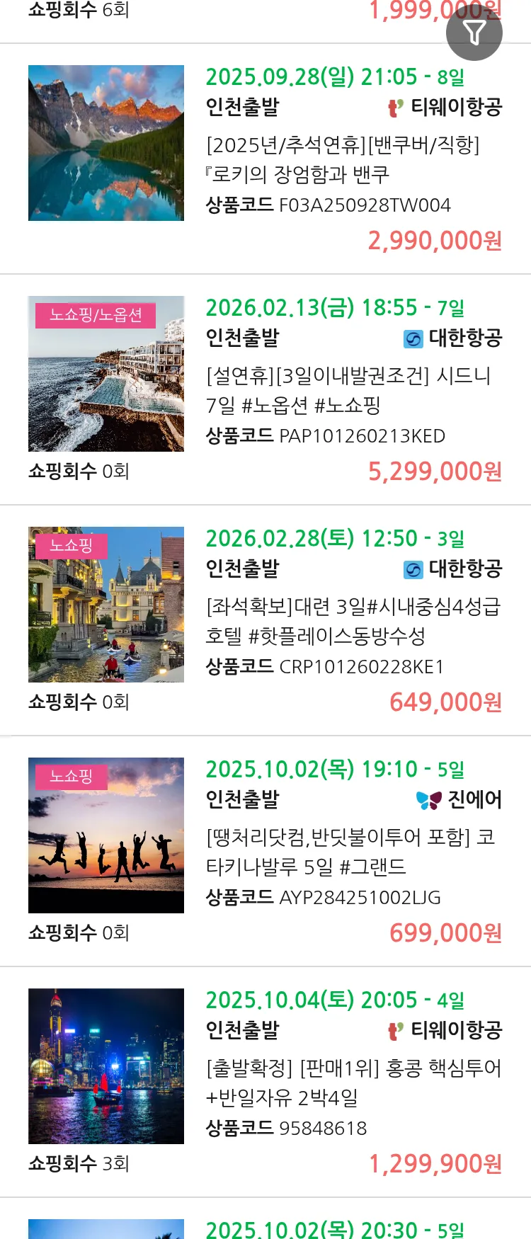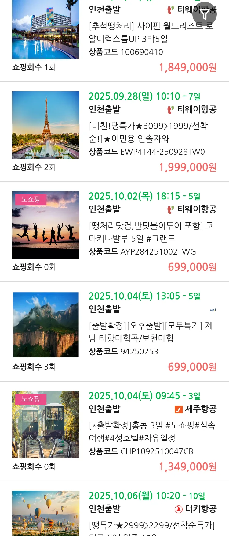 (9월 24일(수)) 땡처리 99.9% 확정 패키지