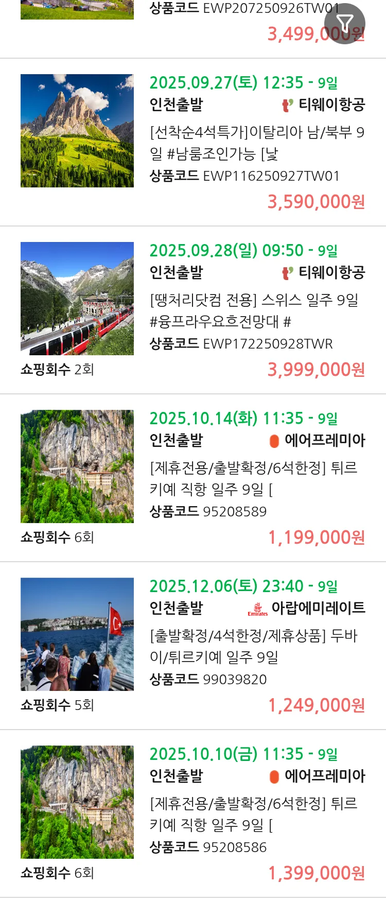 (9월 24일(수)) 땡처리 유럽 긴급 패키지