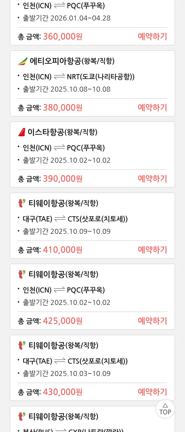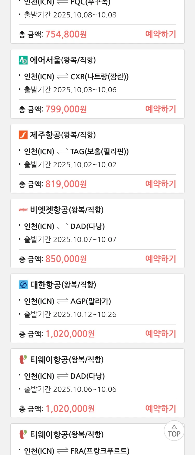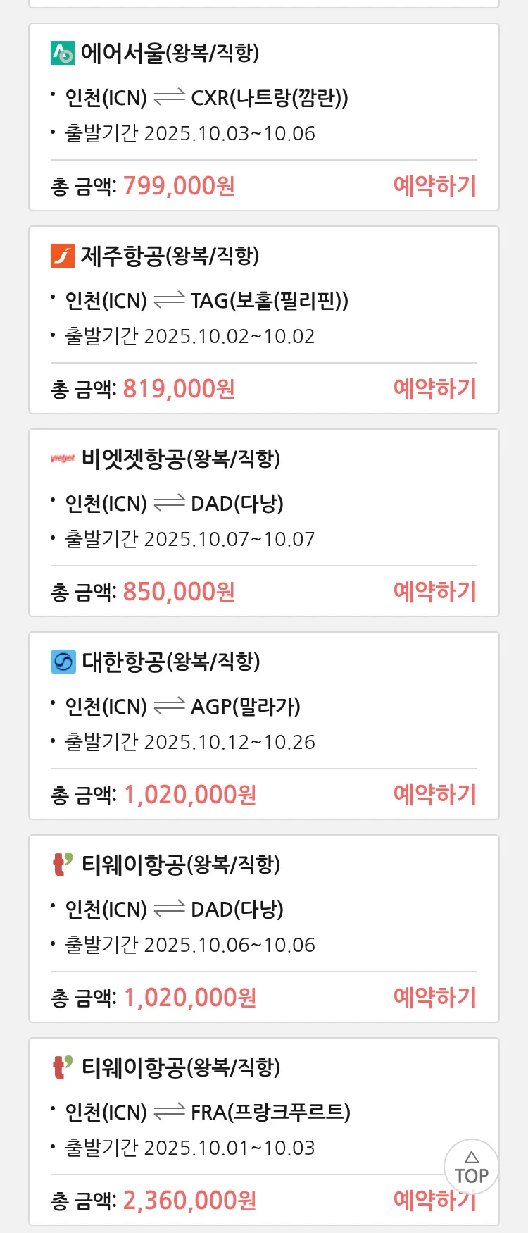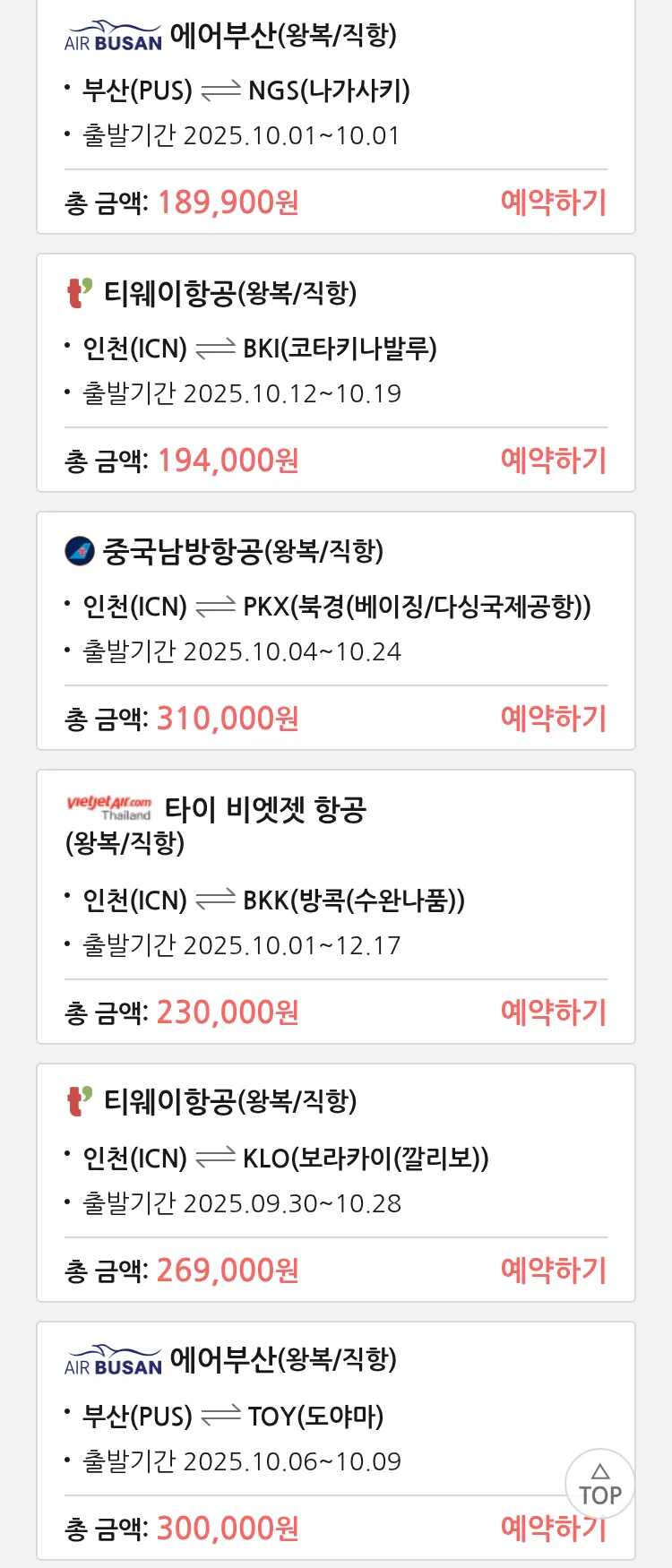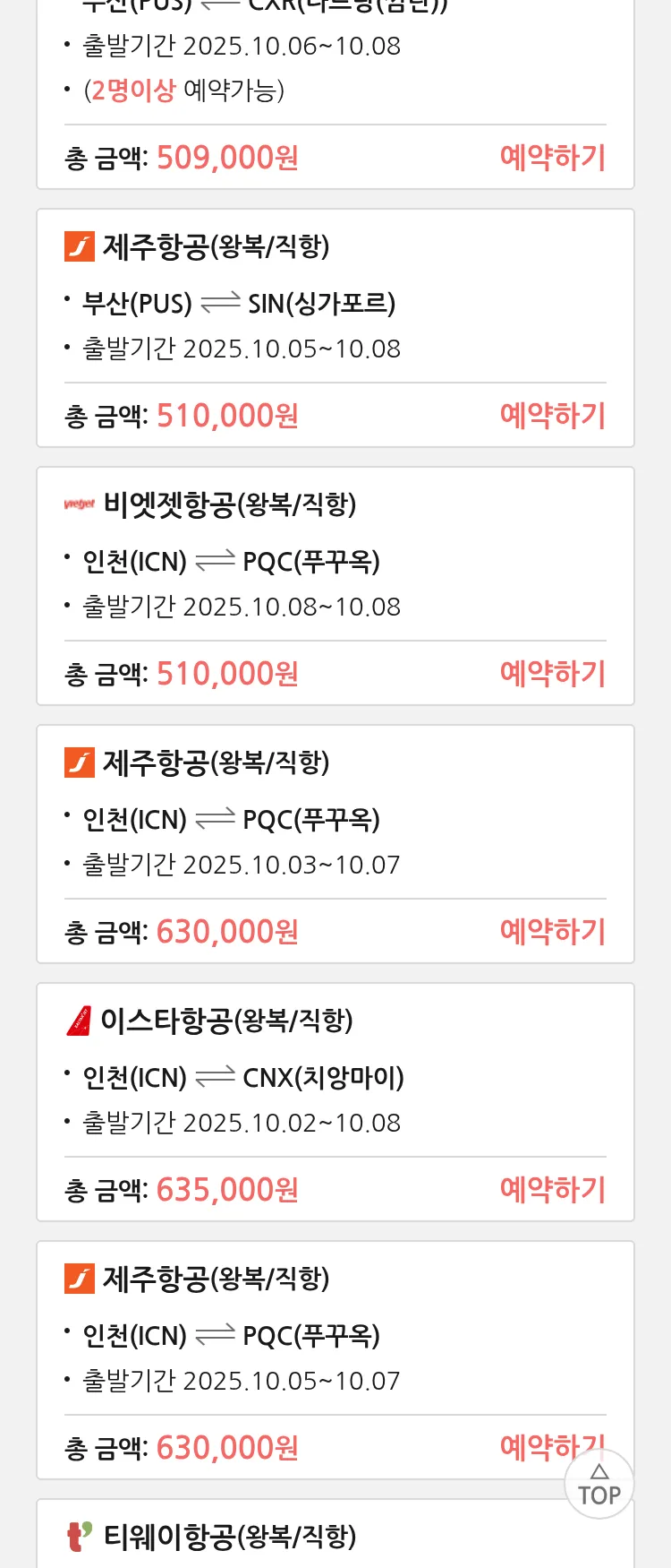 (9월 23일(화)) 땡처리 특가 항공권