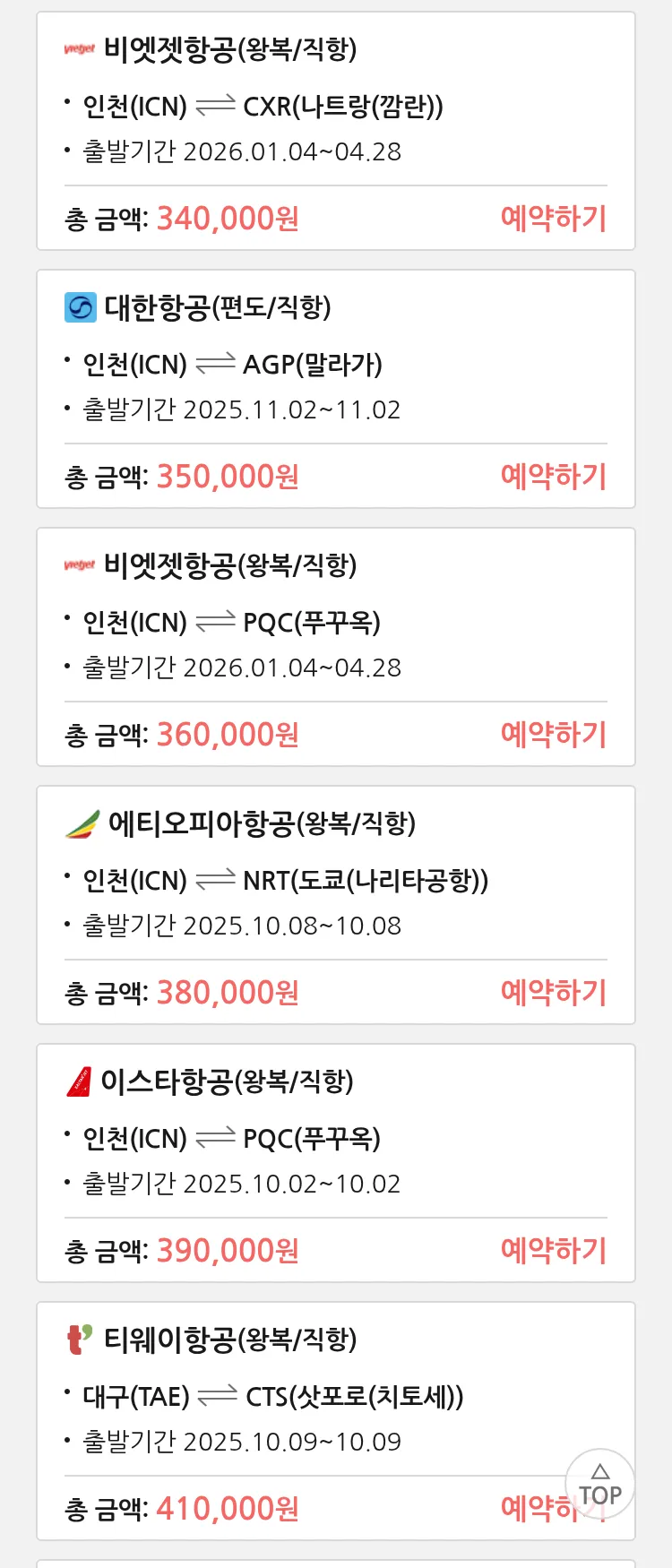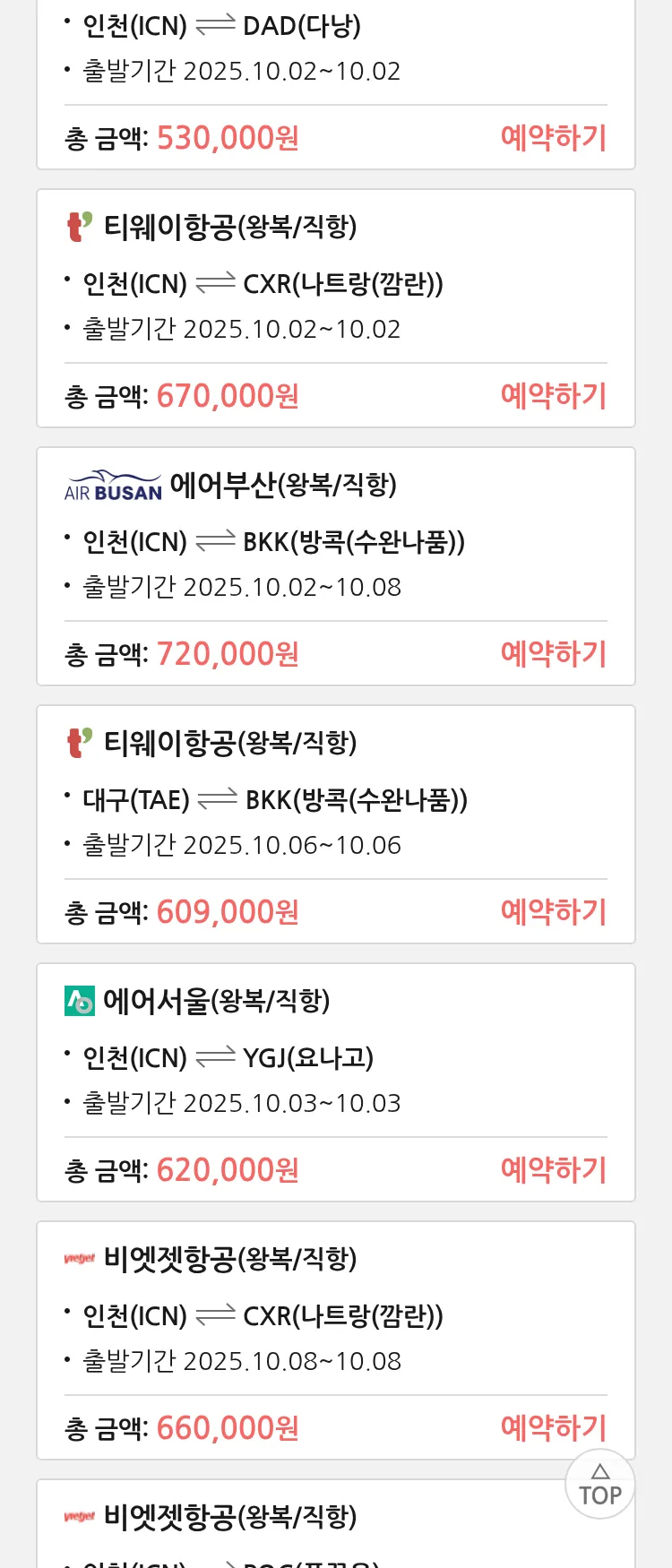 (9월 22일(월)) 땡처리 특가 항공권